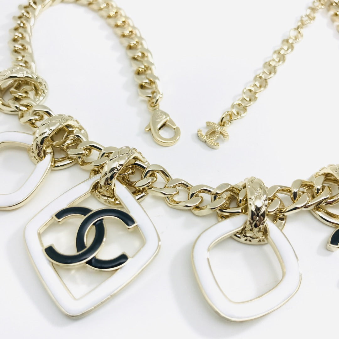 MULTI CHARM PINK GOLD BLACK ENAMEL NECKLACE