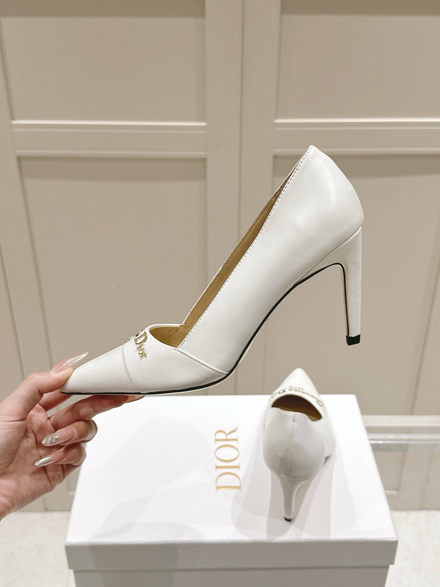 MY DD 25S POINTED TOE PUMP 50MM IN WHITE CALFSKIN