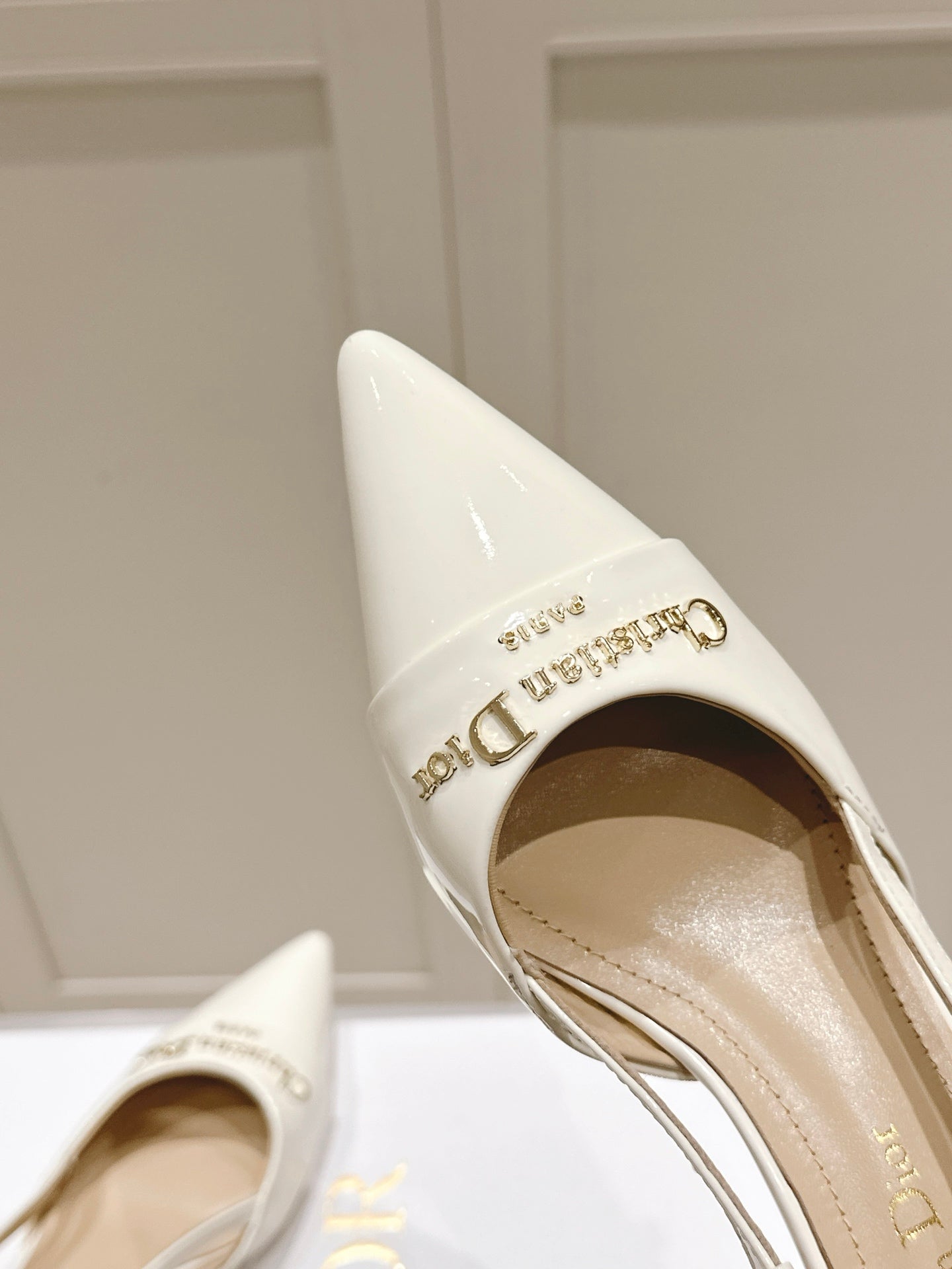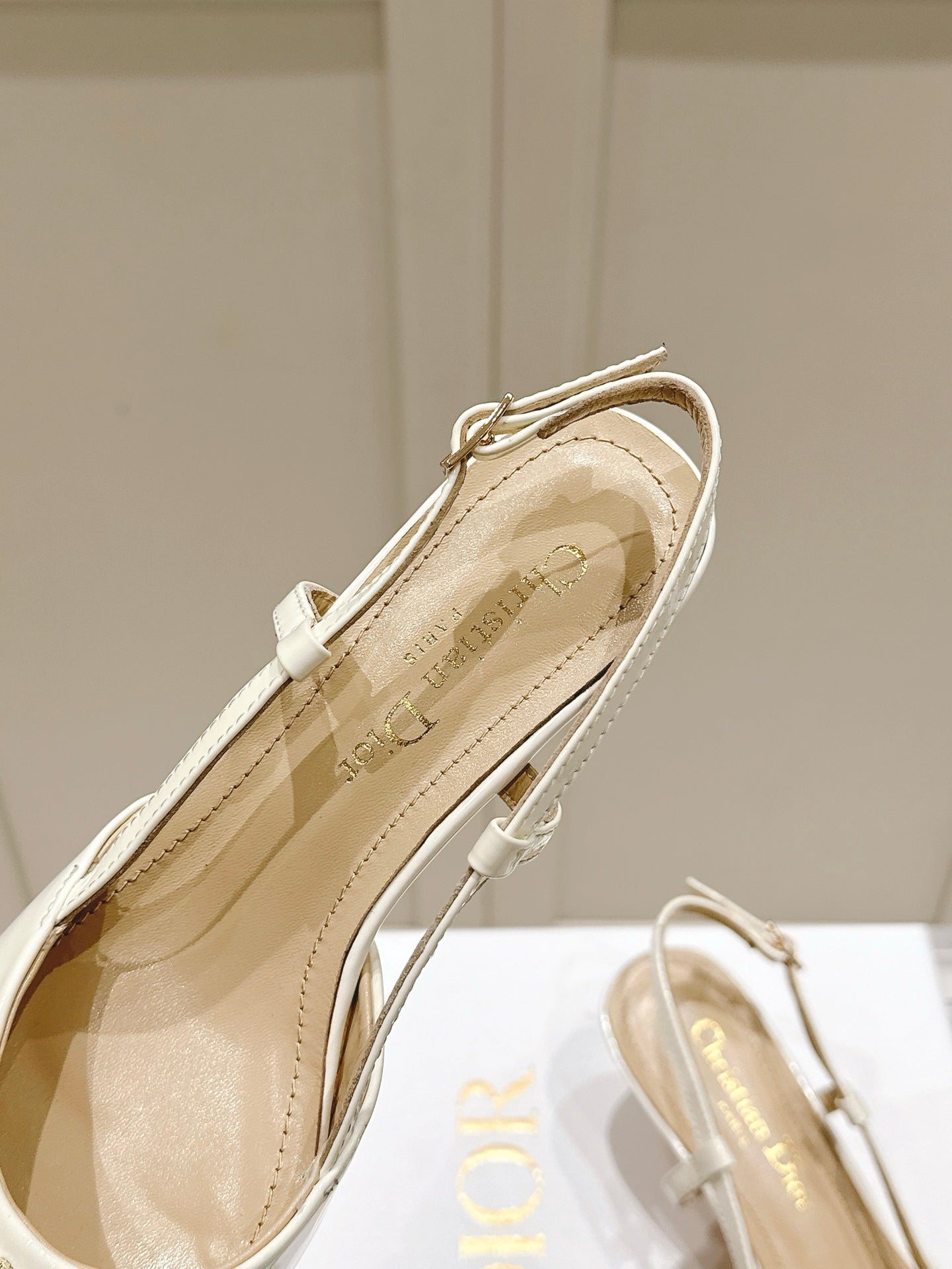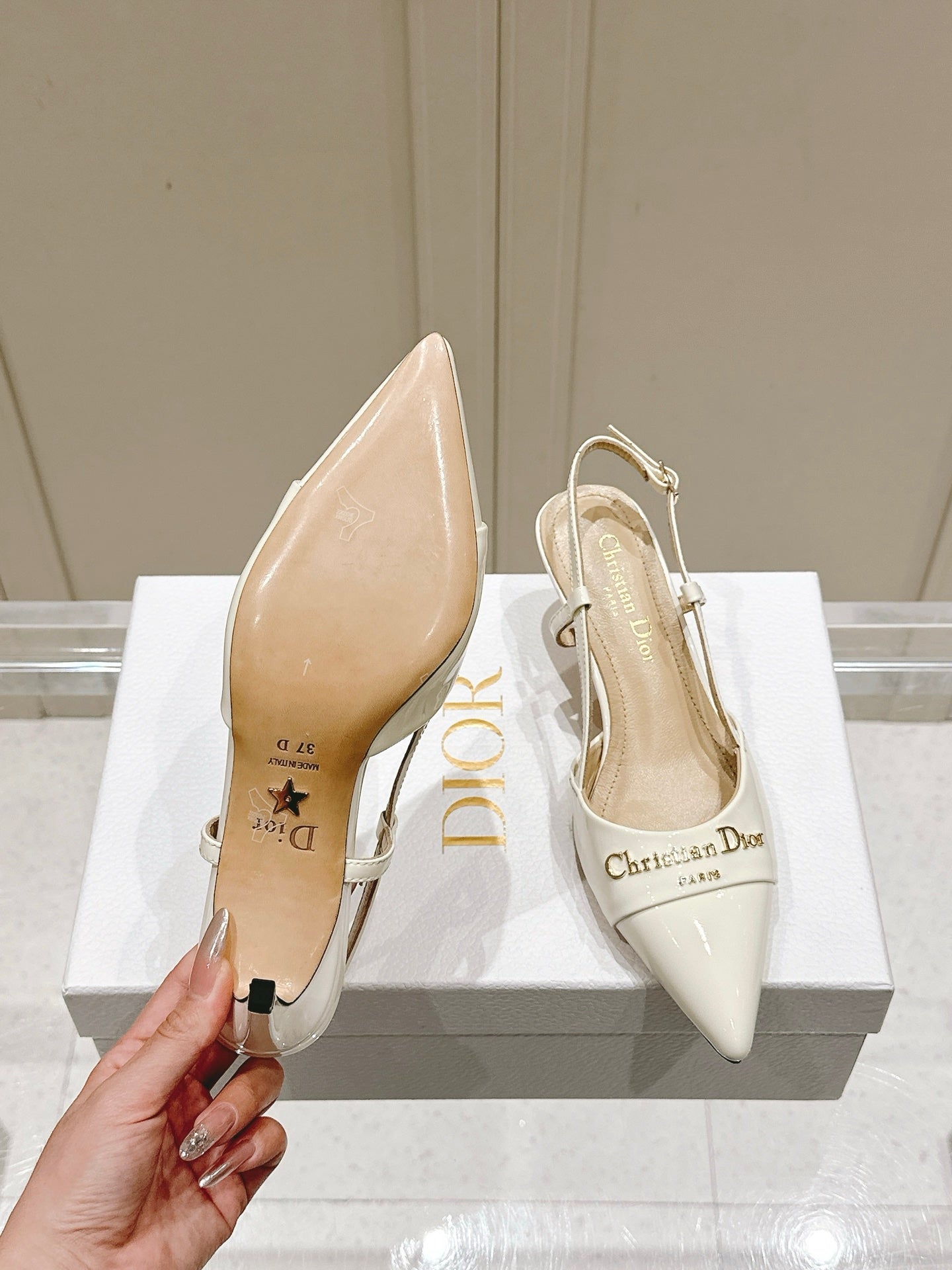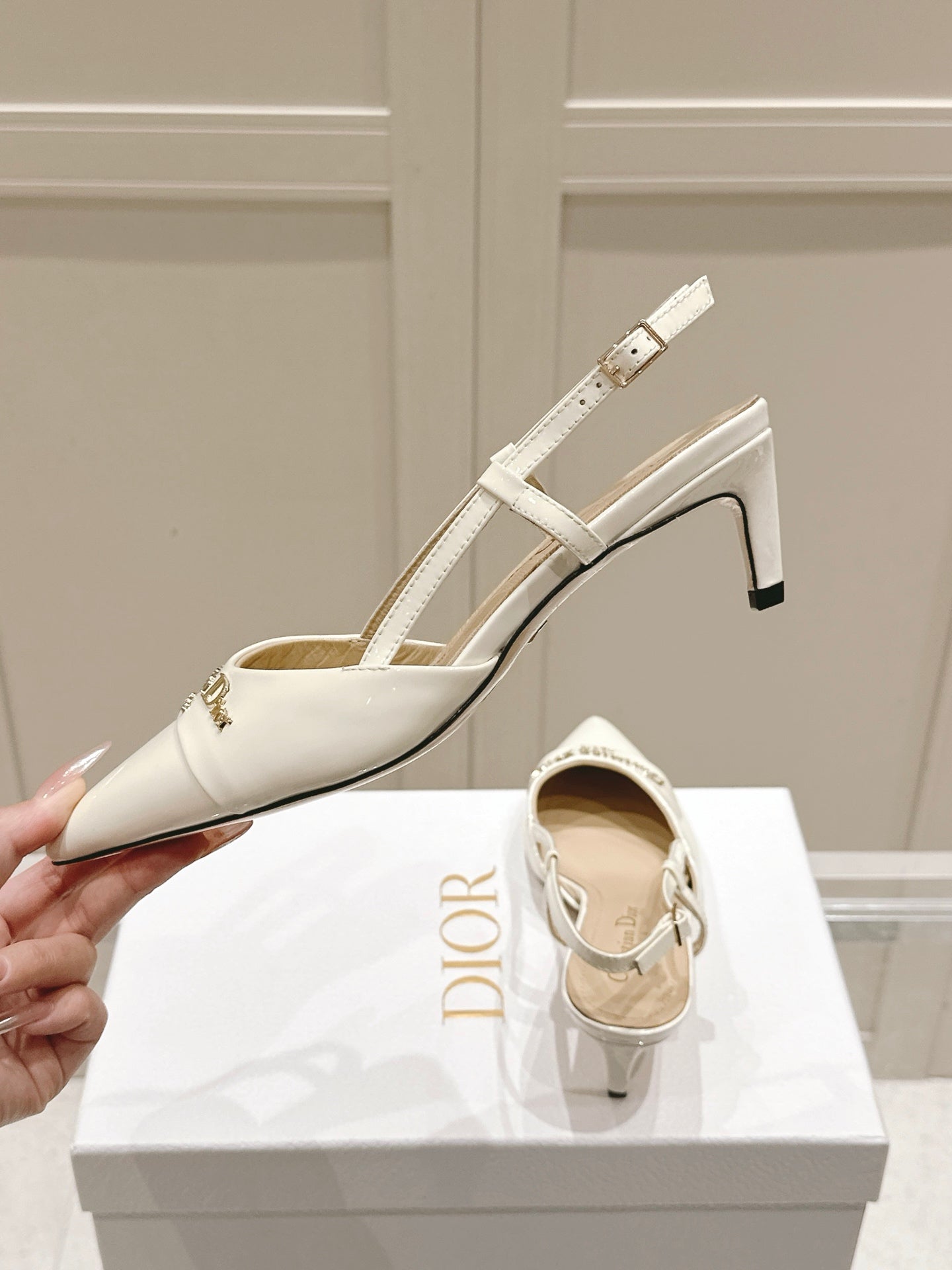 MY DD 25S SLINGBACK PUMP 50MM IN WHITE GLOSSY CALFSKIN