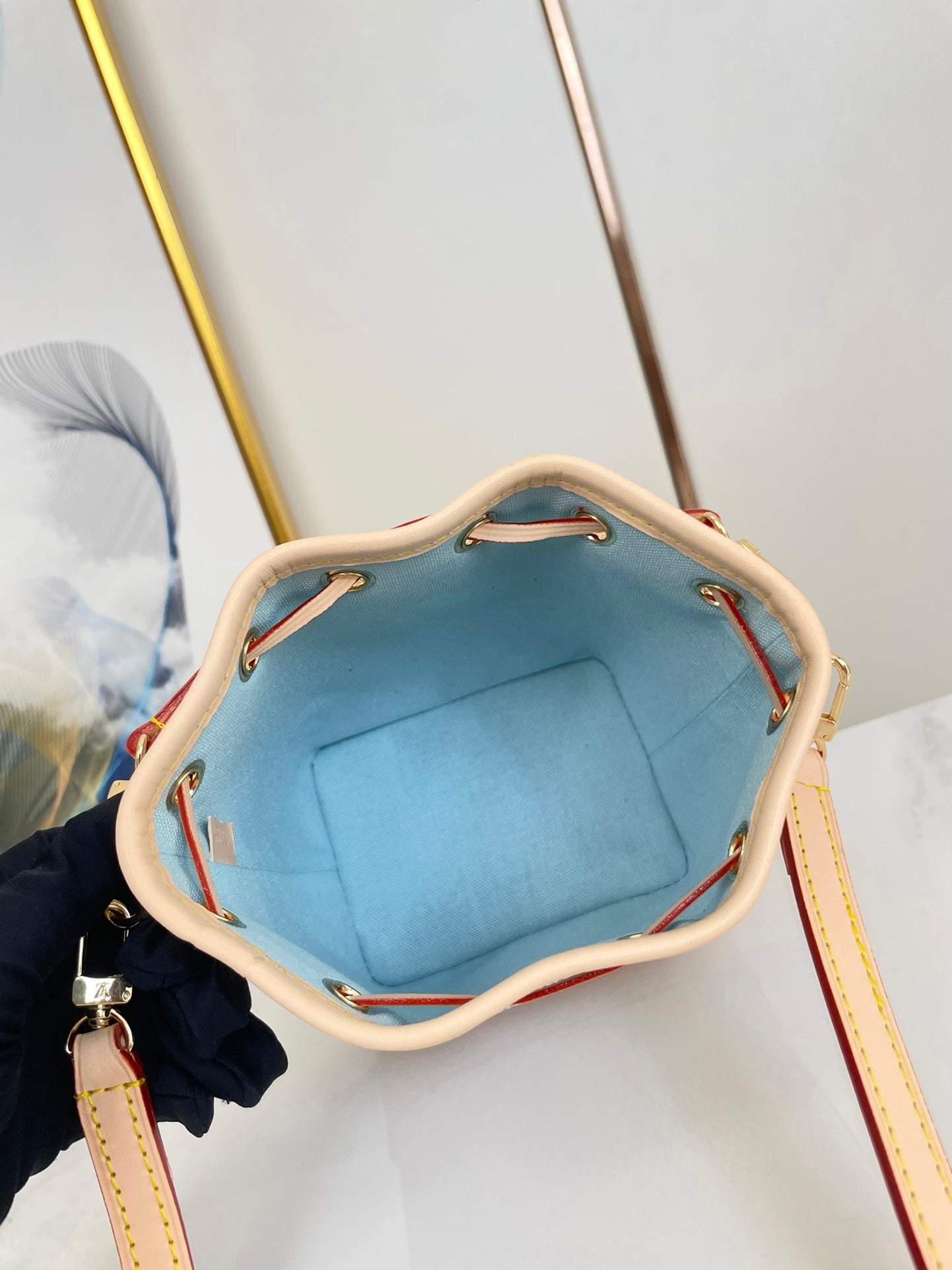 NANO NOÉ 16 IN PISTACHIO DAMIER GIANT CANVAS GOLD HARDWARE