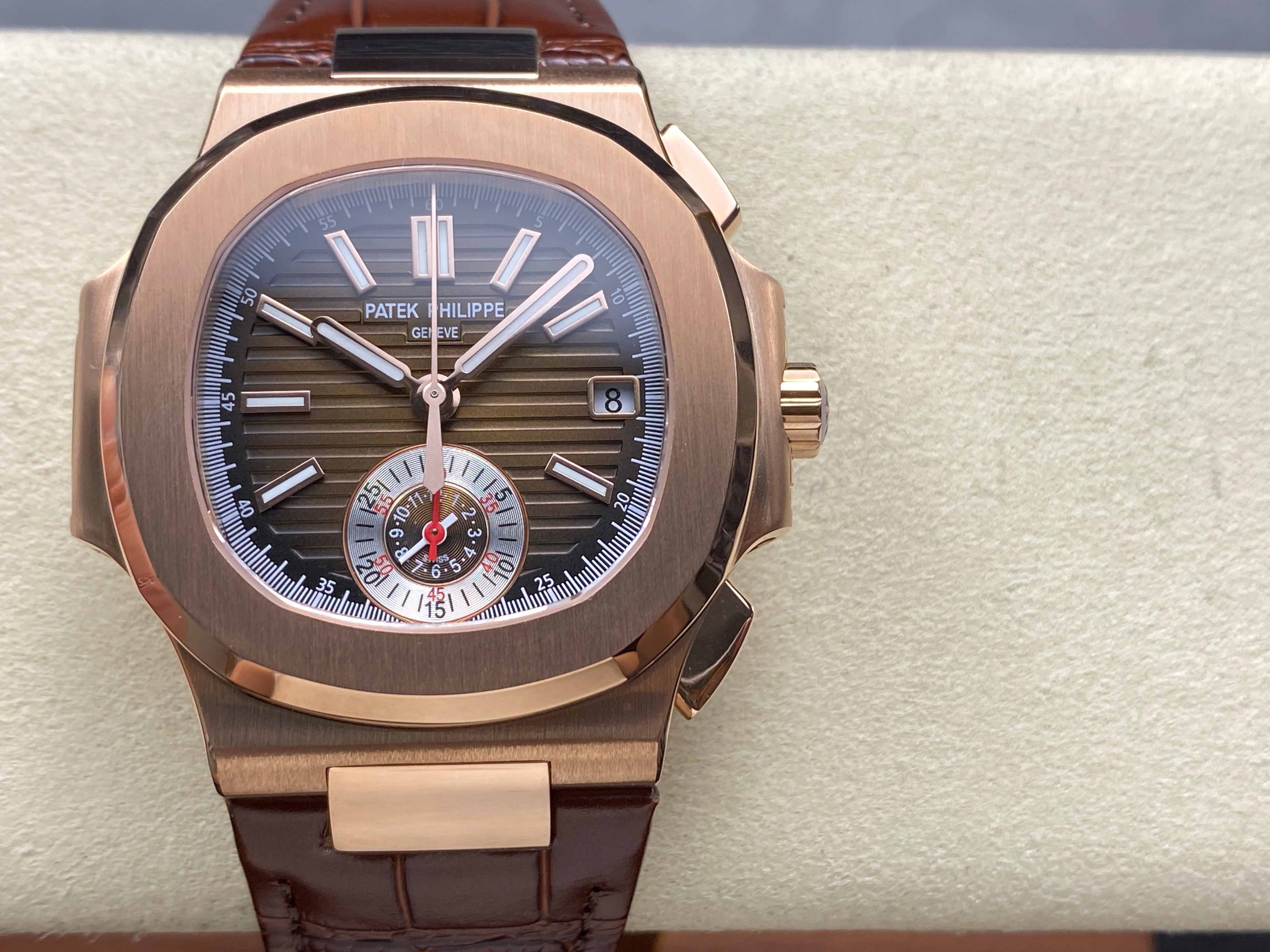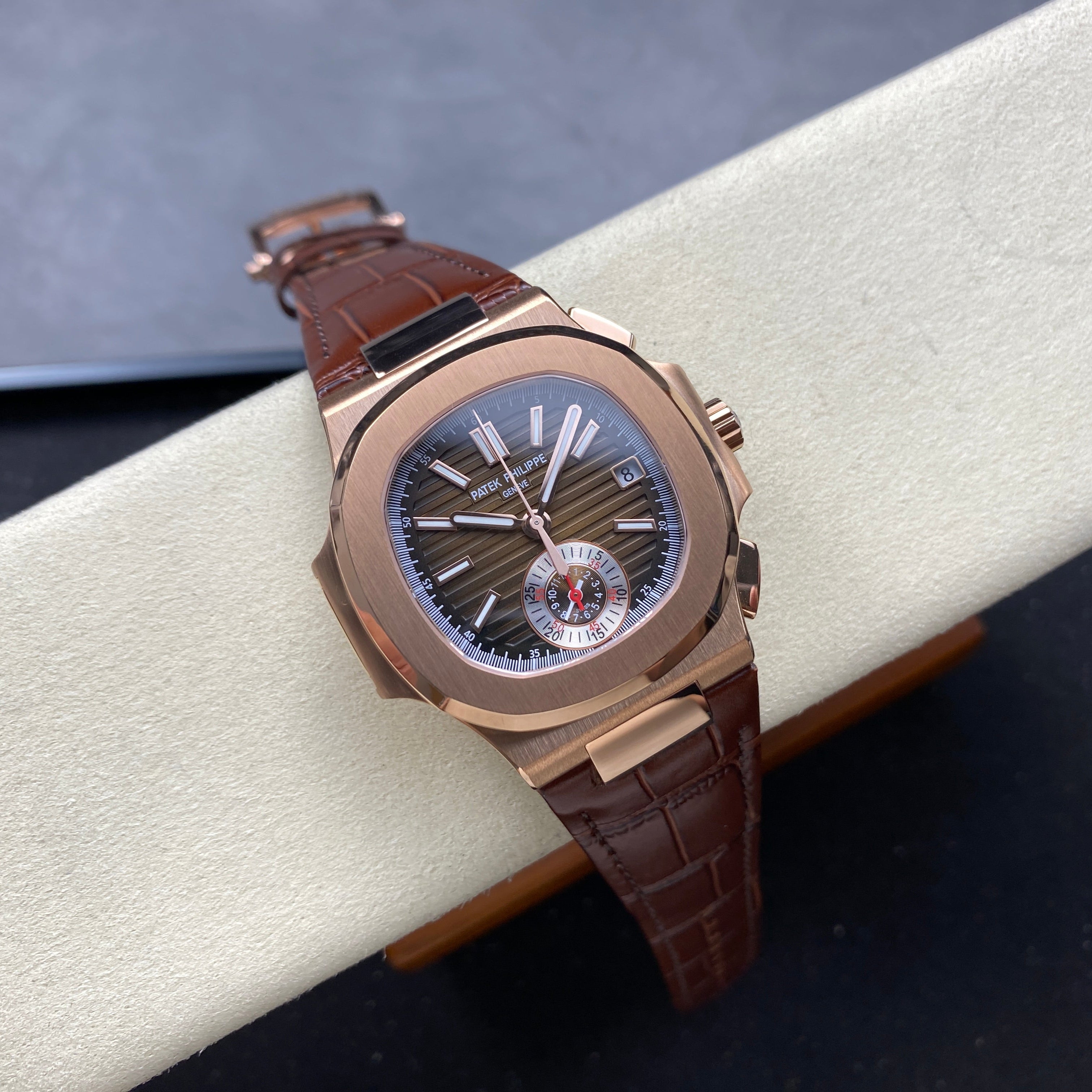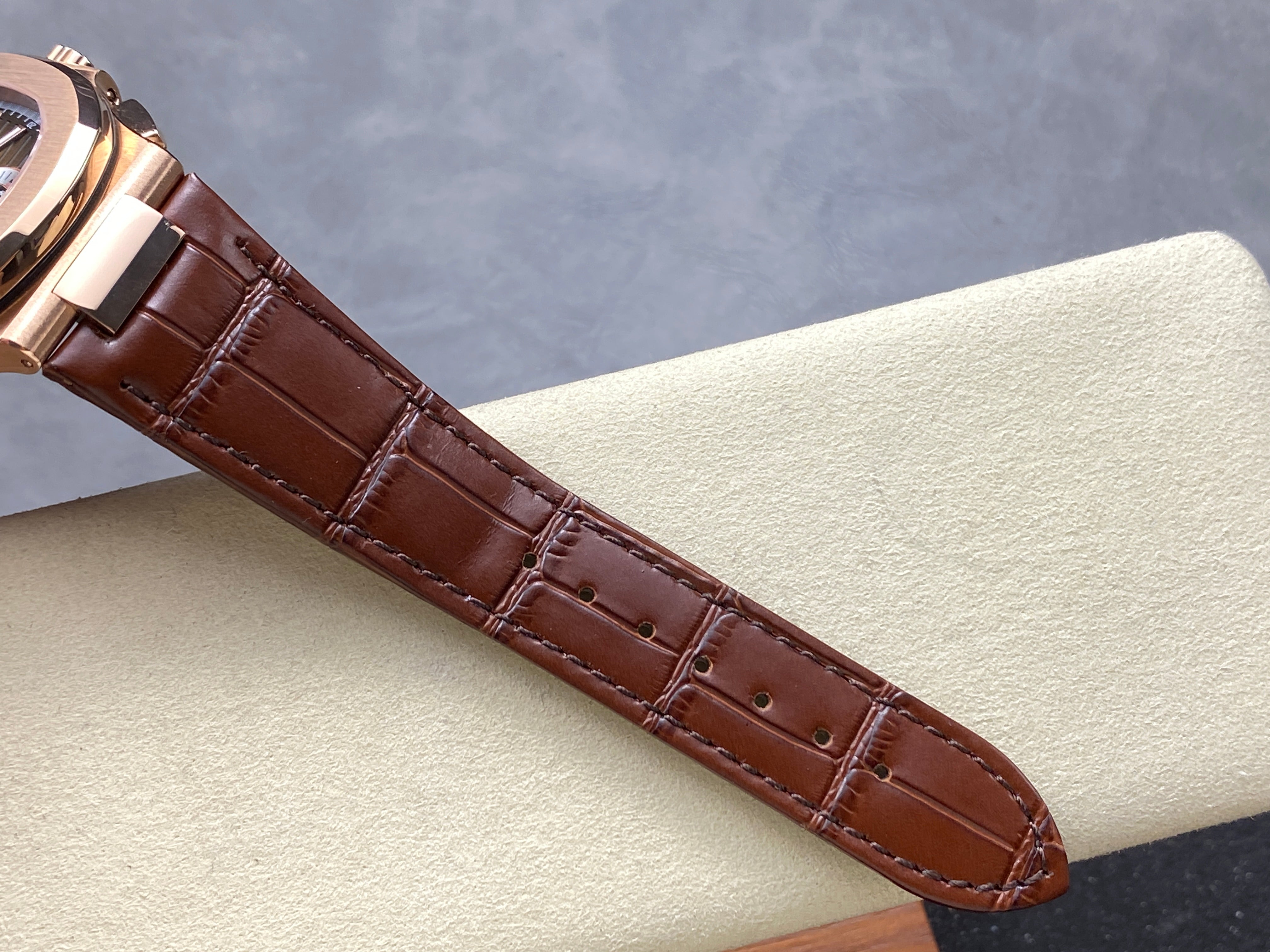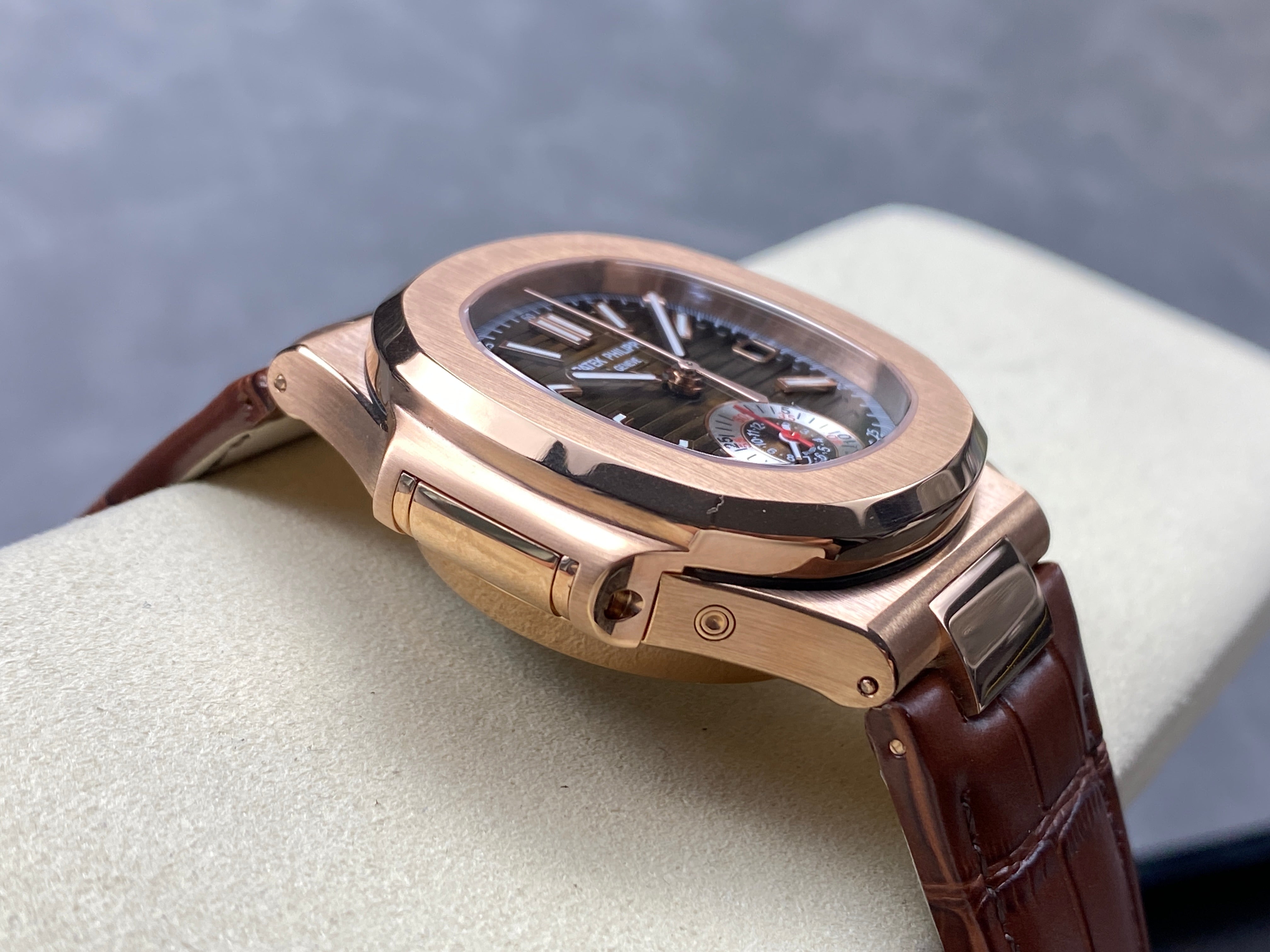 NAUTILUS ROSE GOLD CASE BROWN SUNBURST DIAL ALLIGATOR LEATHER STRAP