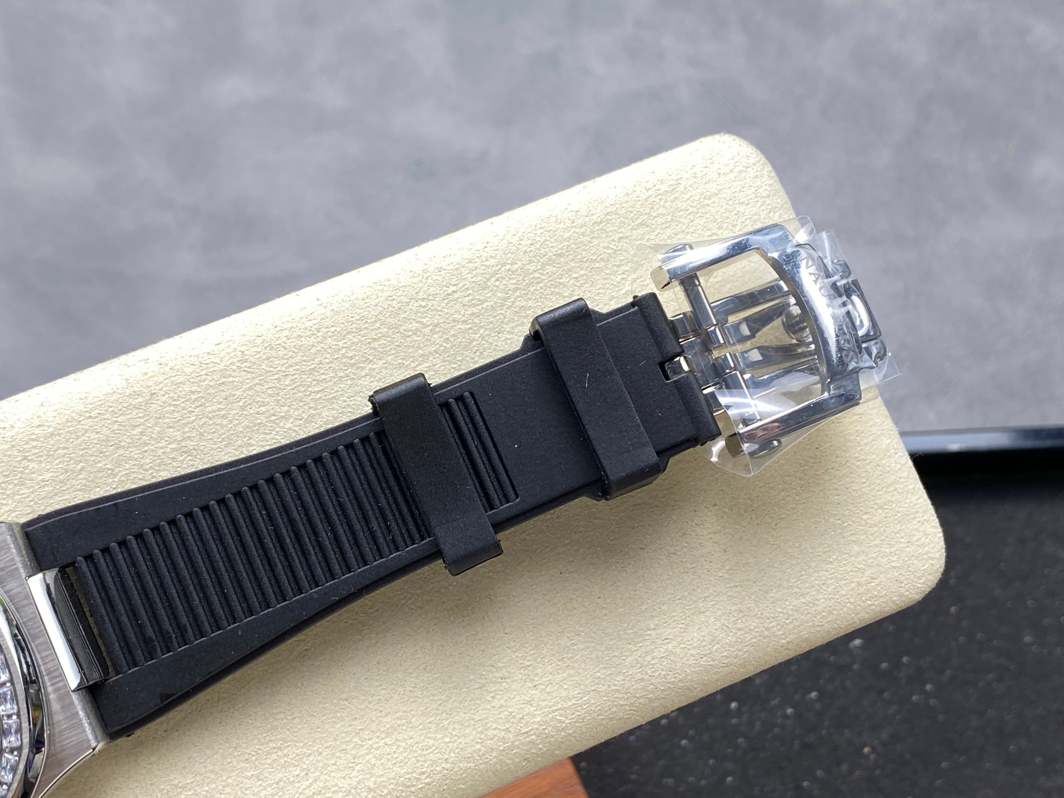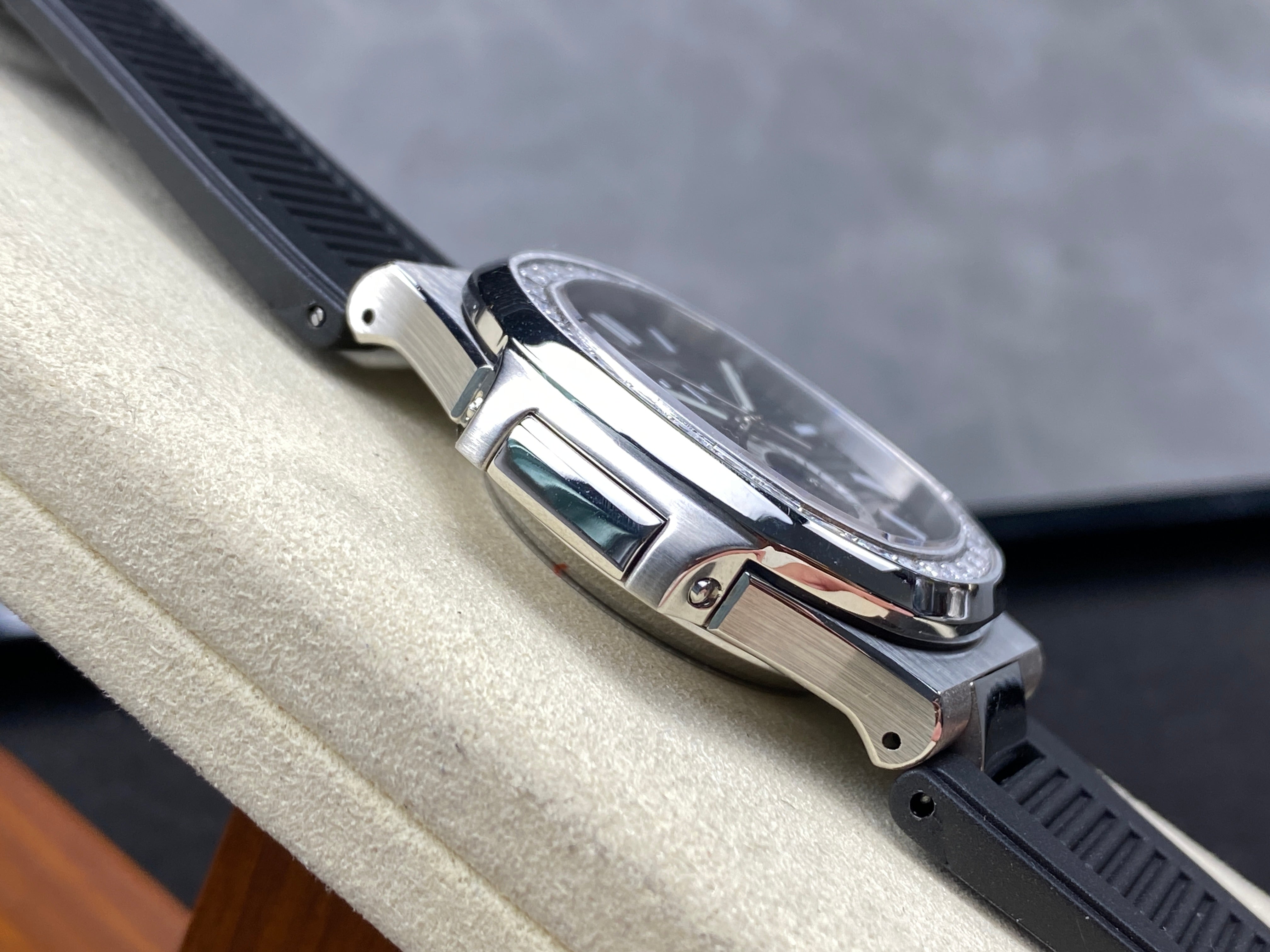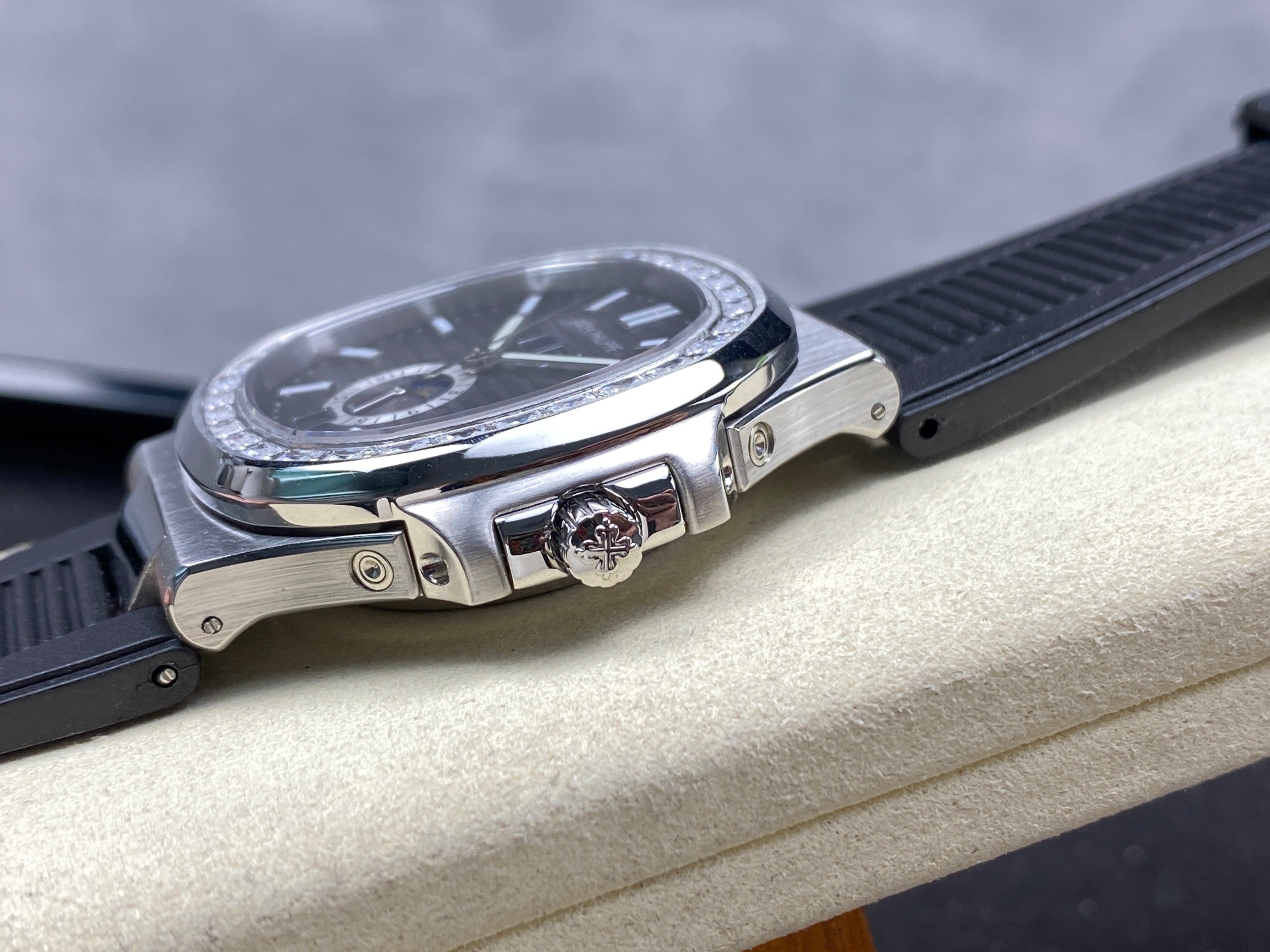 NAUTILUS STEEL ATTACHED DIAMOND BEZEL BLACK RUBBER STRAP
