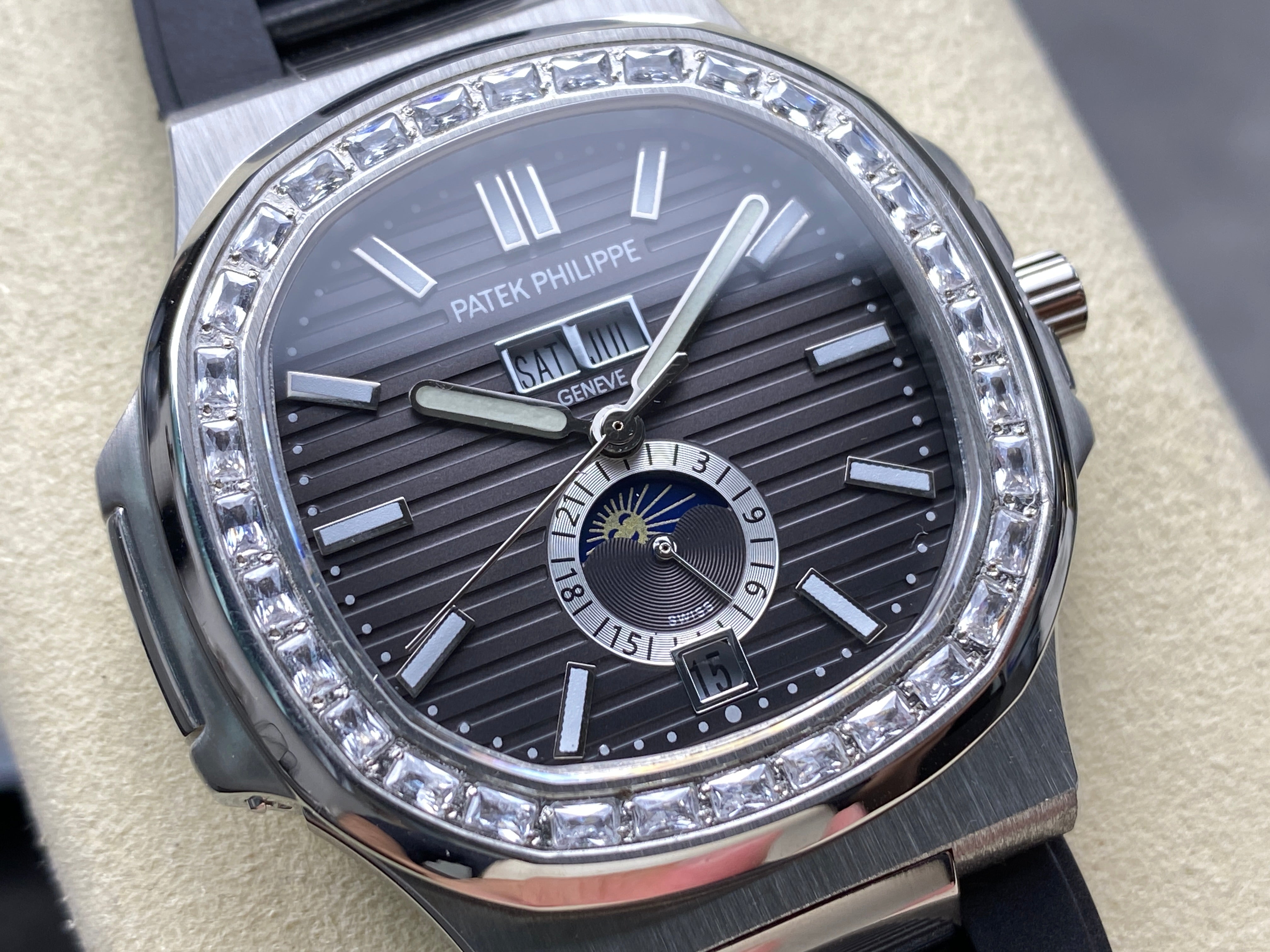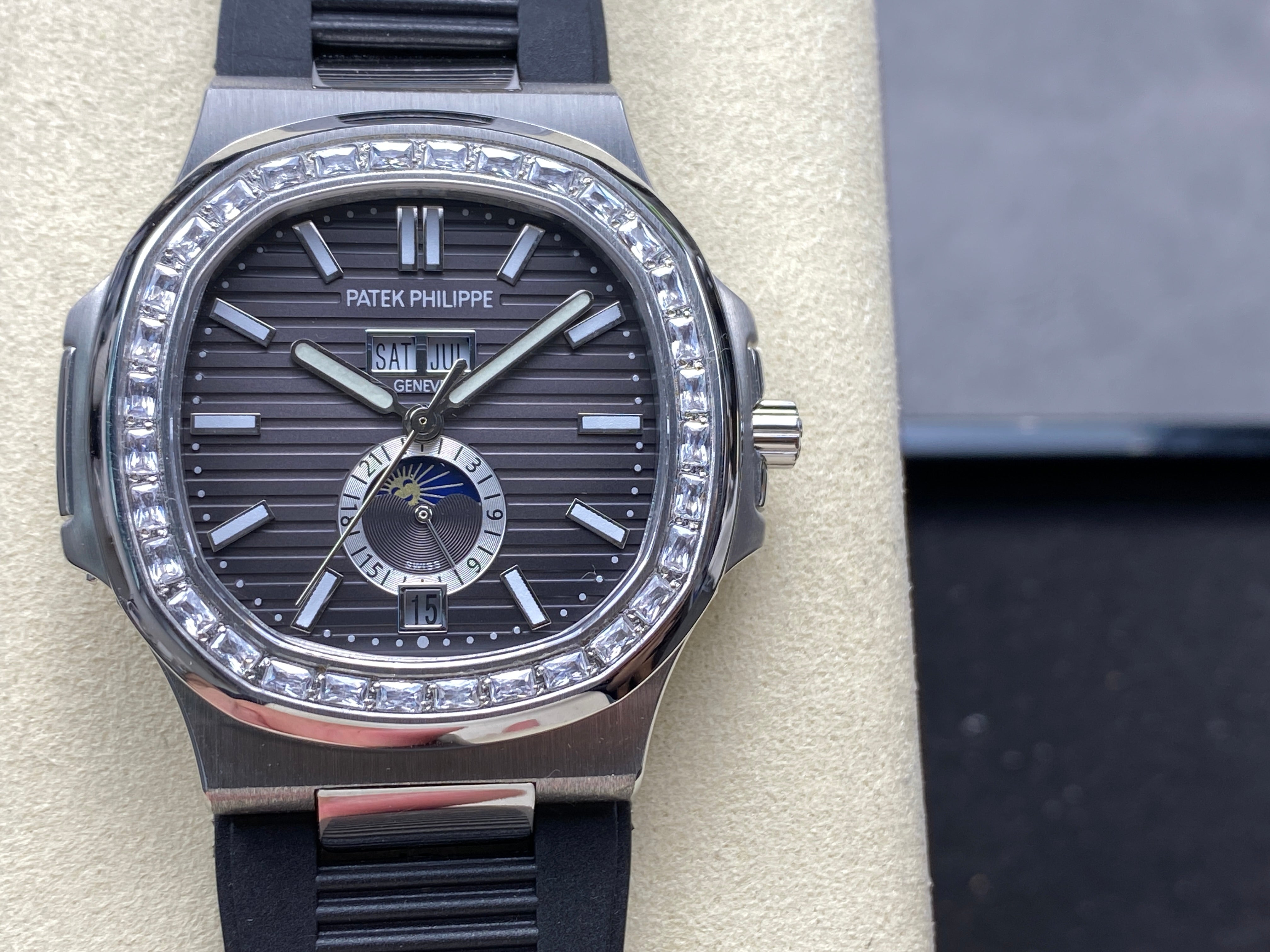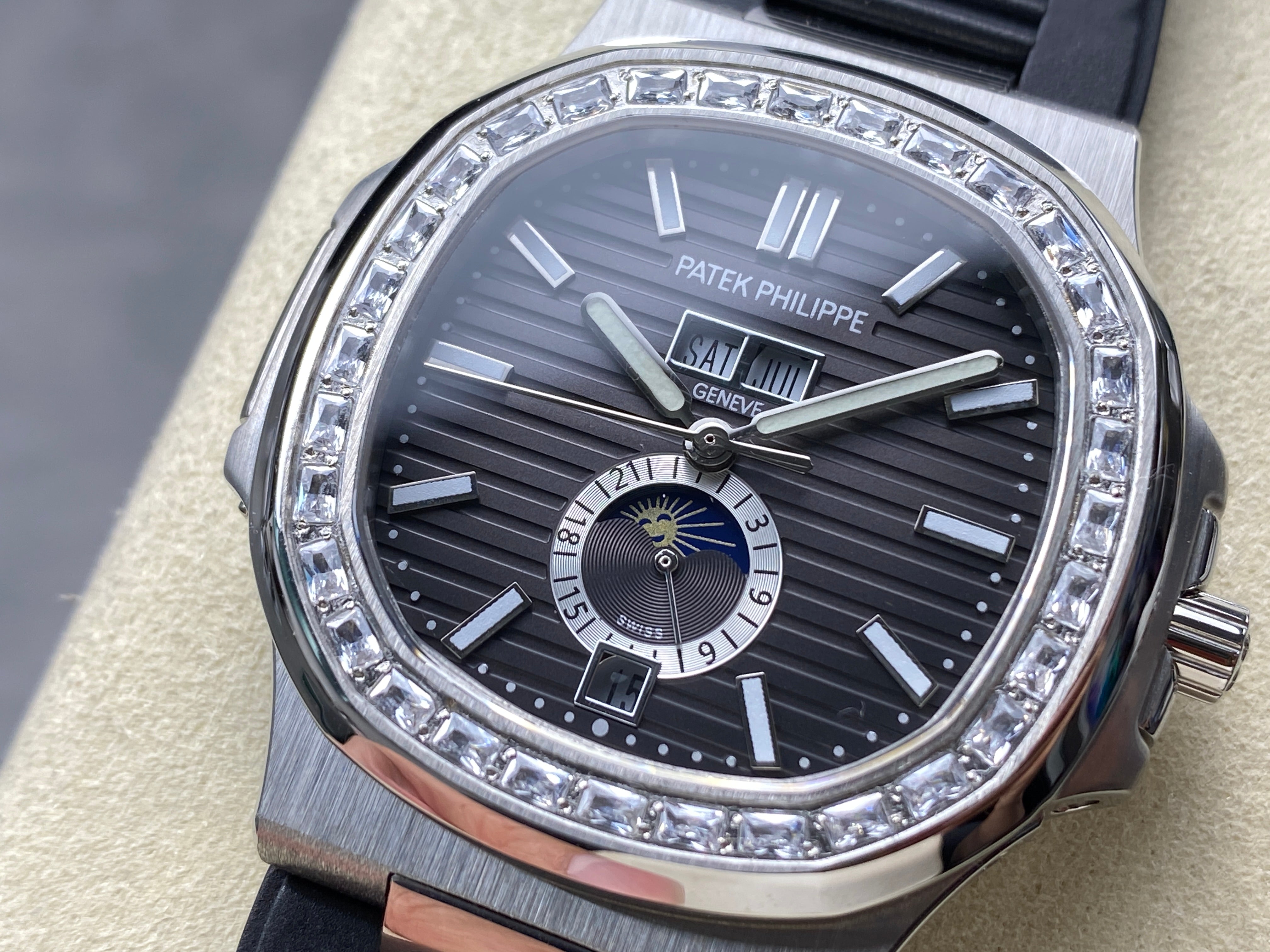 NAUTILUS STEEL ATTACHED DIAMOND BEZEL BLACK RUBBER STRAP