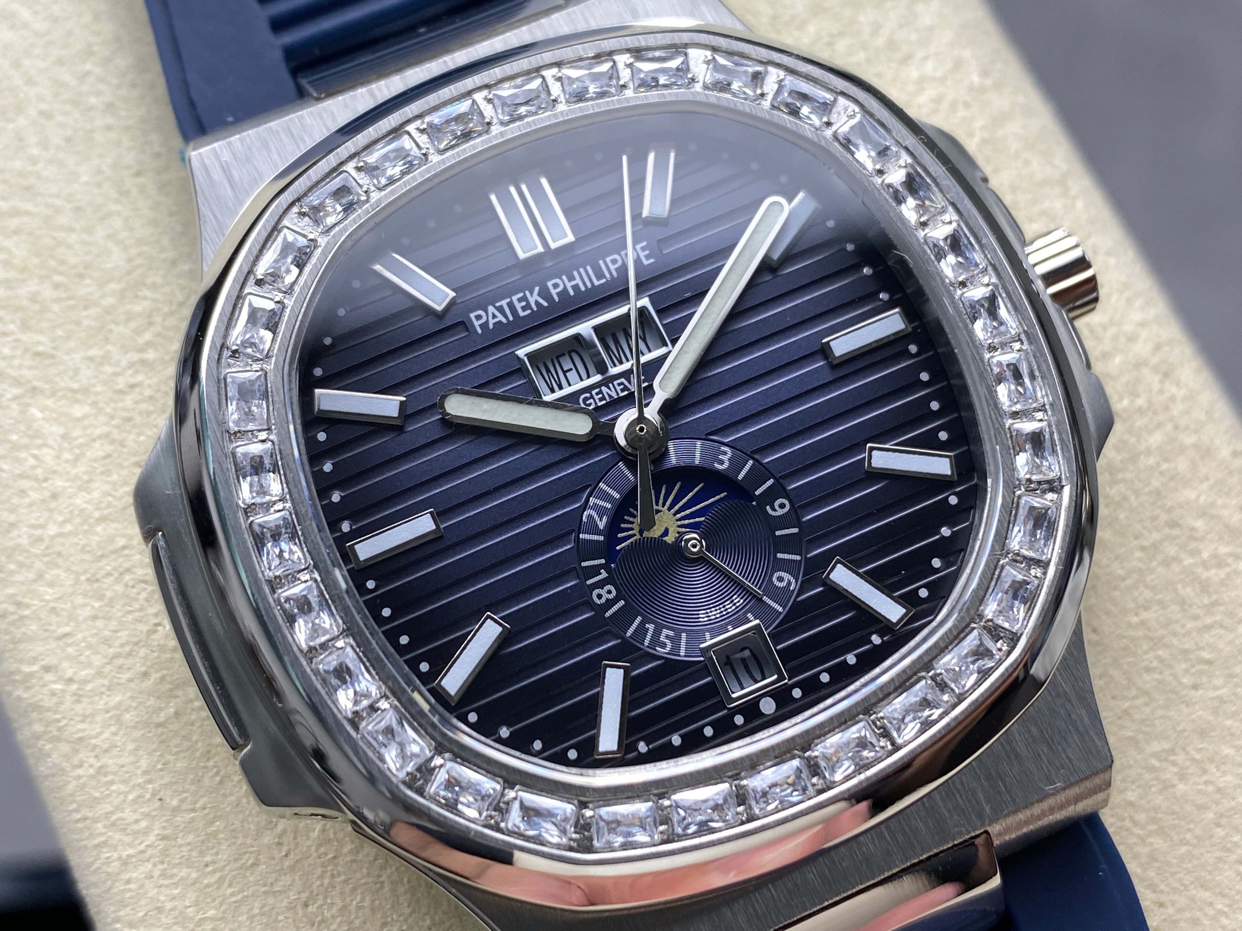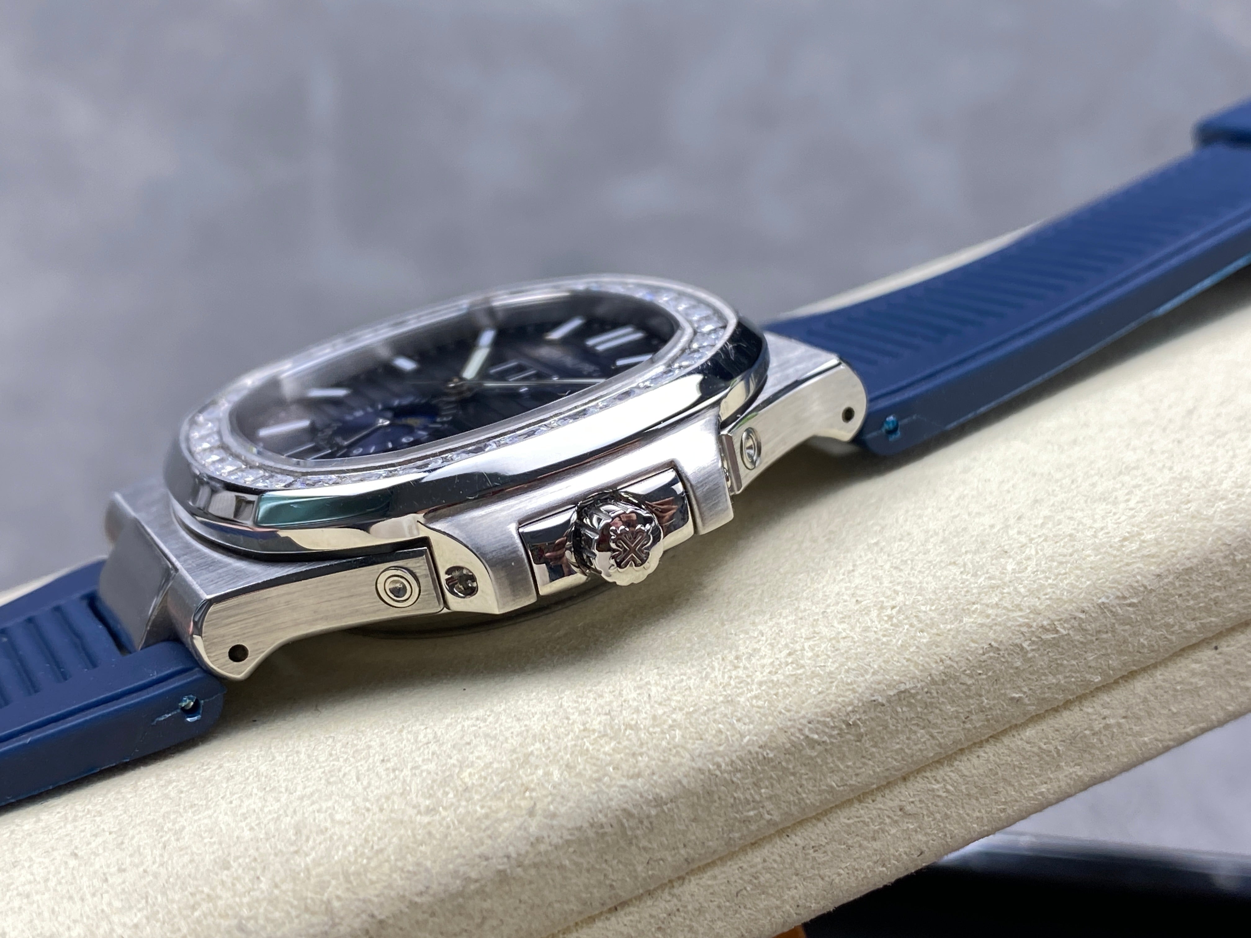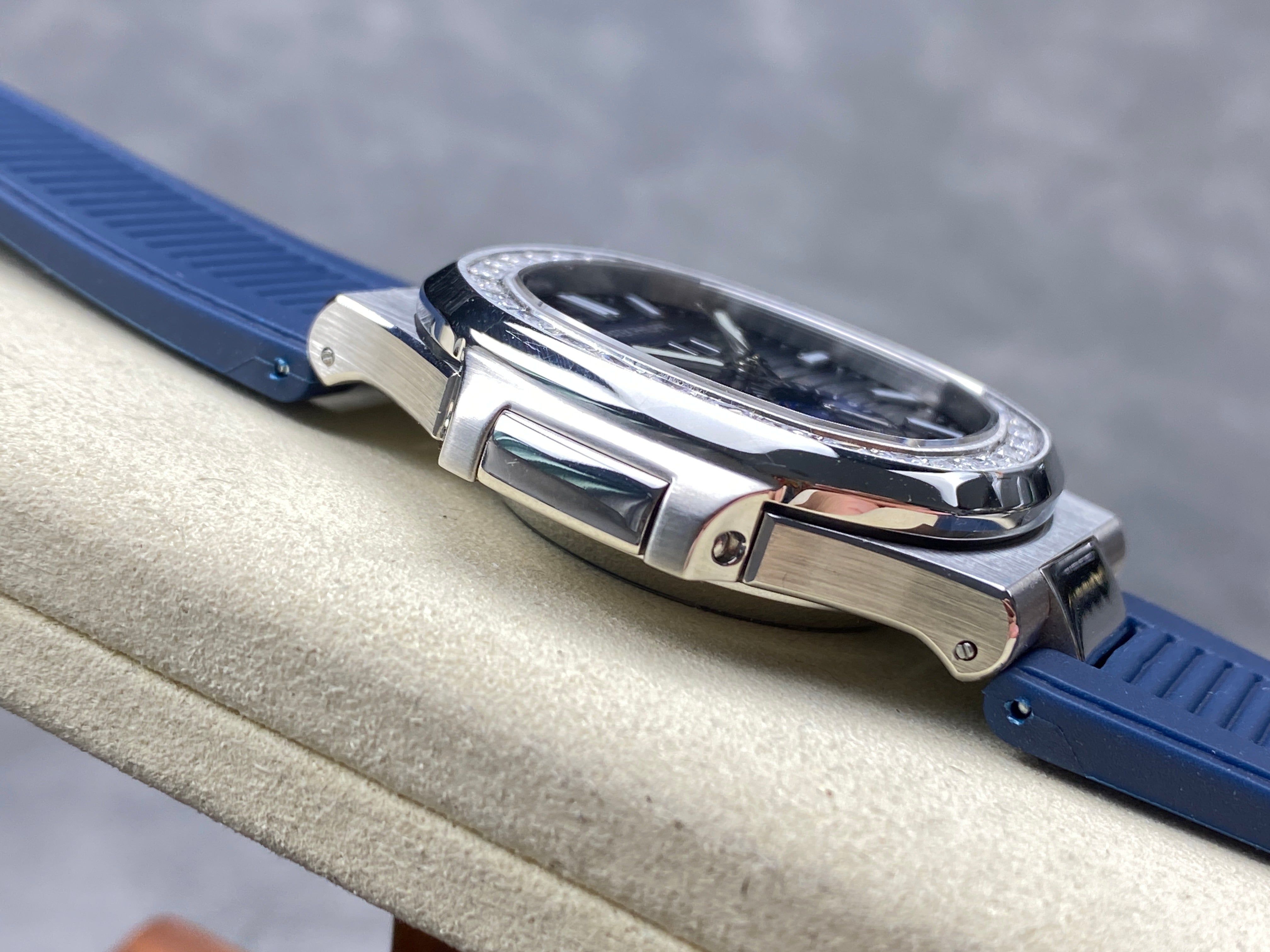 NAUTILUS STEEL ATTACHED DIAMOND BEZEL BLUE RUBBER STRAP