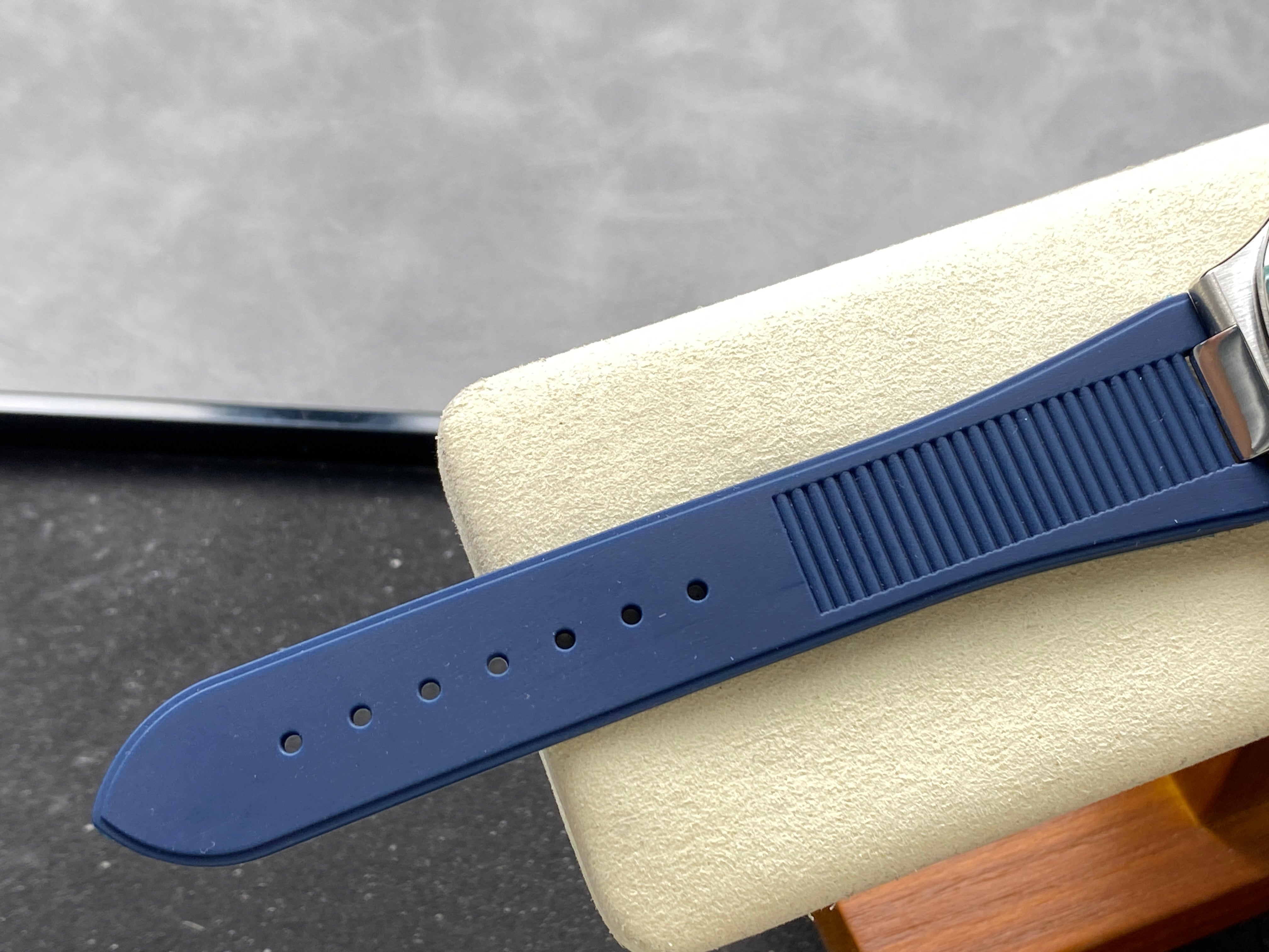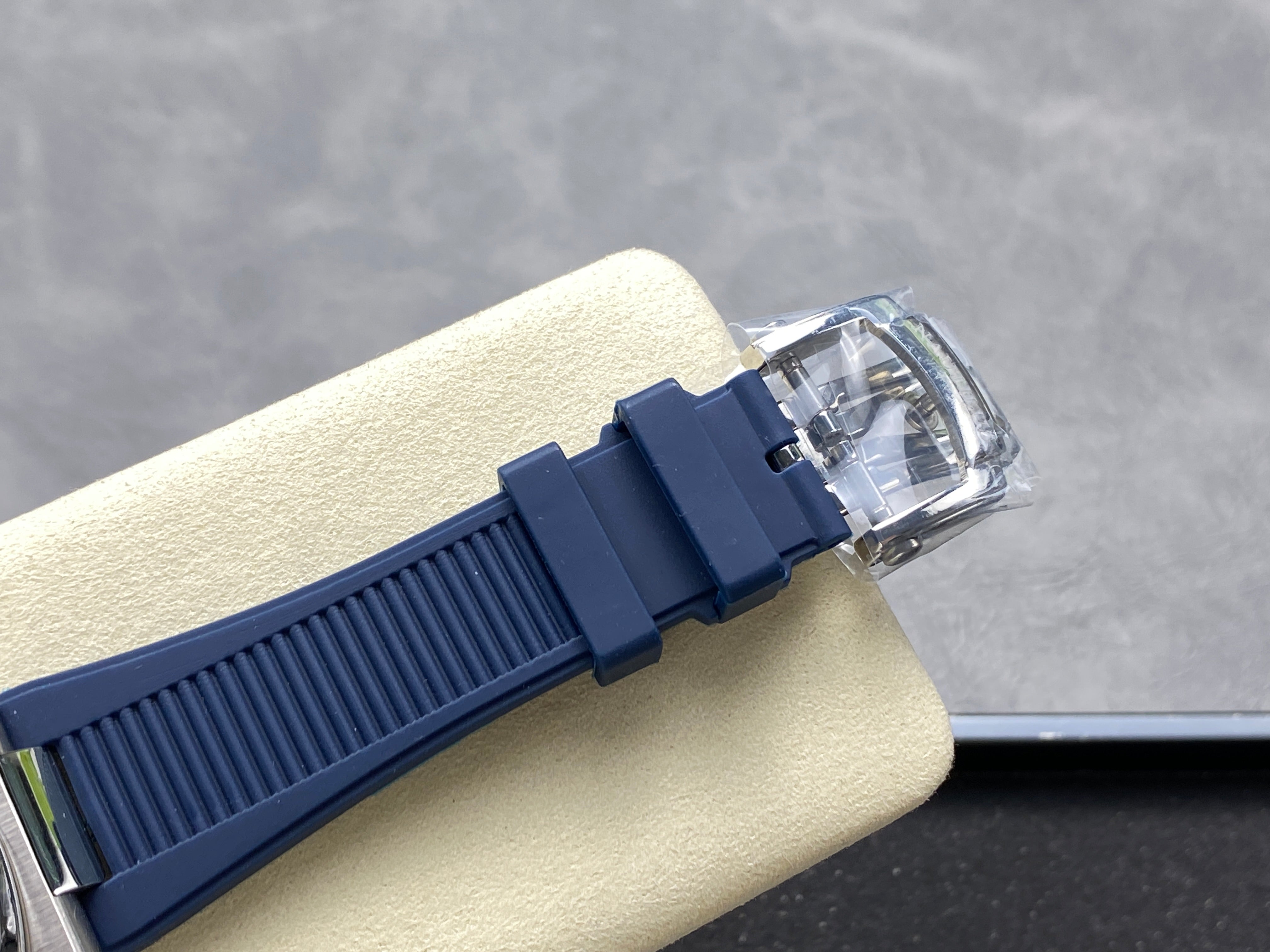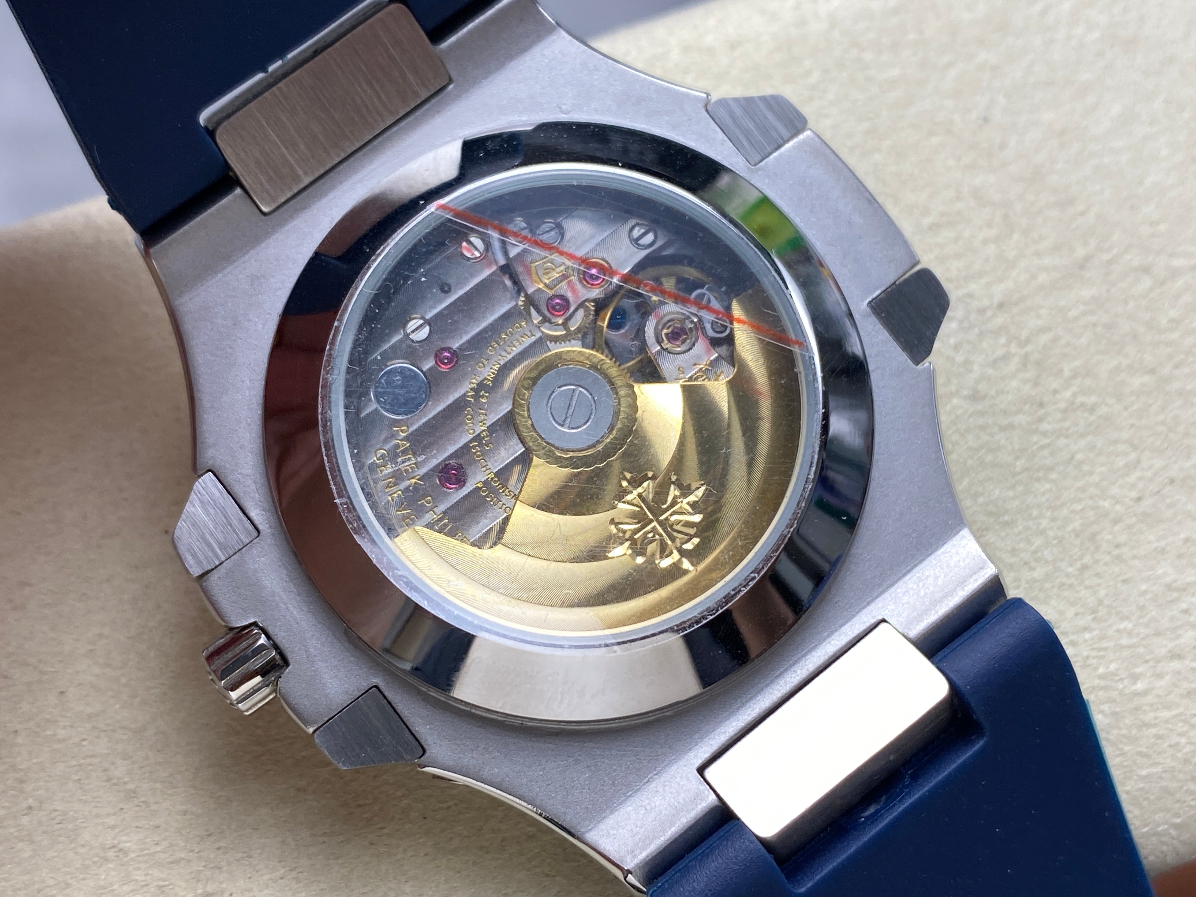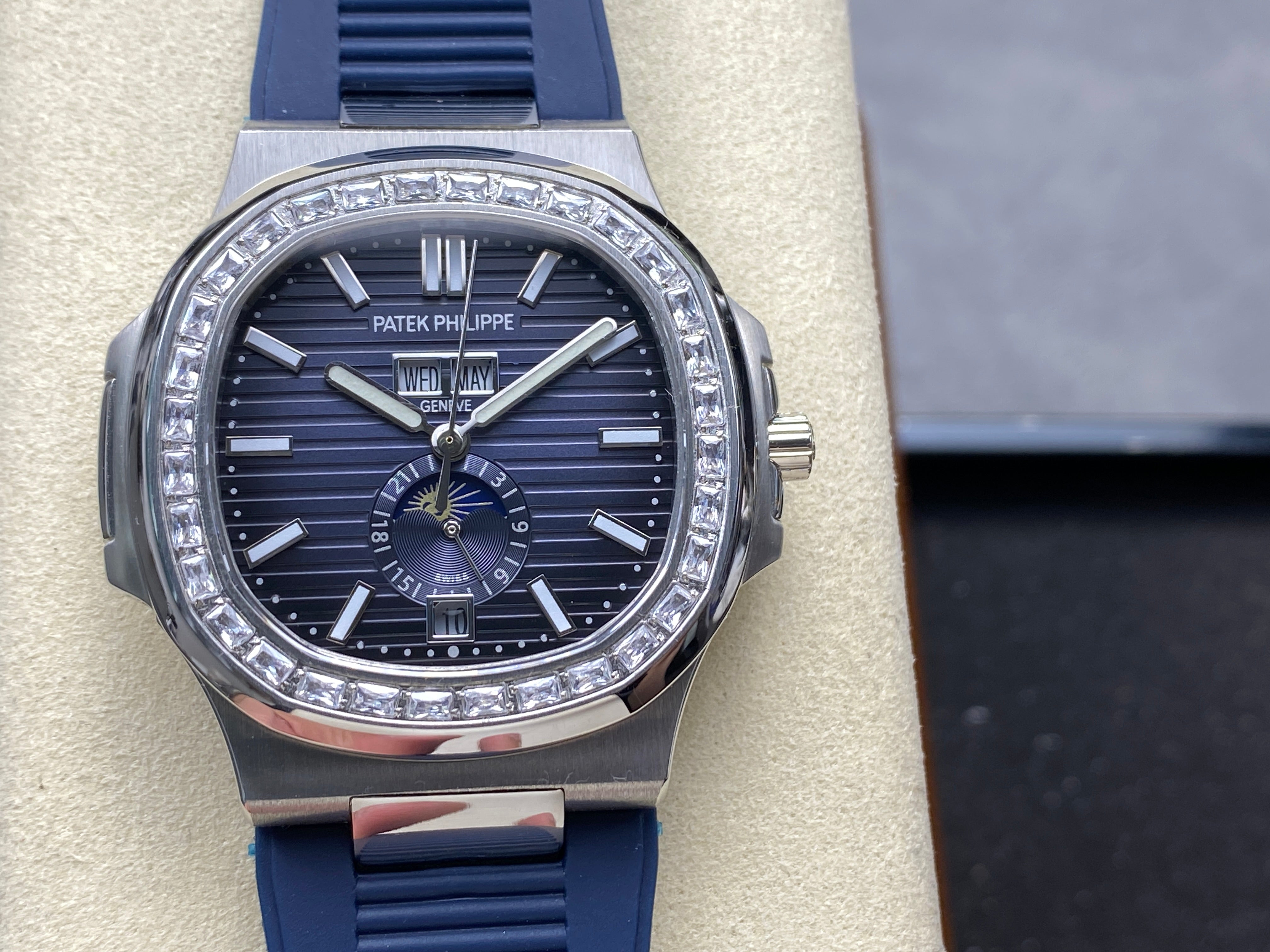NAUTILUS STEEL ATTACHED DIAMOND BEZEL BLUE RUBBER STRAP