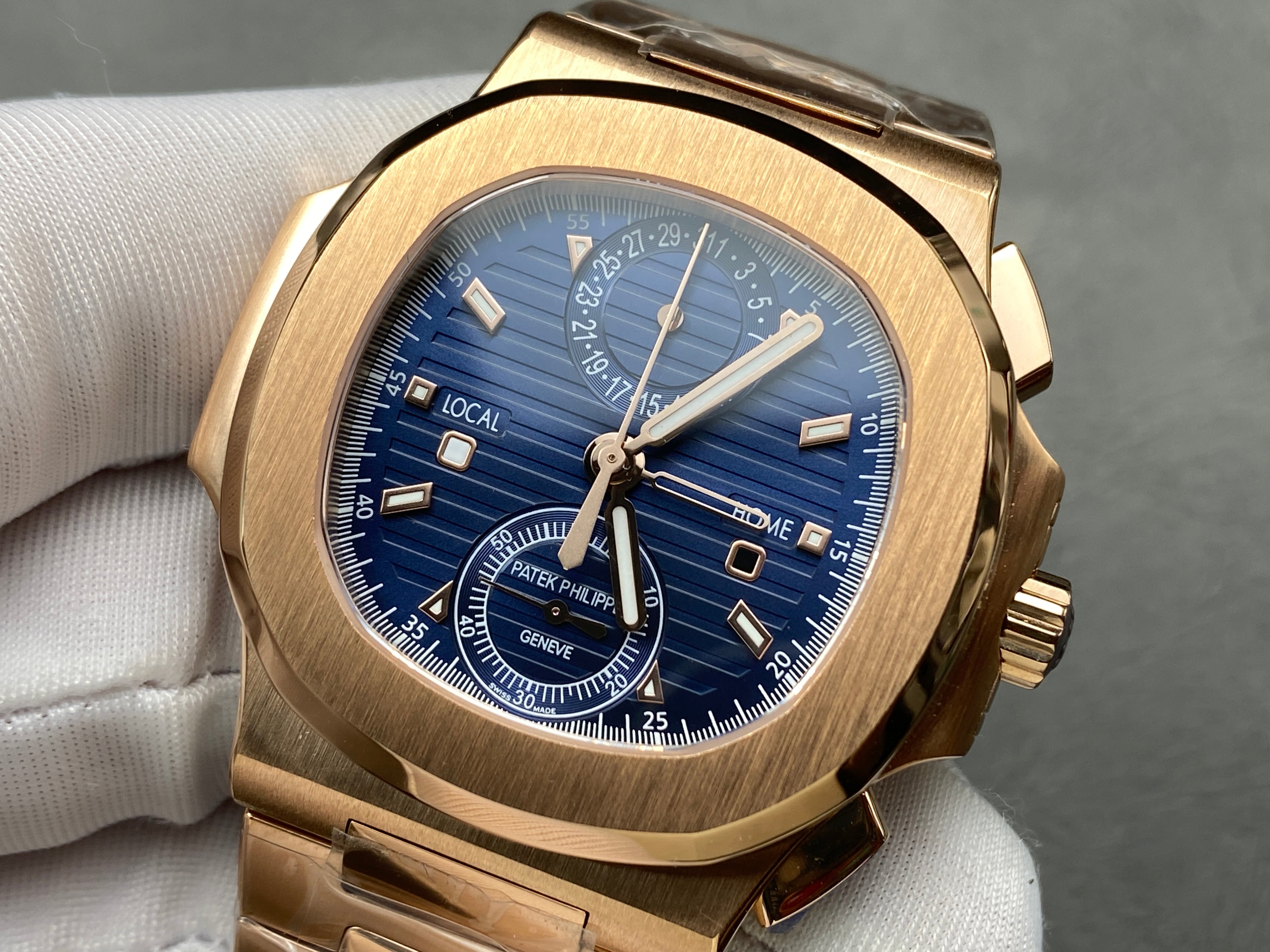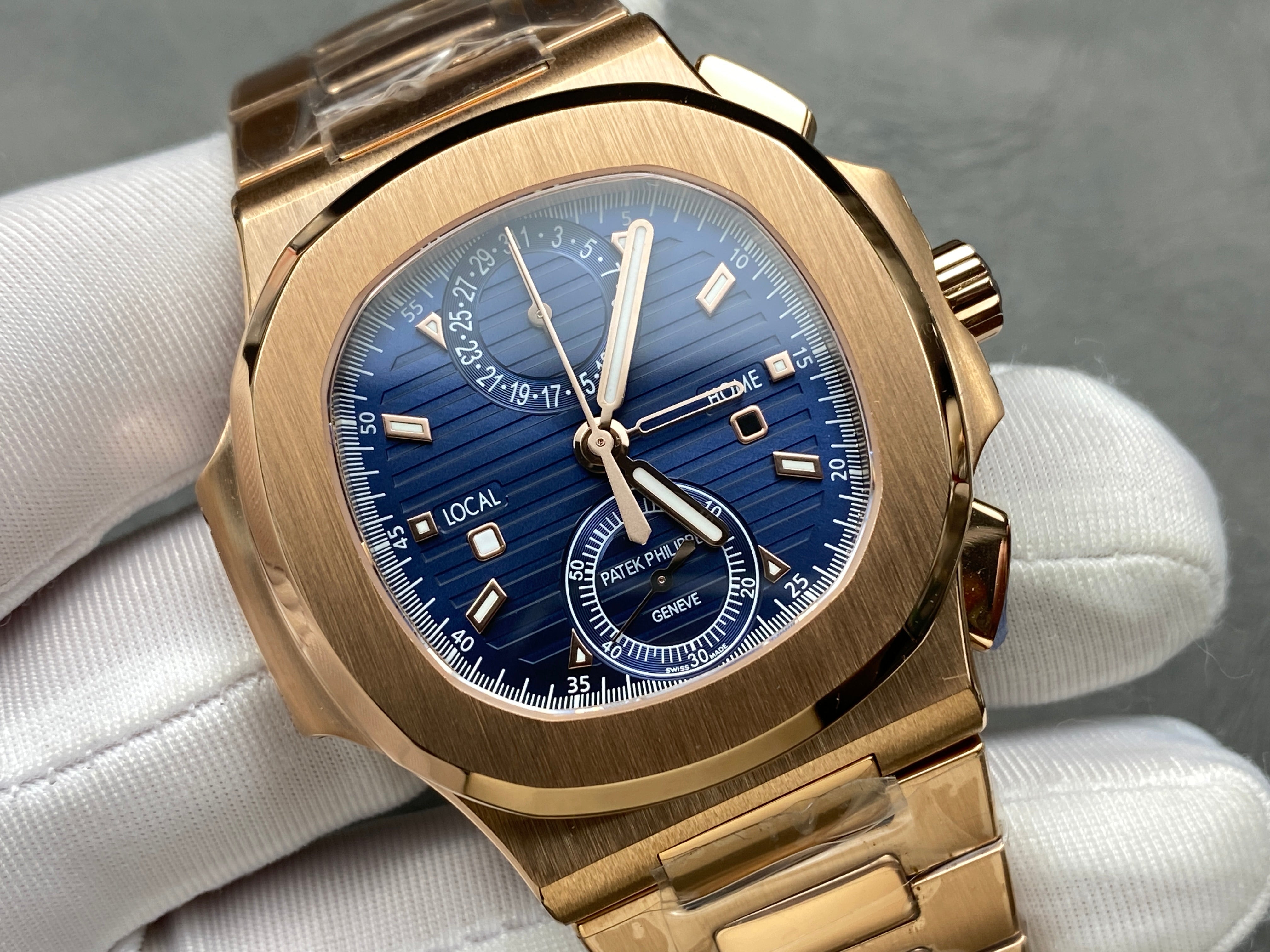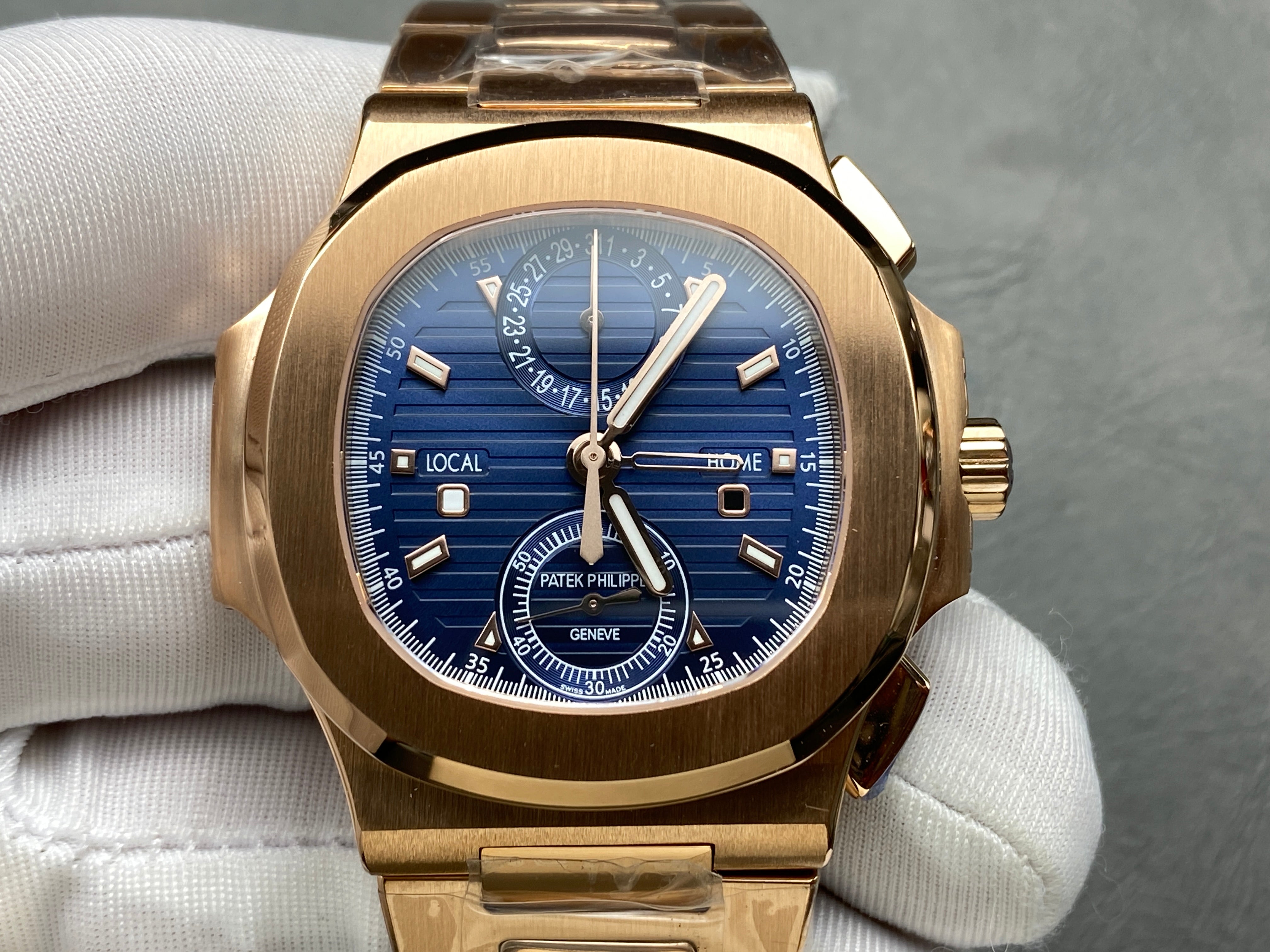 NAUTILUS TRAVEL TIME ROSE GOLD CASE SUNBURST BLUE DIAL
