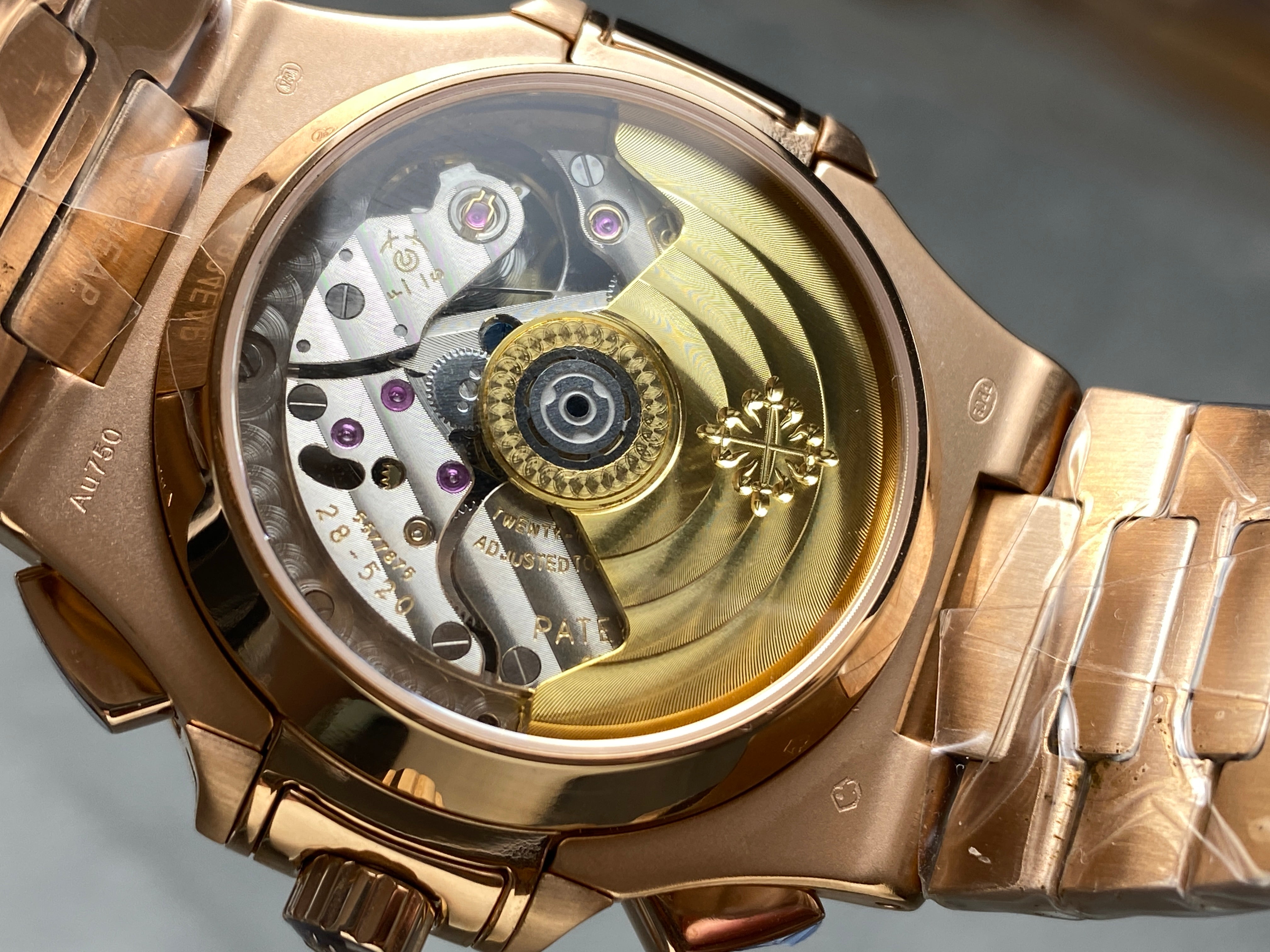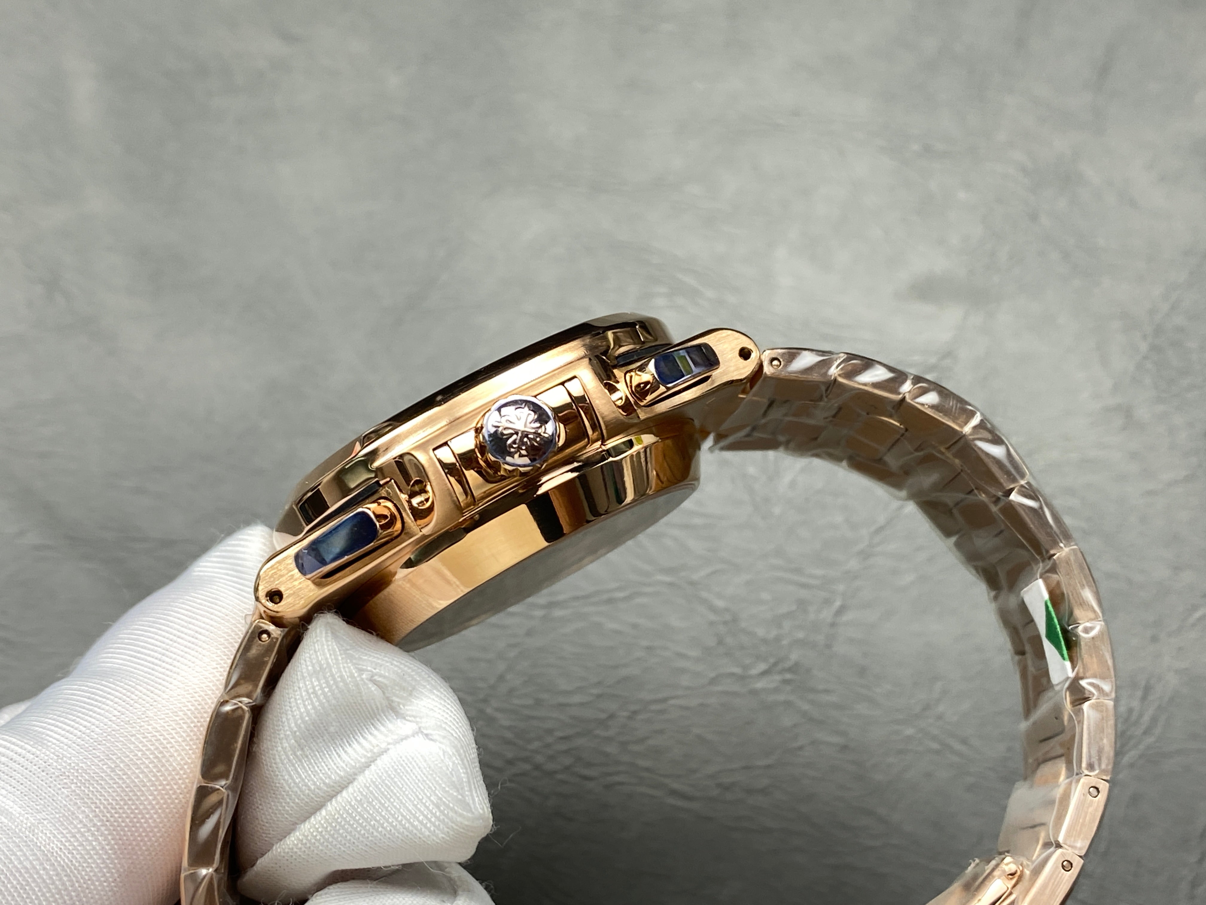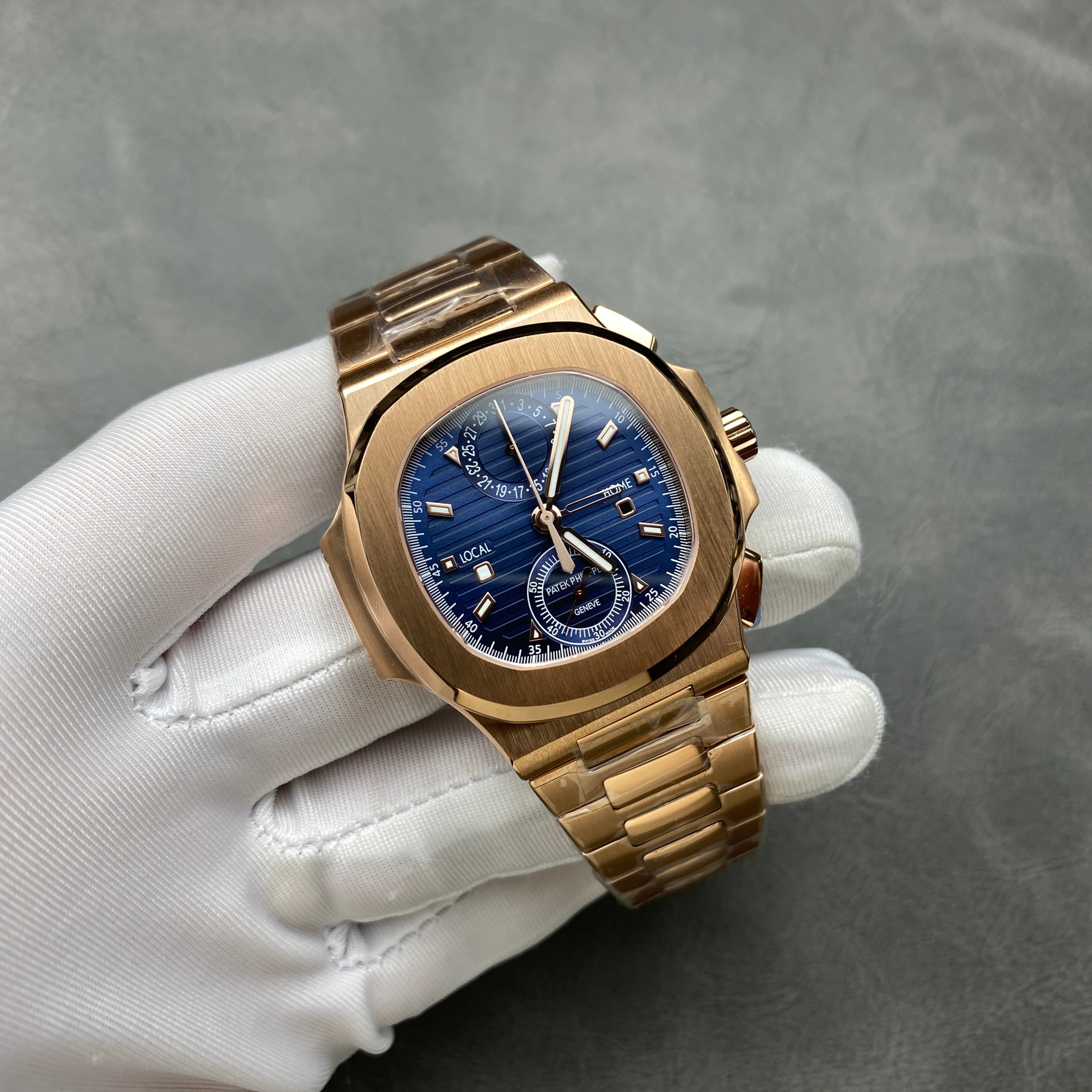 NAUTILUS TRAVEL TIME ROSE GOLD CASE SUNBURST BLUE DIAL