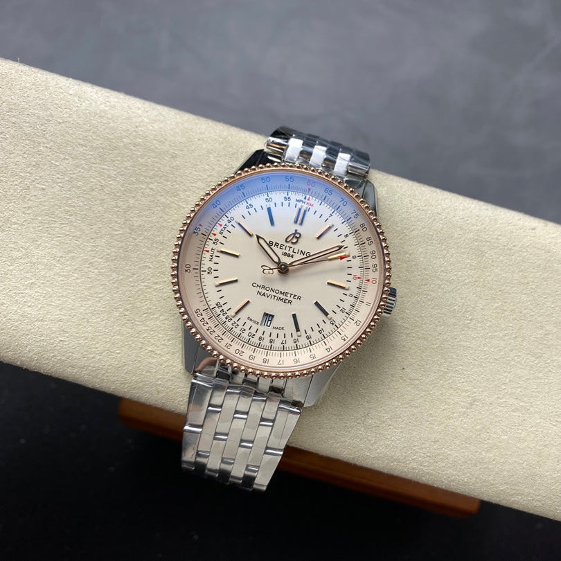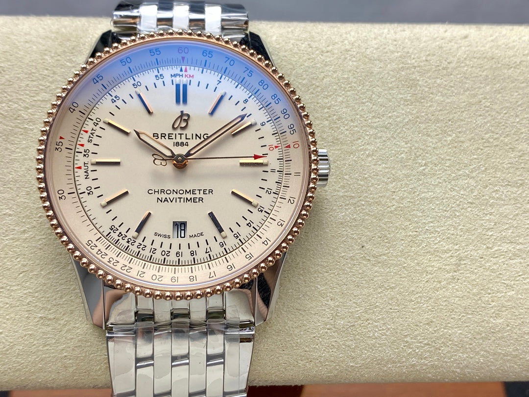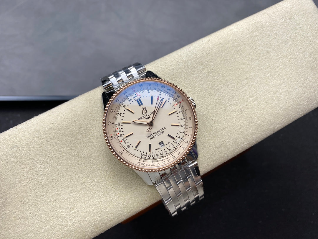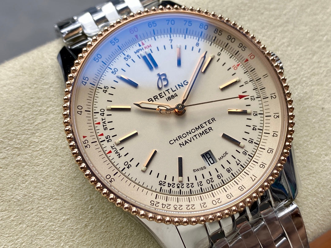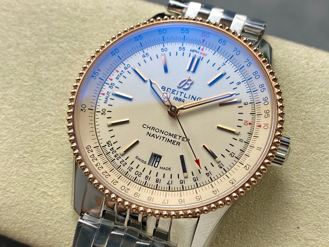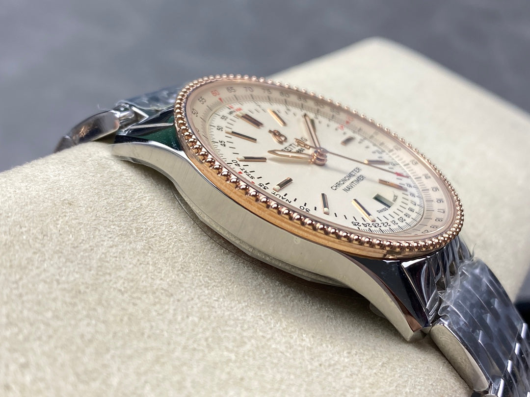 NAVITIMER AUTOMATIC 41 STEEL AND RED GOLD CASE WHITE DIAL