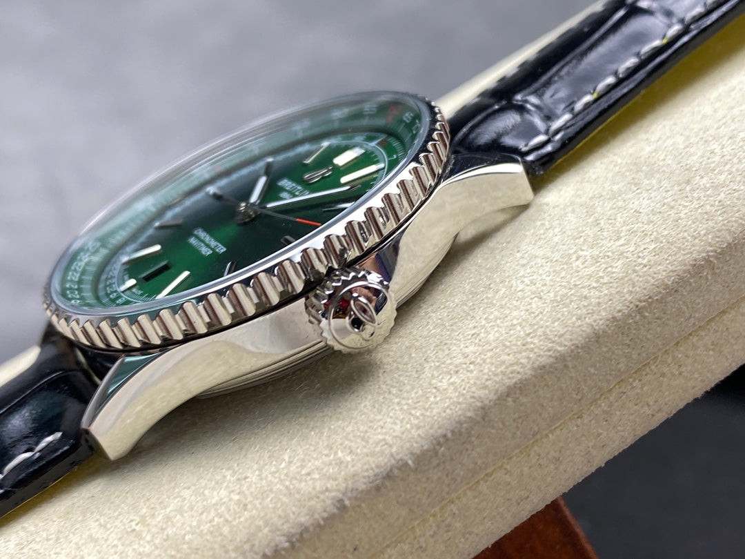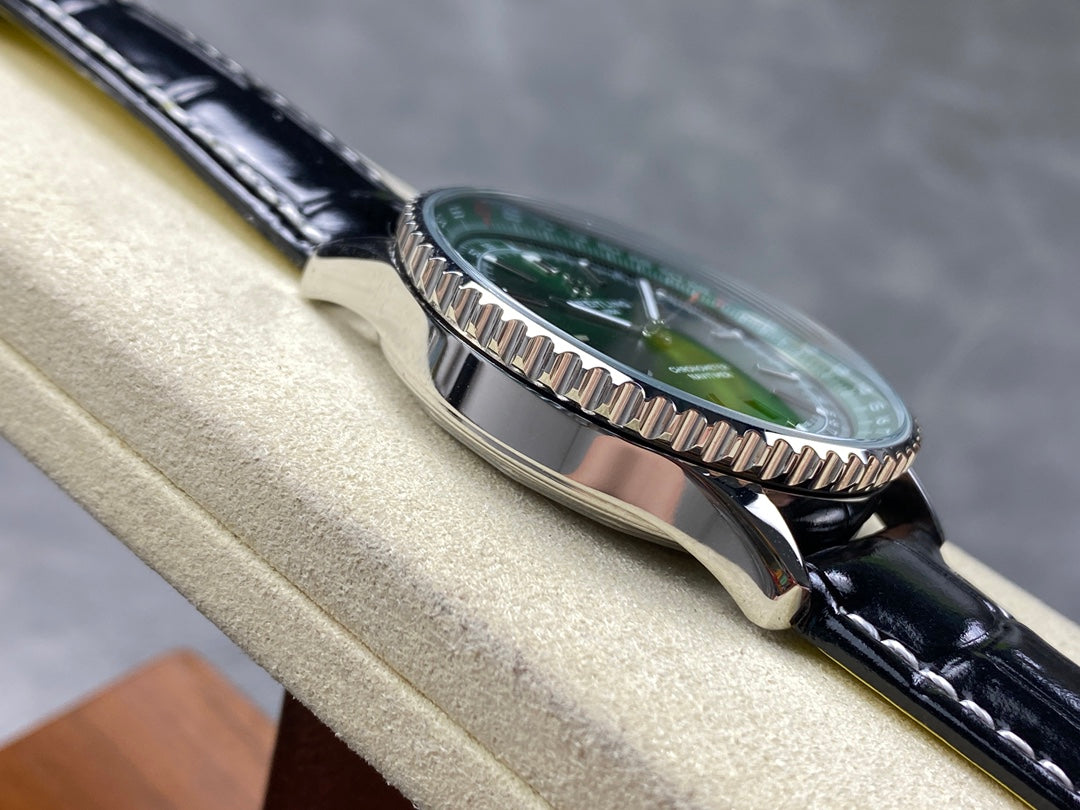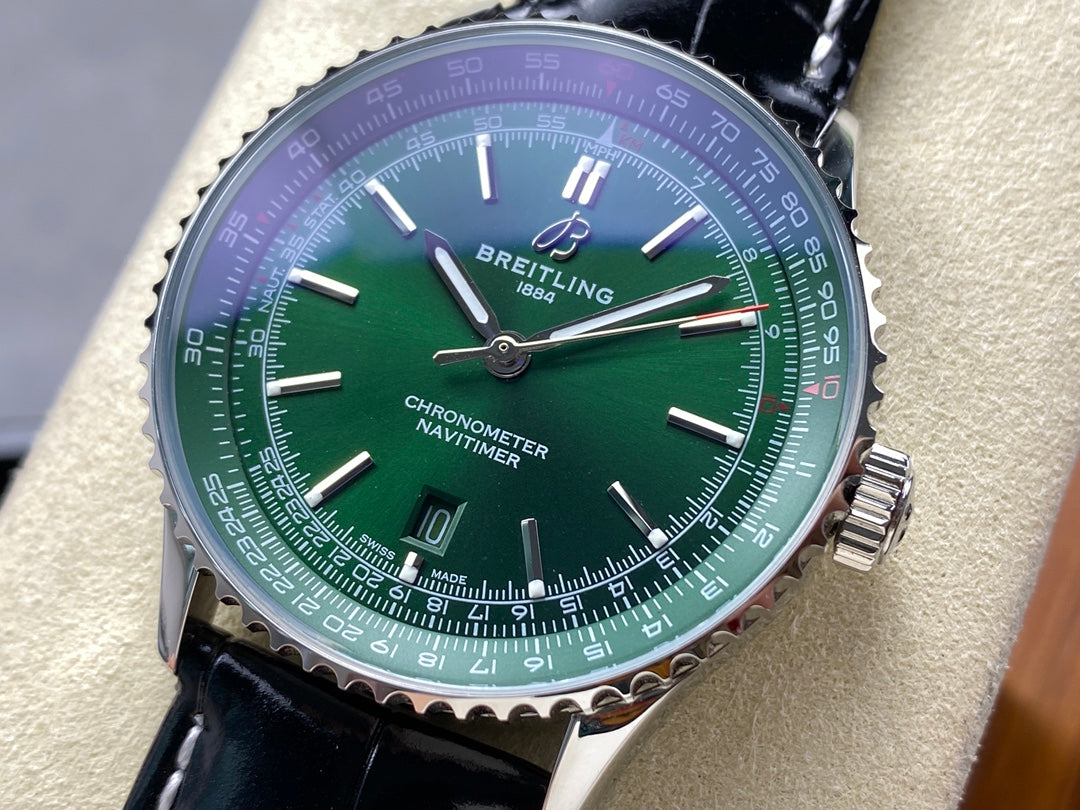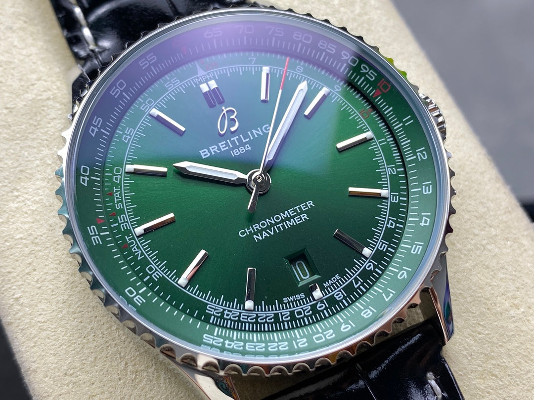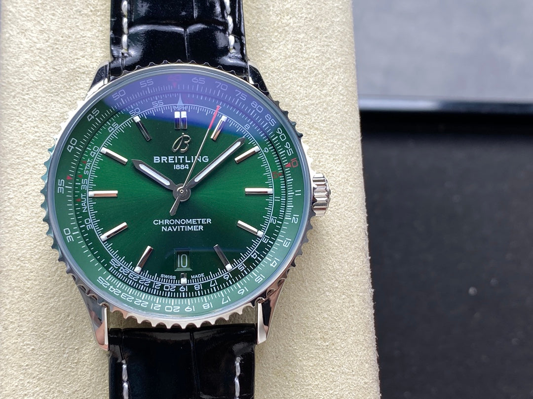 NAVITIMER AUTOMATIC 41 STEEL CASE GREEN DIAL BLACK ALLIGATOR LEATHER STRAP