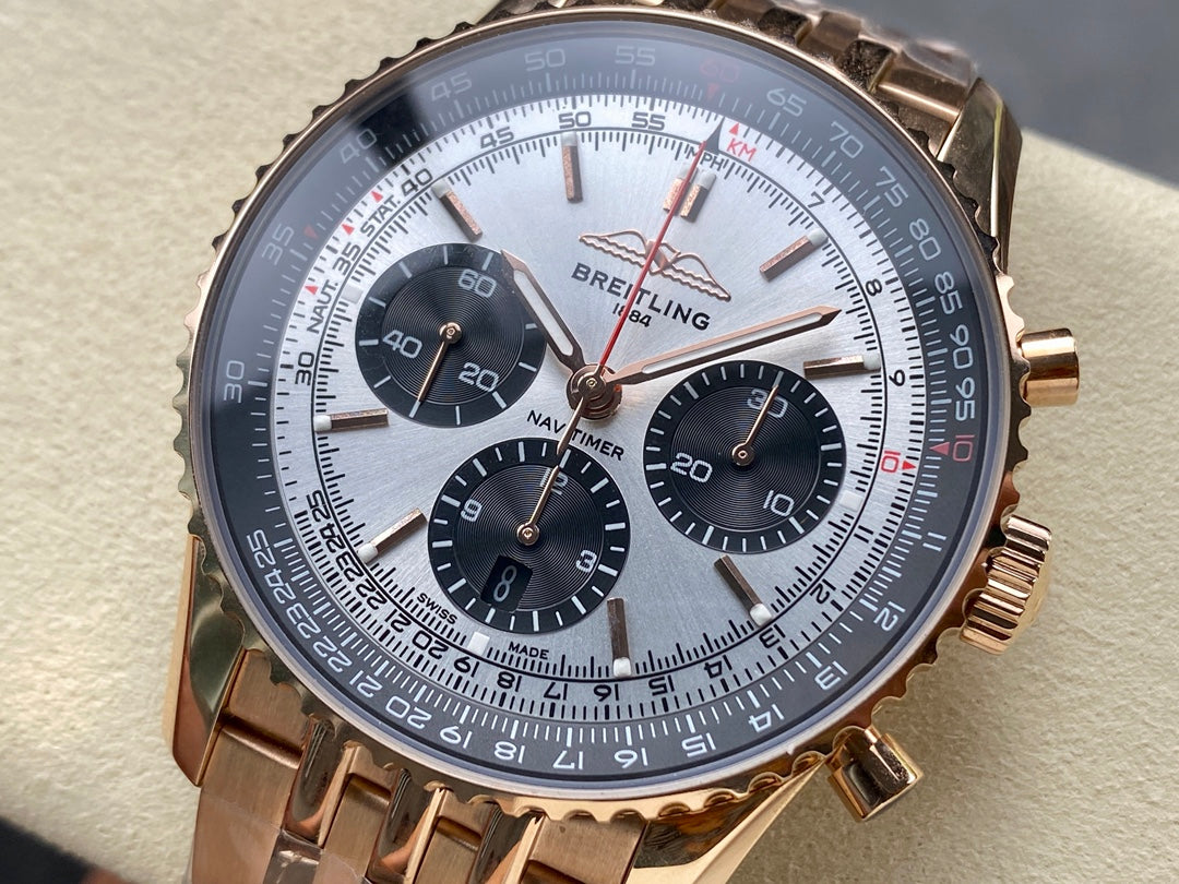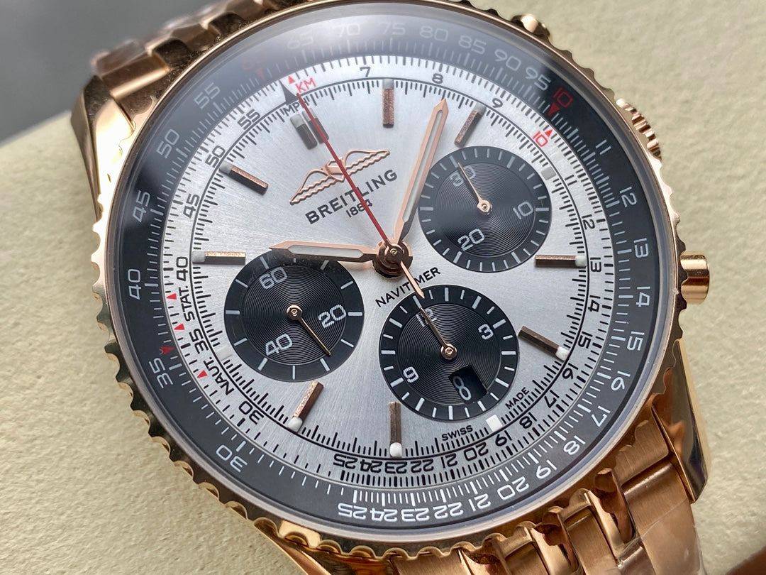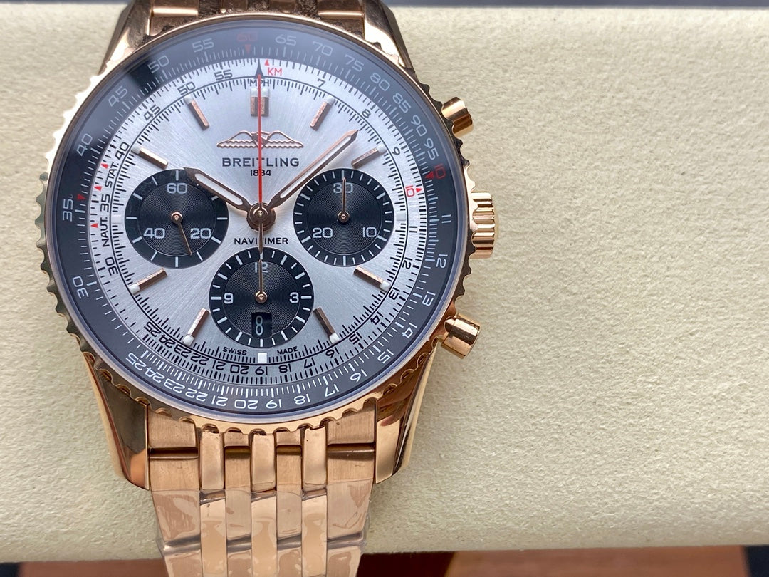 NAVITIMER B01 CHRONOGRAPH 43 ALL RED GOLD SILVER MIX BLACK DIAL