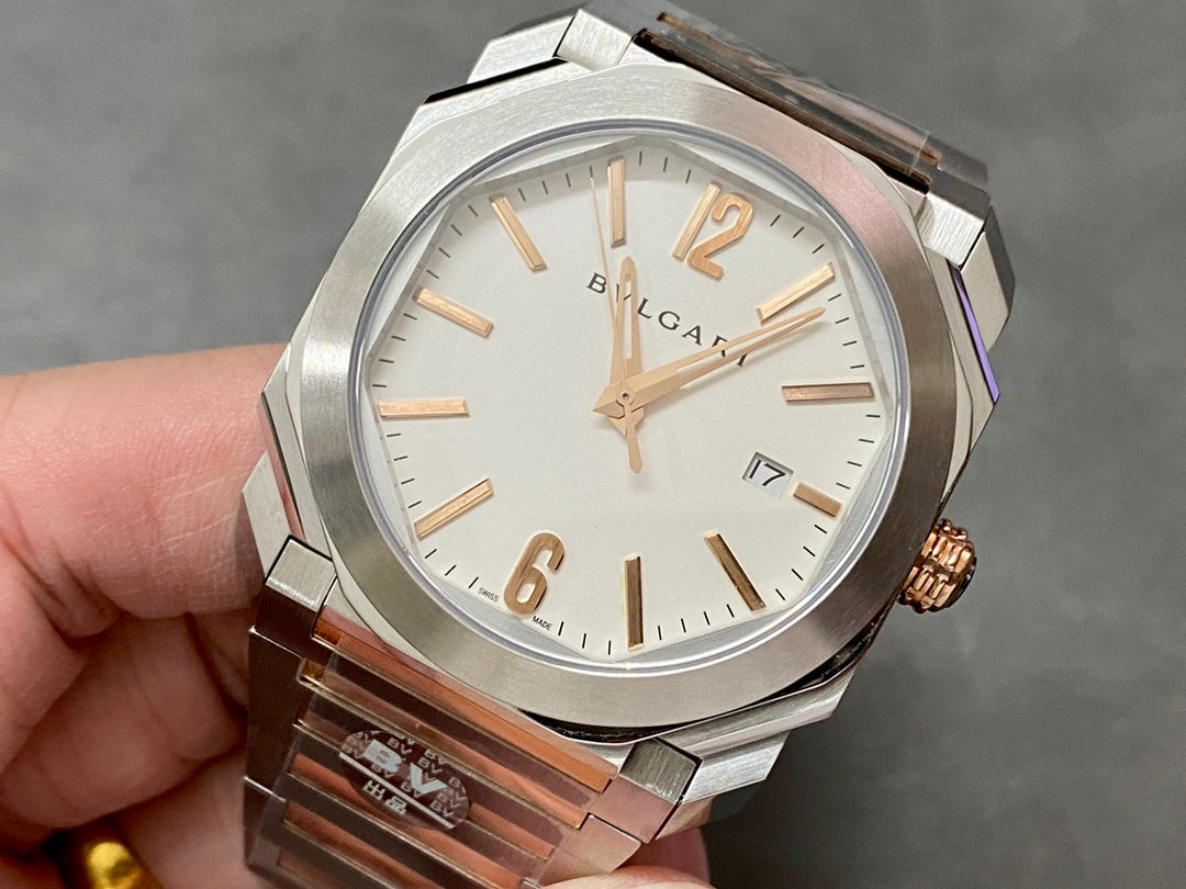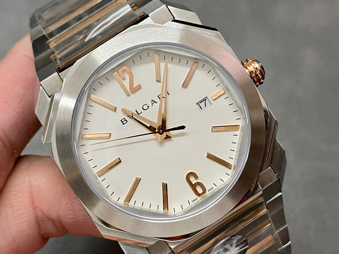 OCTO 41 AUTOMATIC ROSE GOLD AND STEEL WHITE DIAL