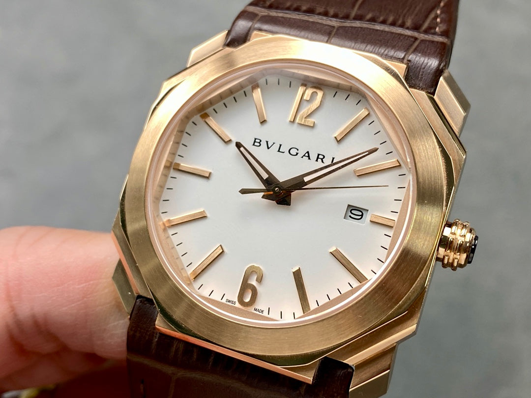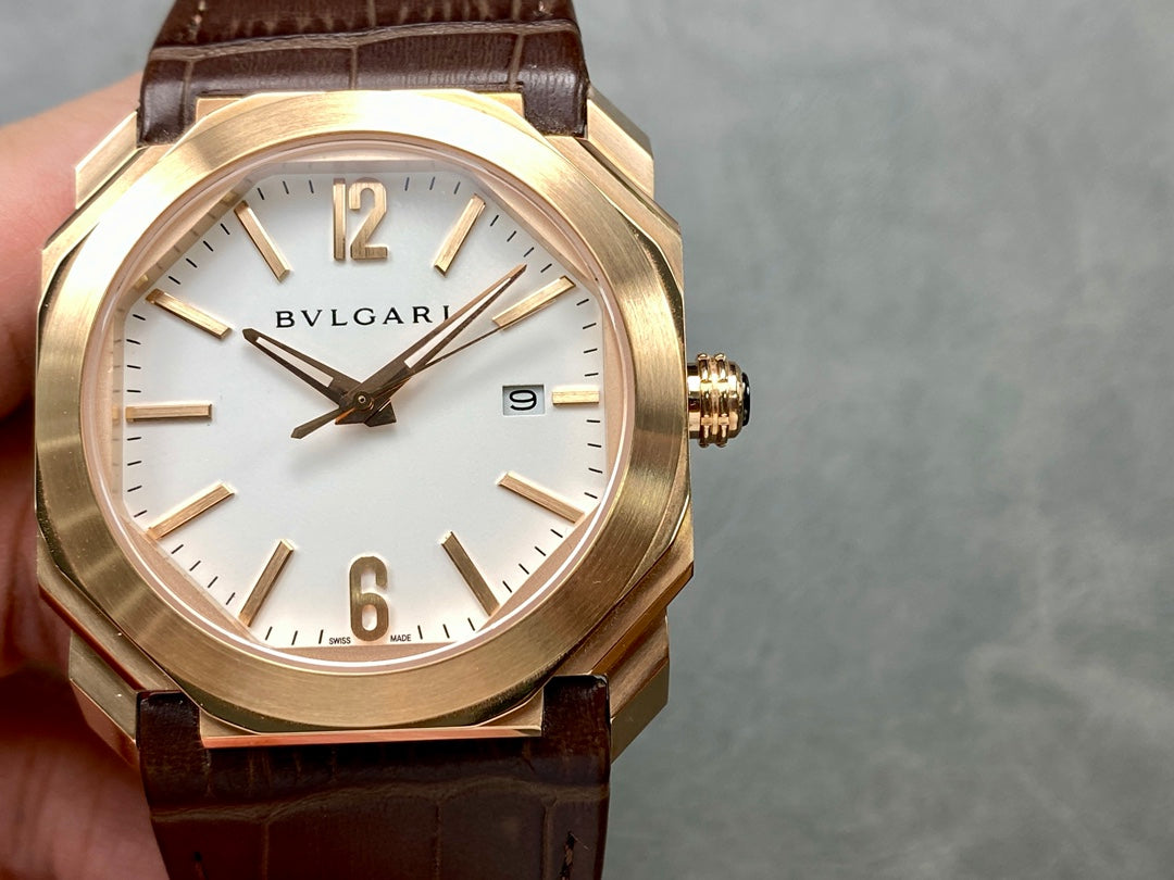 OCTO 41 ROSE GOLD CASE BROWN CROCODILE LEATHER STRAP