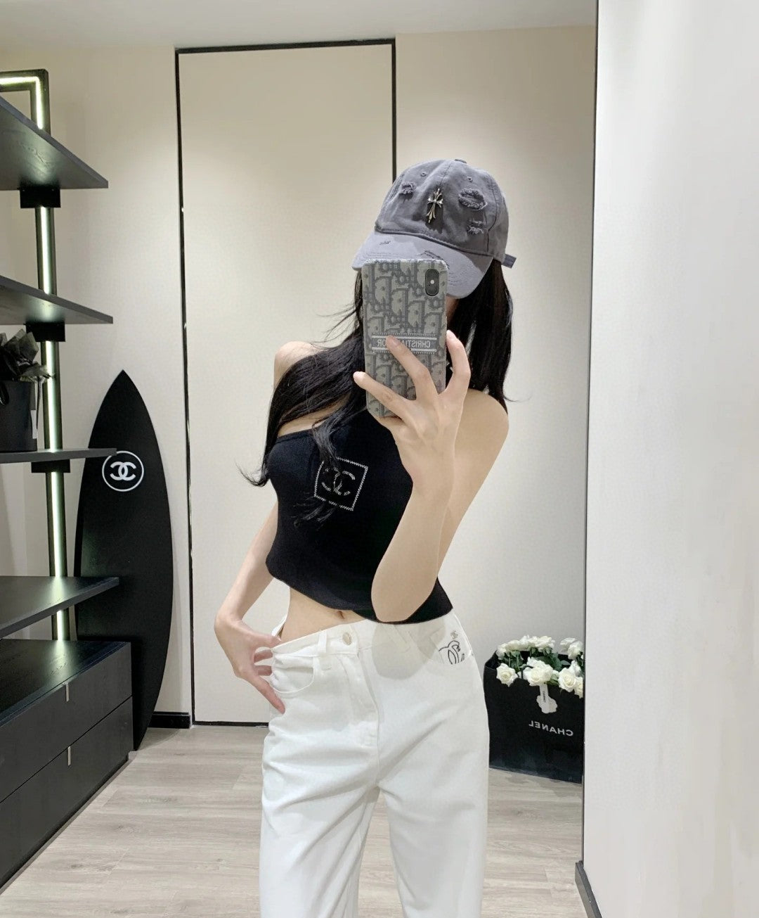 ONE SHOULDER TOP 624509 IN BLACK COTTON MULTICOLOR LOGO