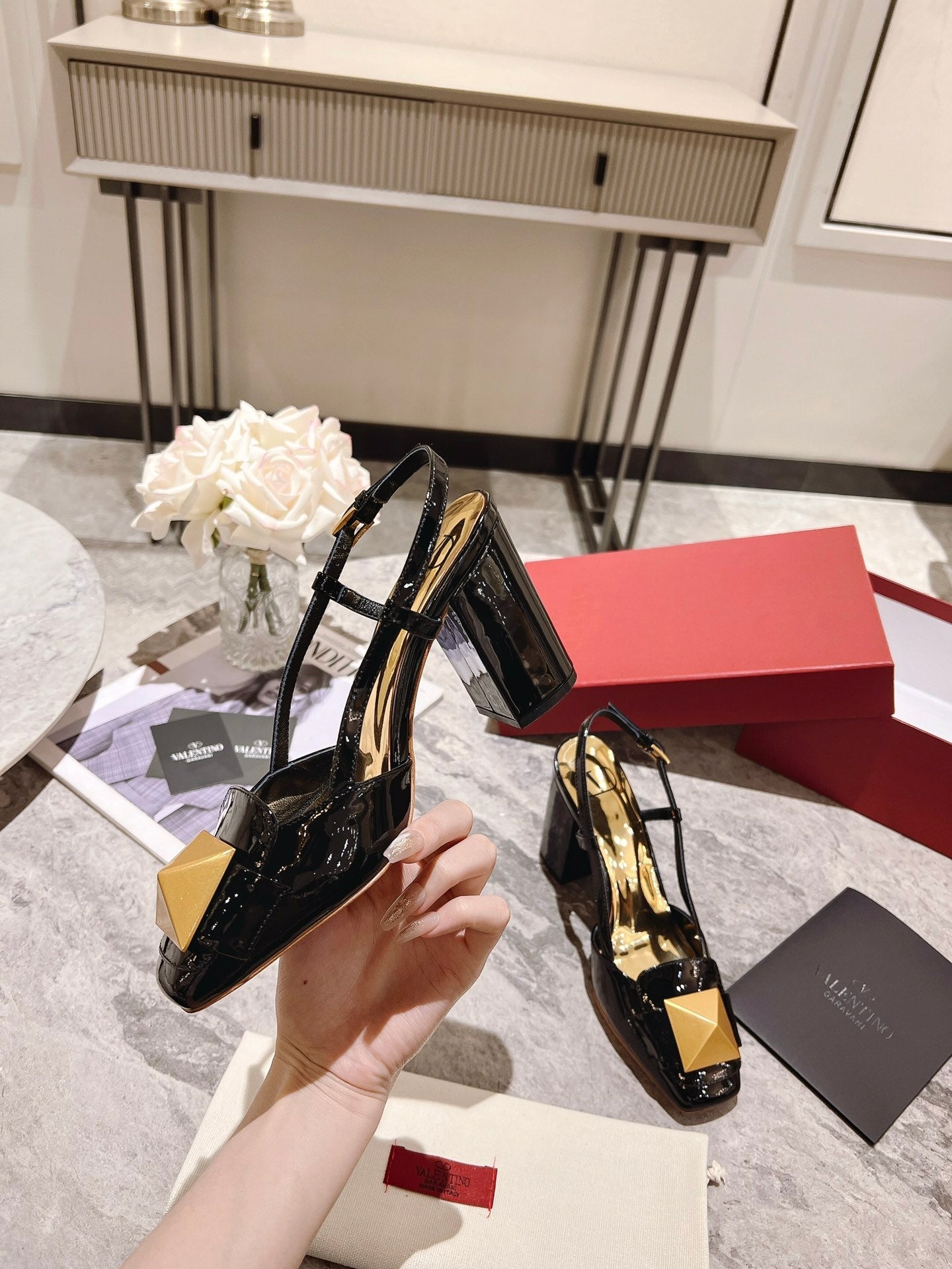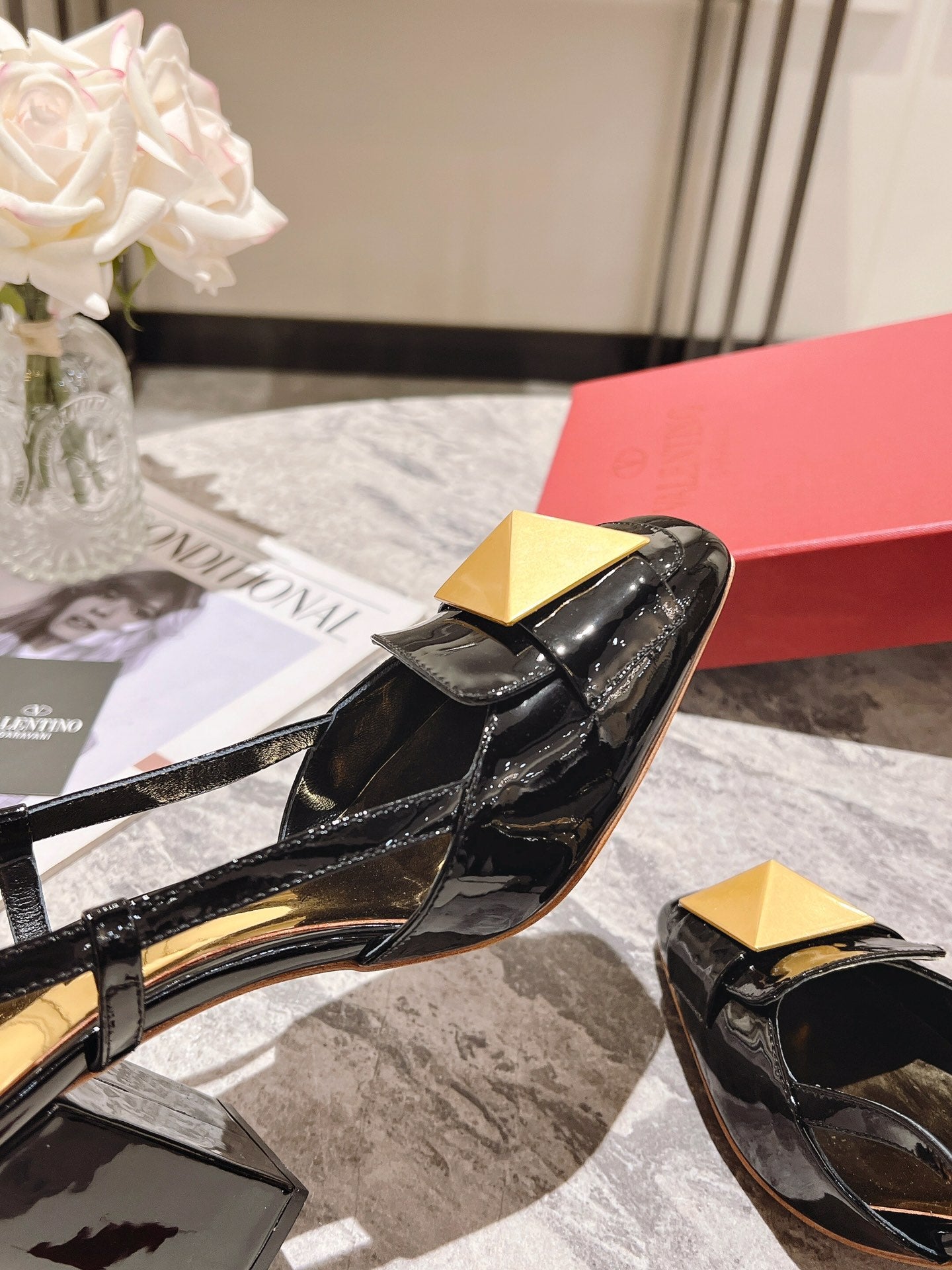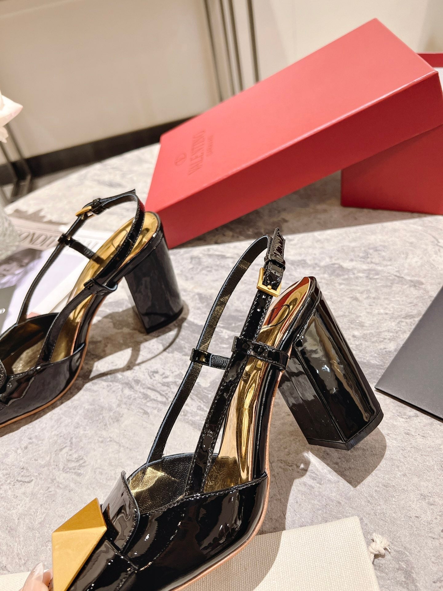 ONE STUD BLACK PATENT LEATHER LACE-UP HIGH HEELS 85 MM