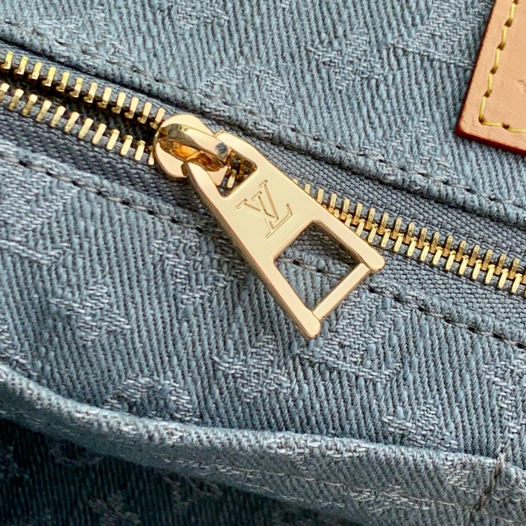 ONTHEGO ORGANIZER 35 IN GREY MONOGRAM DENIM LIGHT BROWN CALFSKIN