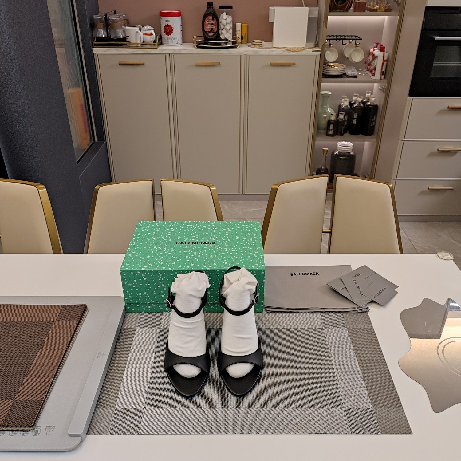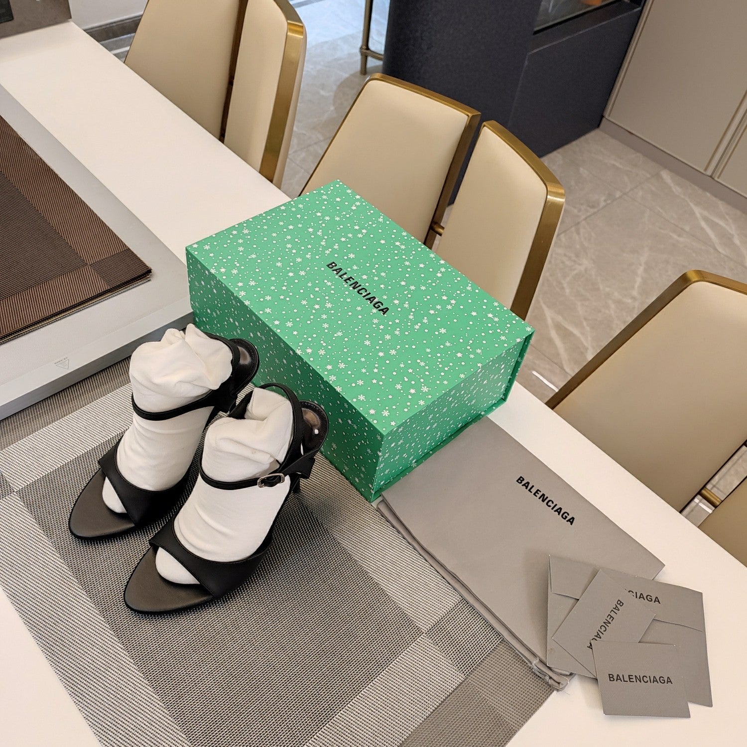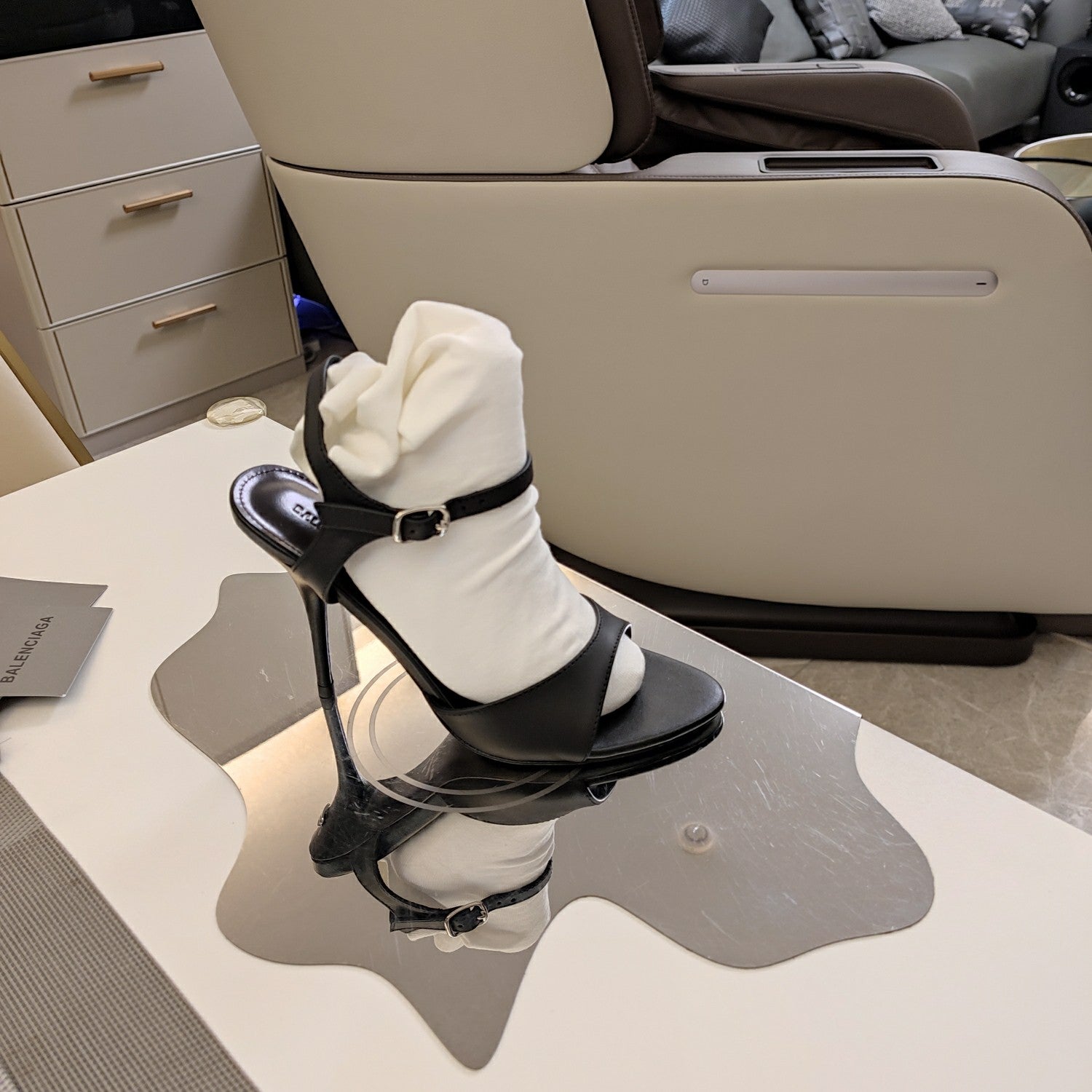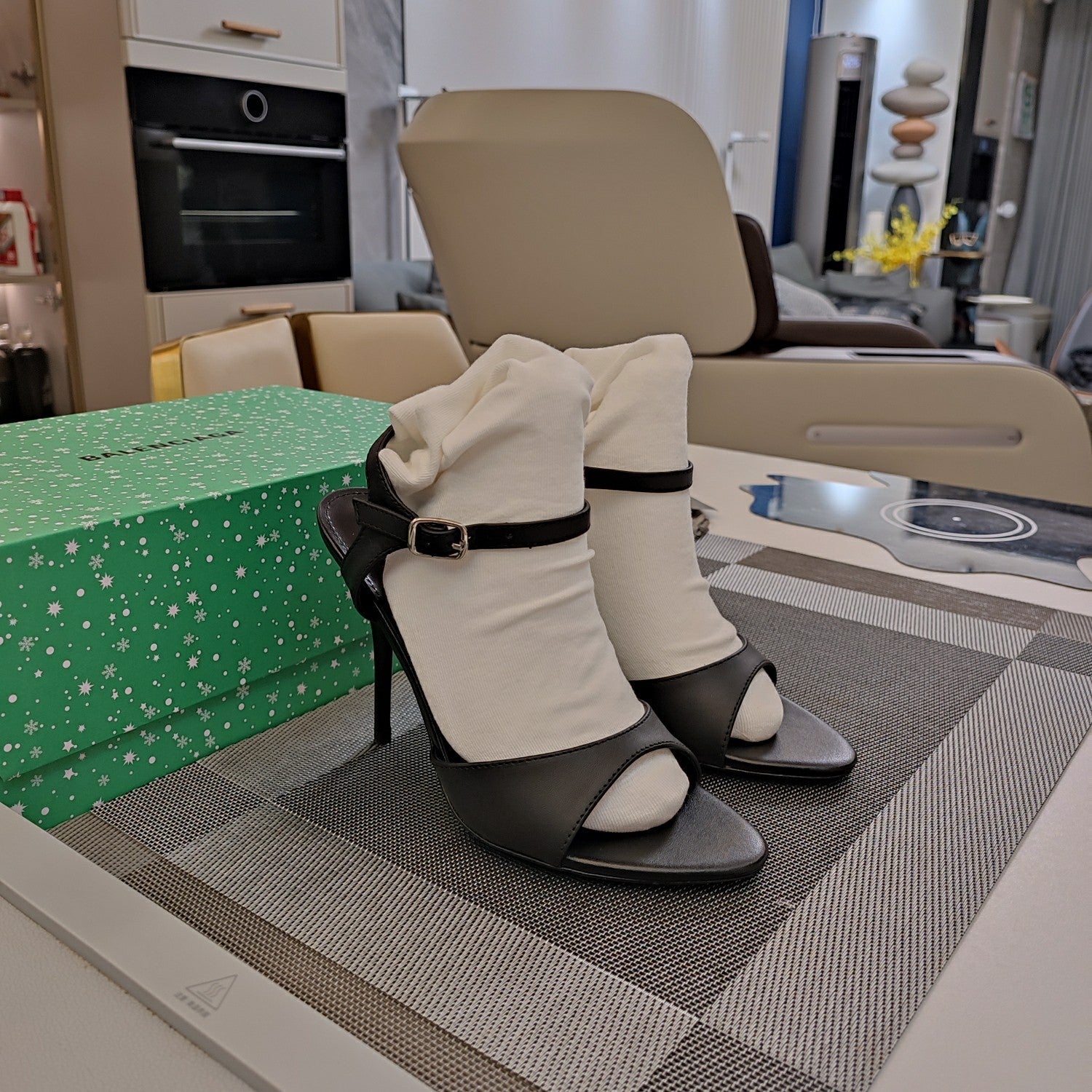 OPEN TOE STRAPPY HIGH HEEL IN BLACK CALFSKIN