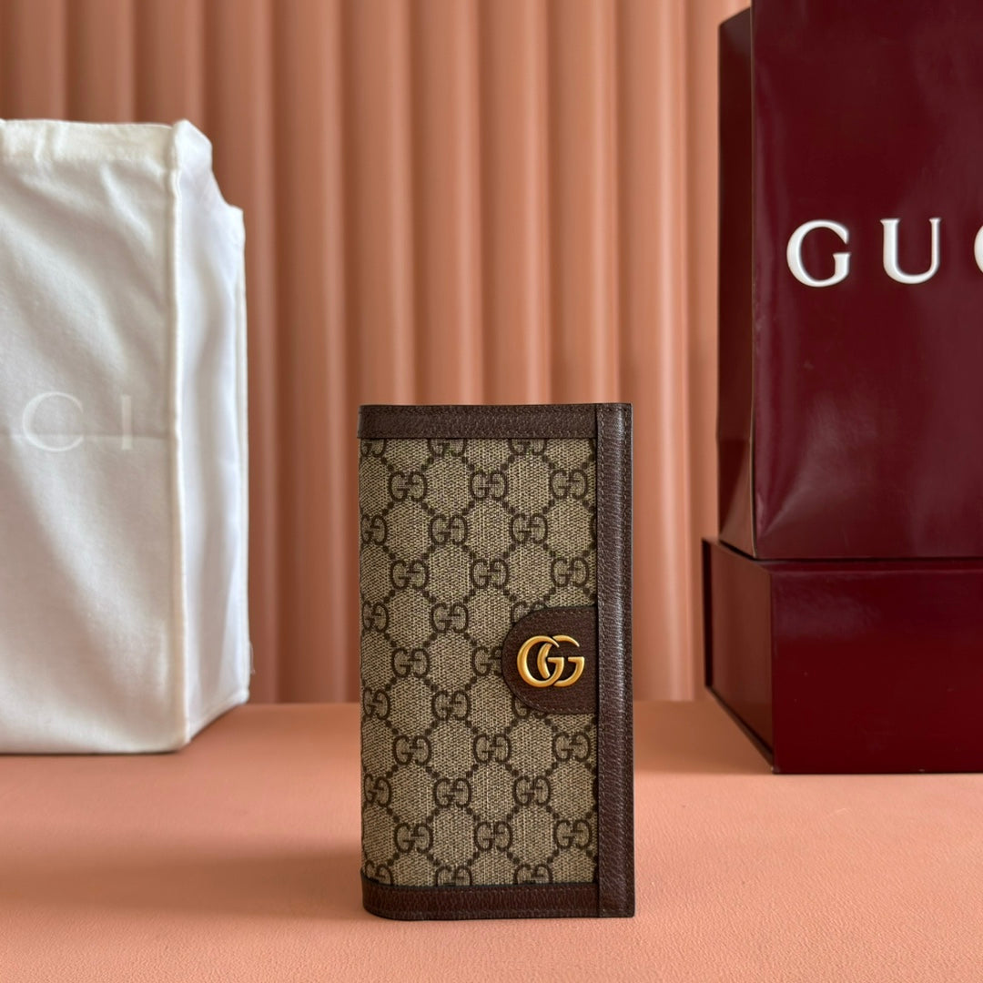OPHIDIA CARD CASE 19 IN BEIGE BROWN COATED FABRIC AND CALFSKIN