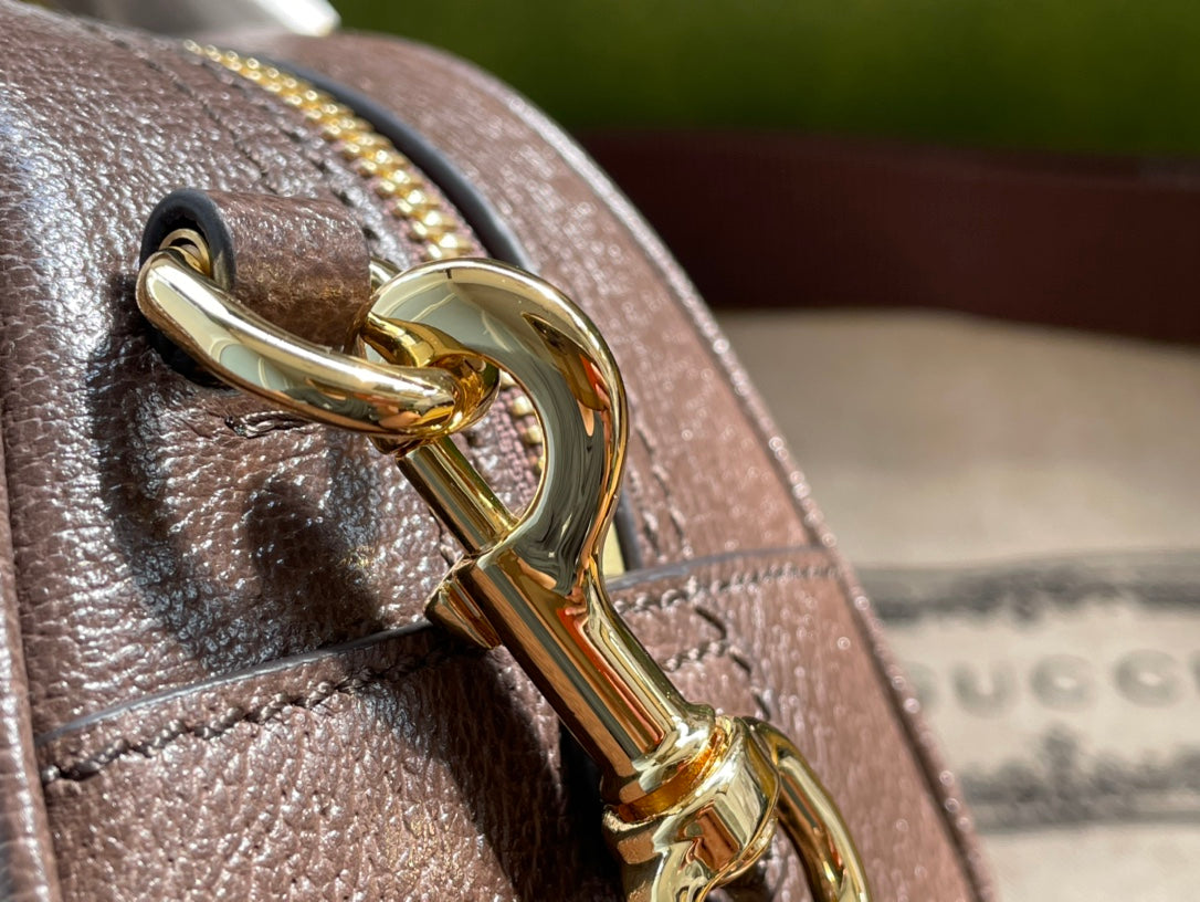 OPHIDIA GG SMALL 21 SHOULDER BAG BEIGE AND EBONY SUPREME CANVAS