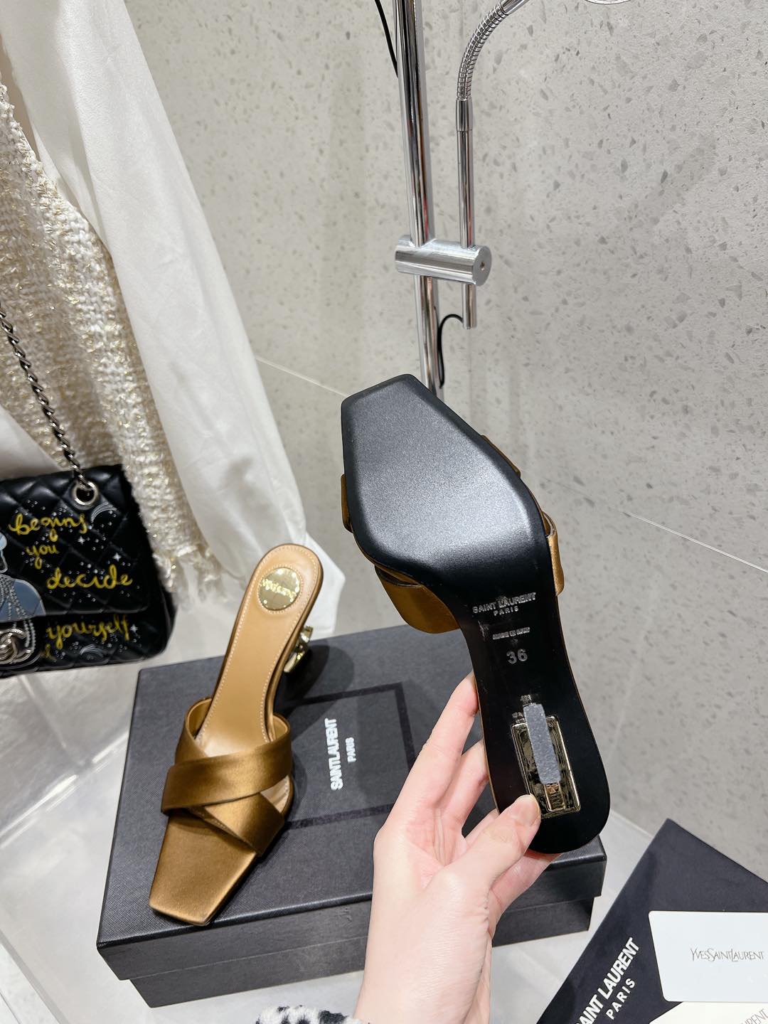 OPYUM HIGH MULES 85 MM IN METALLIC GOLD SATIN CREPE