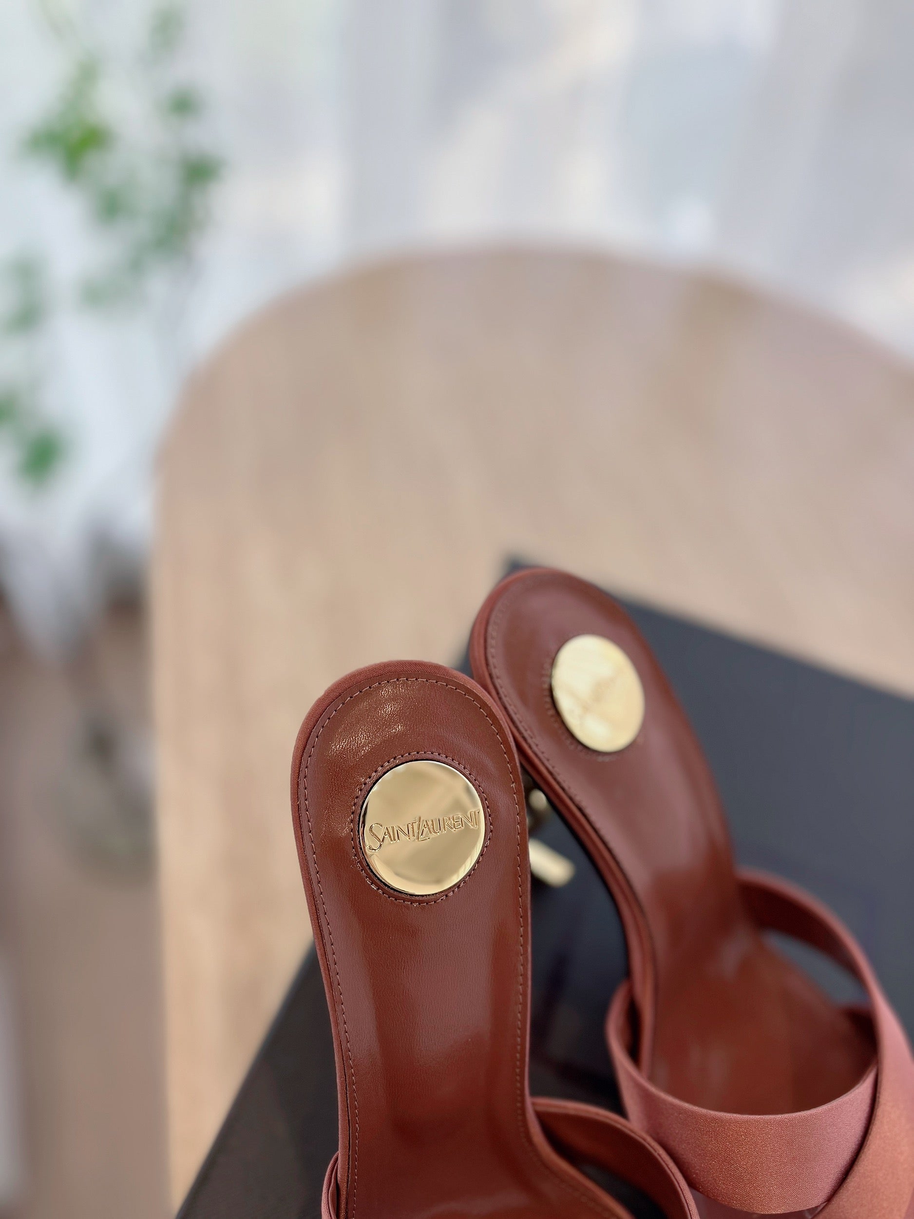 OPYUM OPEN TOE HIGH 10 CM MULES IN MARS RED CALFSKIN