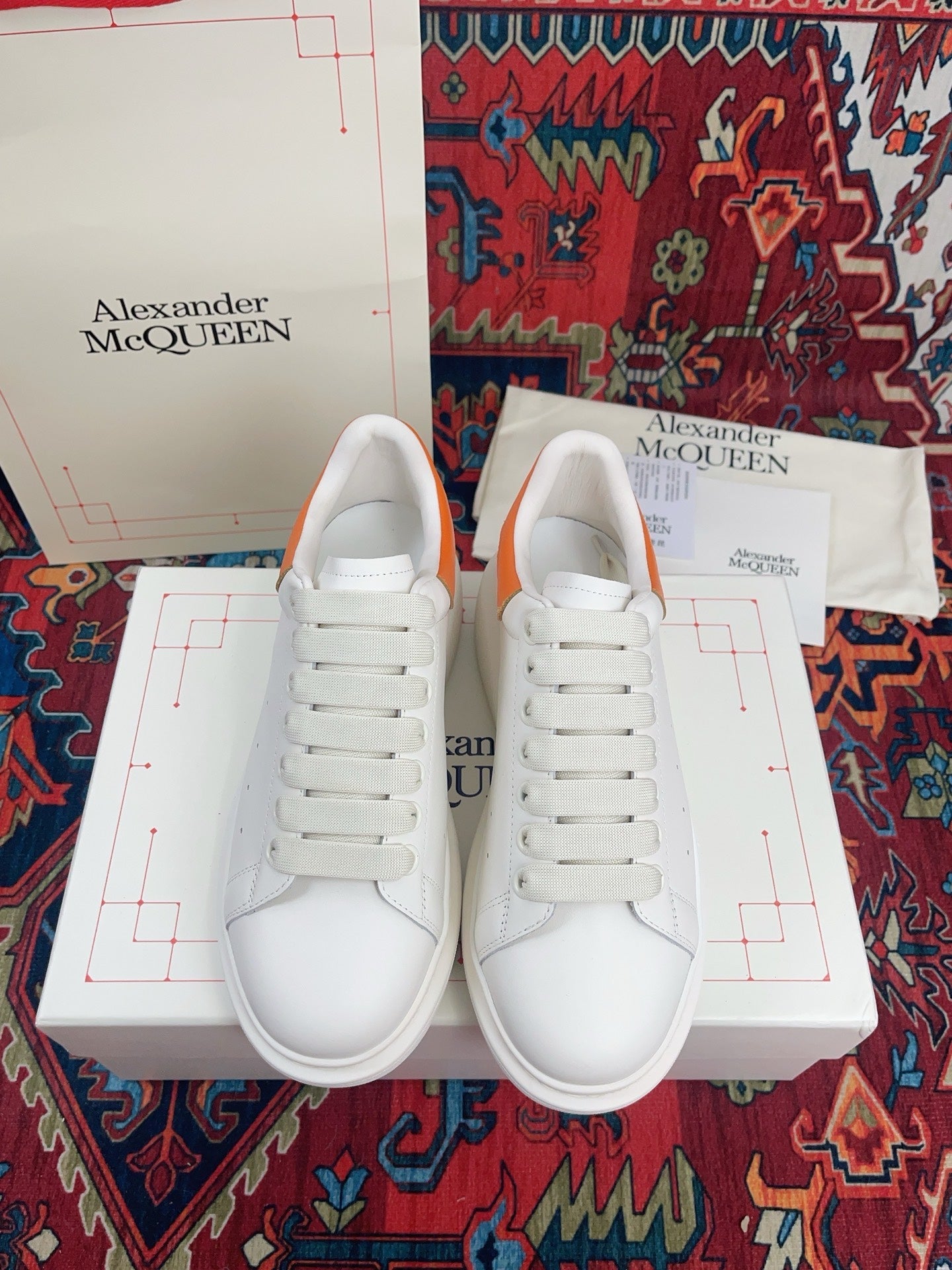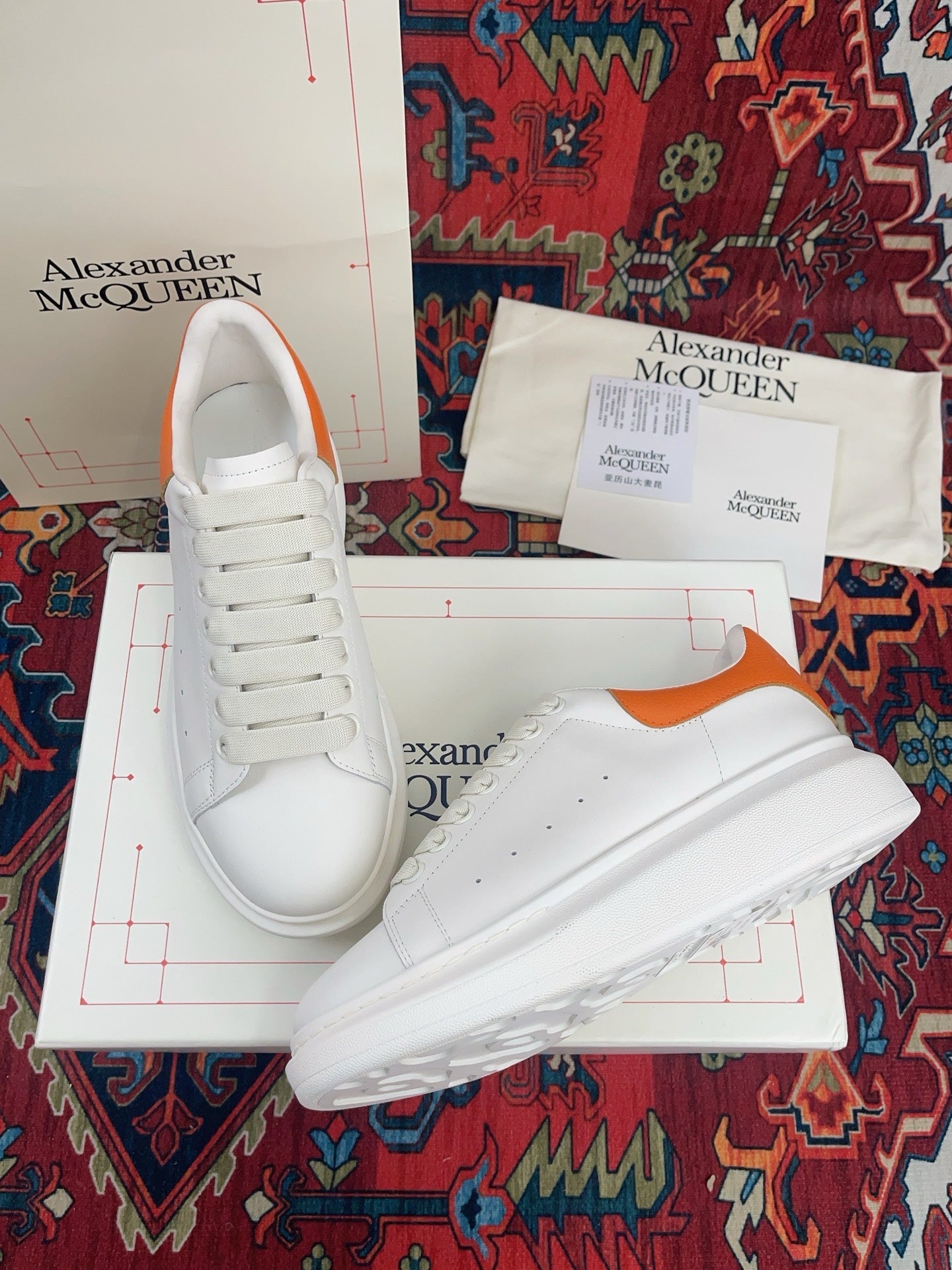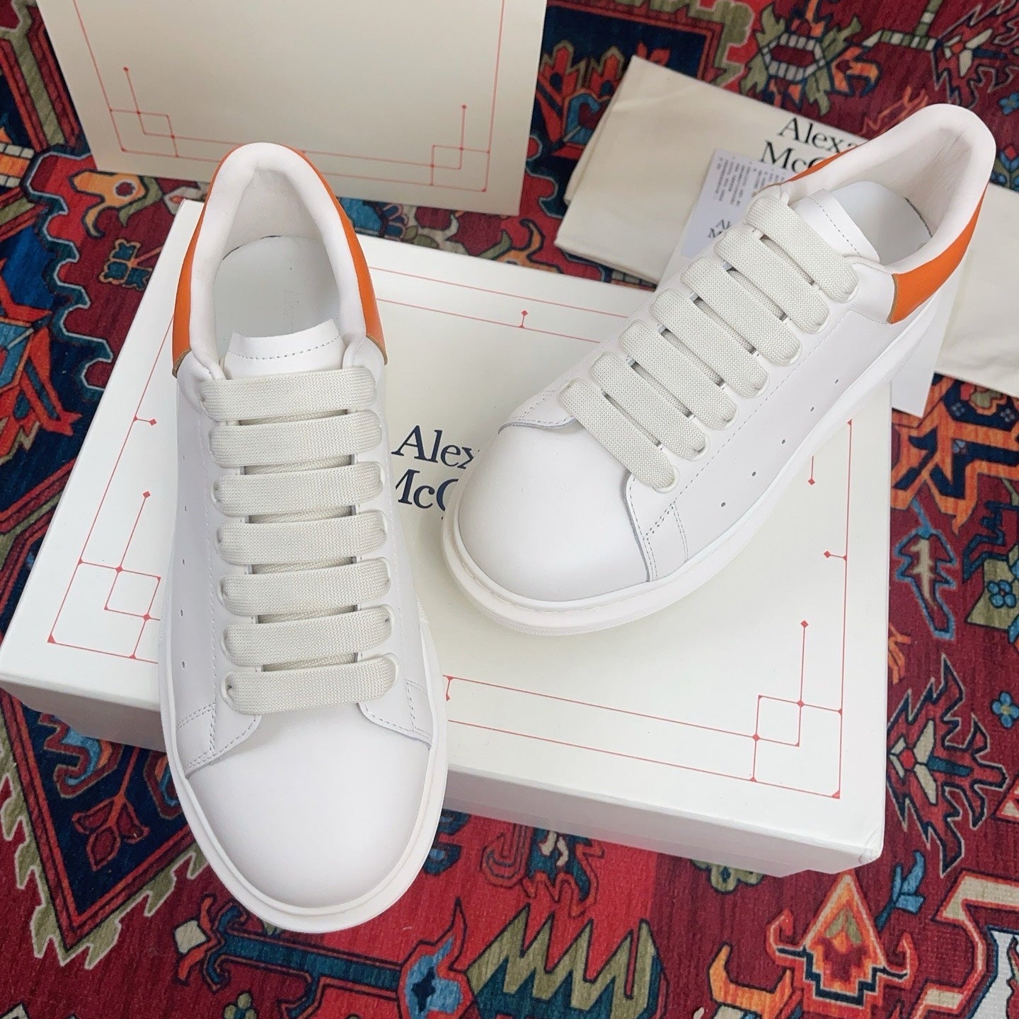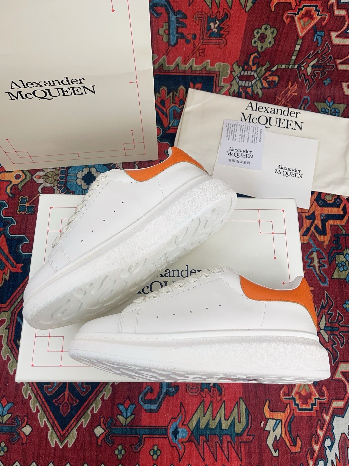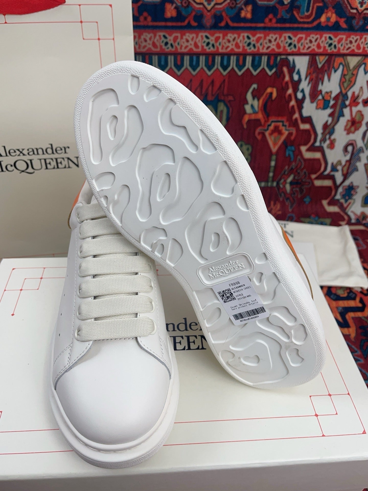 OVERSIZED SNEAKER IN WHITE CALFSKIN ORANGE HEEL TAB EMBOSSED LOGO