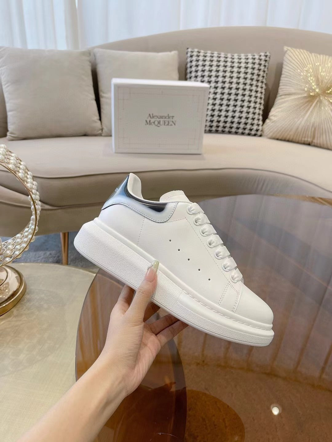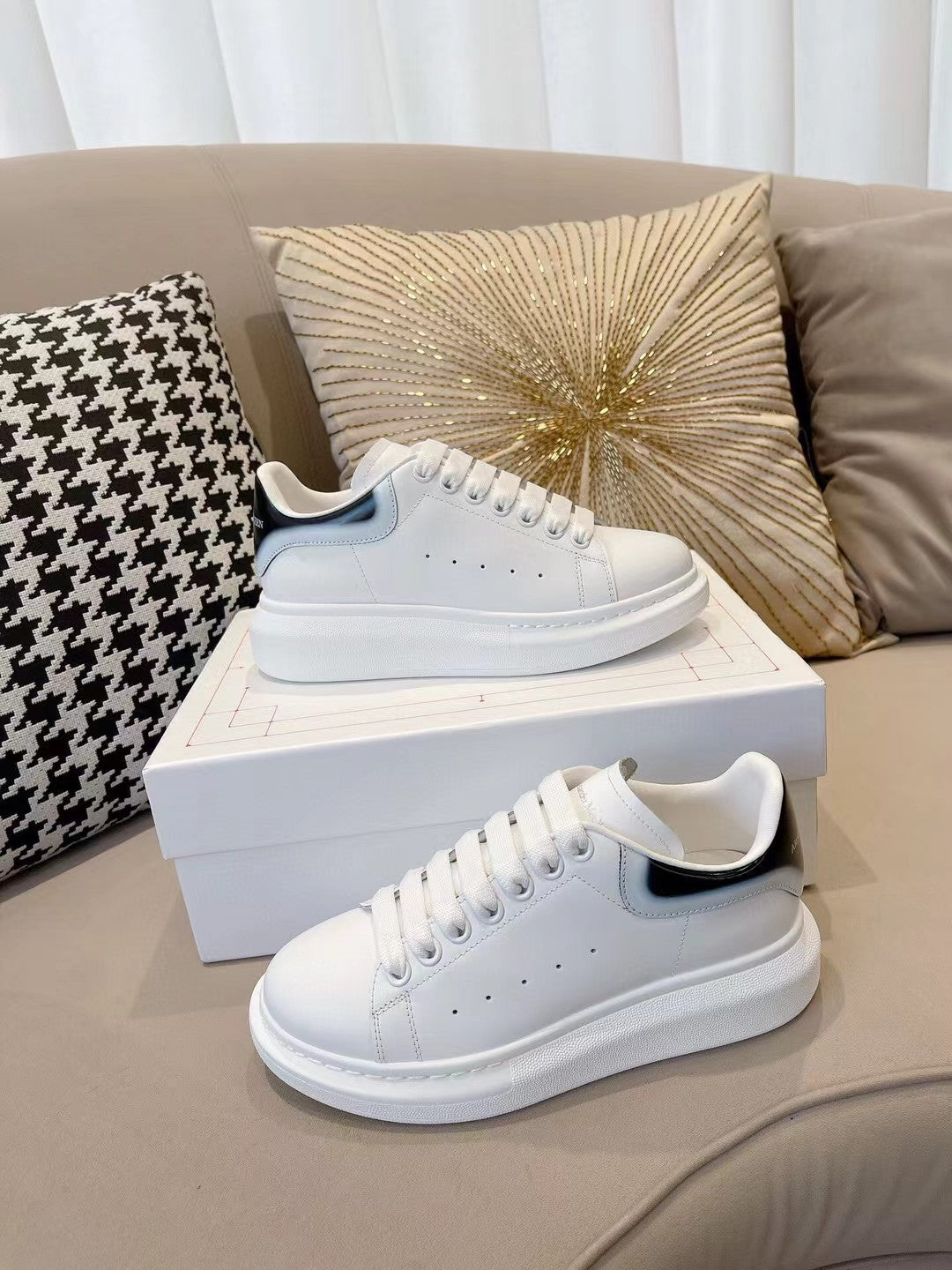 OVERSIZED SNEAKER IN WHITE CALFSKIN WITH GLOSSY BLACK AND WHITE HEEL TAB