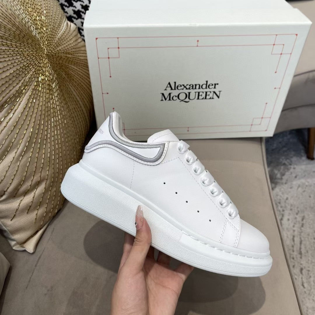 OVERSIZED SNEAKER IN WHITE CALFSKIN WITH GREY STITCHED HEEL TAB