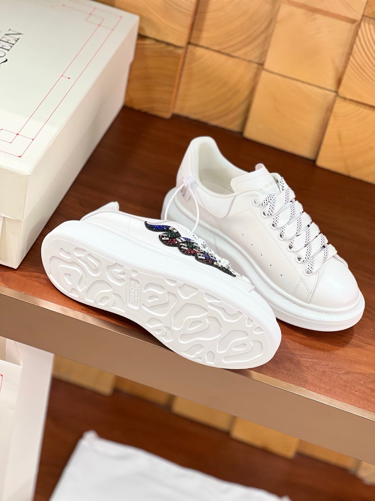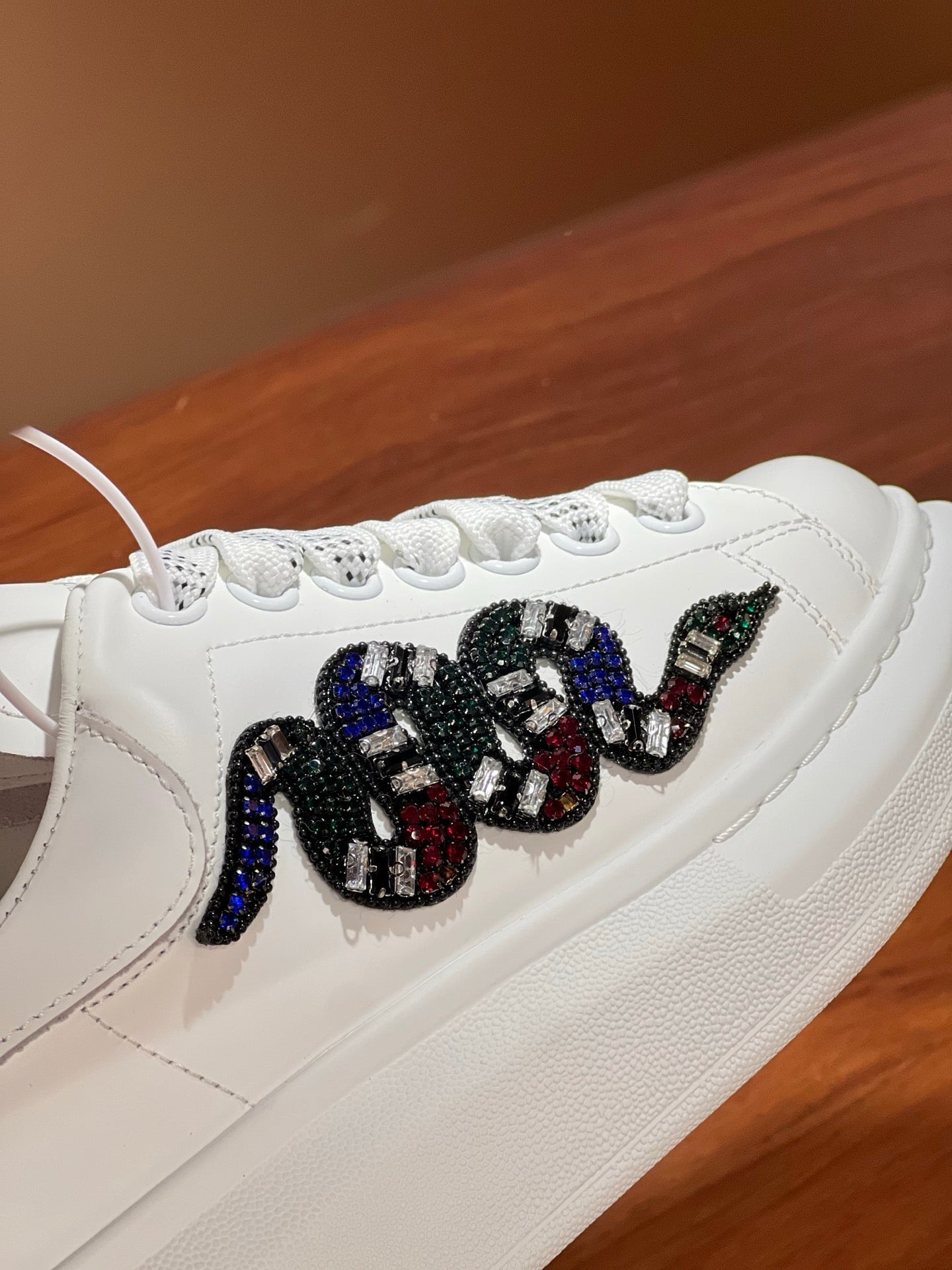 OVERSIZED SNEAKERS IN WHITE CALFSKIN EMBROIDERED MULTICOLOR SNAKE