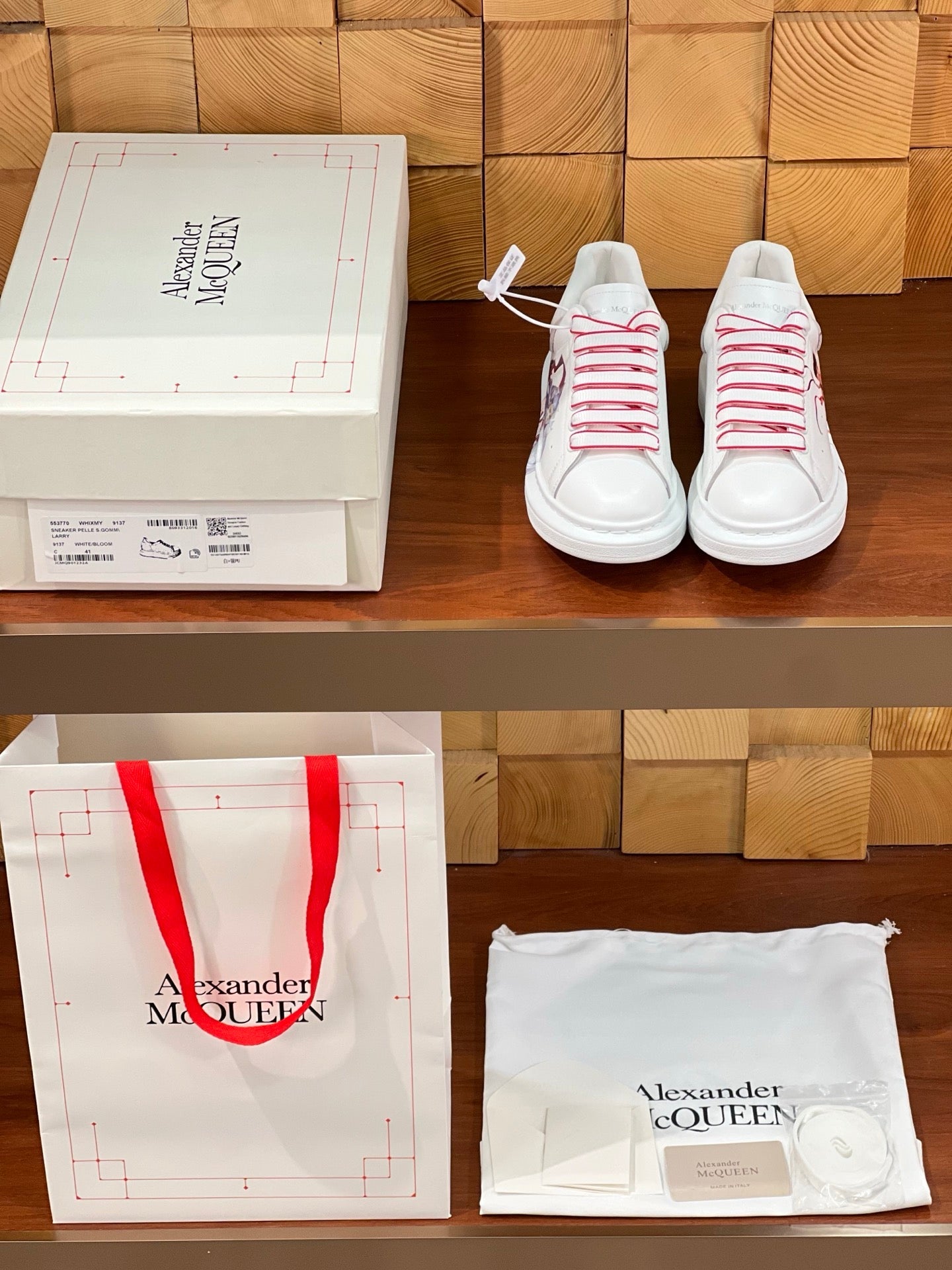 OVERSIZED SNEAKERS IN WHITE CALFSKIN NATRA GRAPHIC RED TRIM LACES