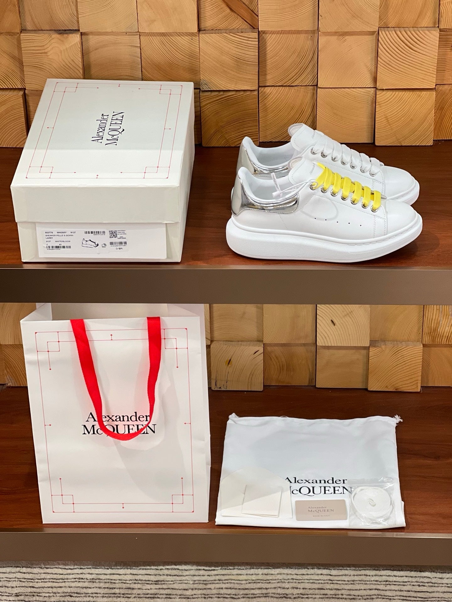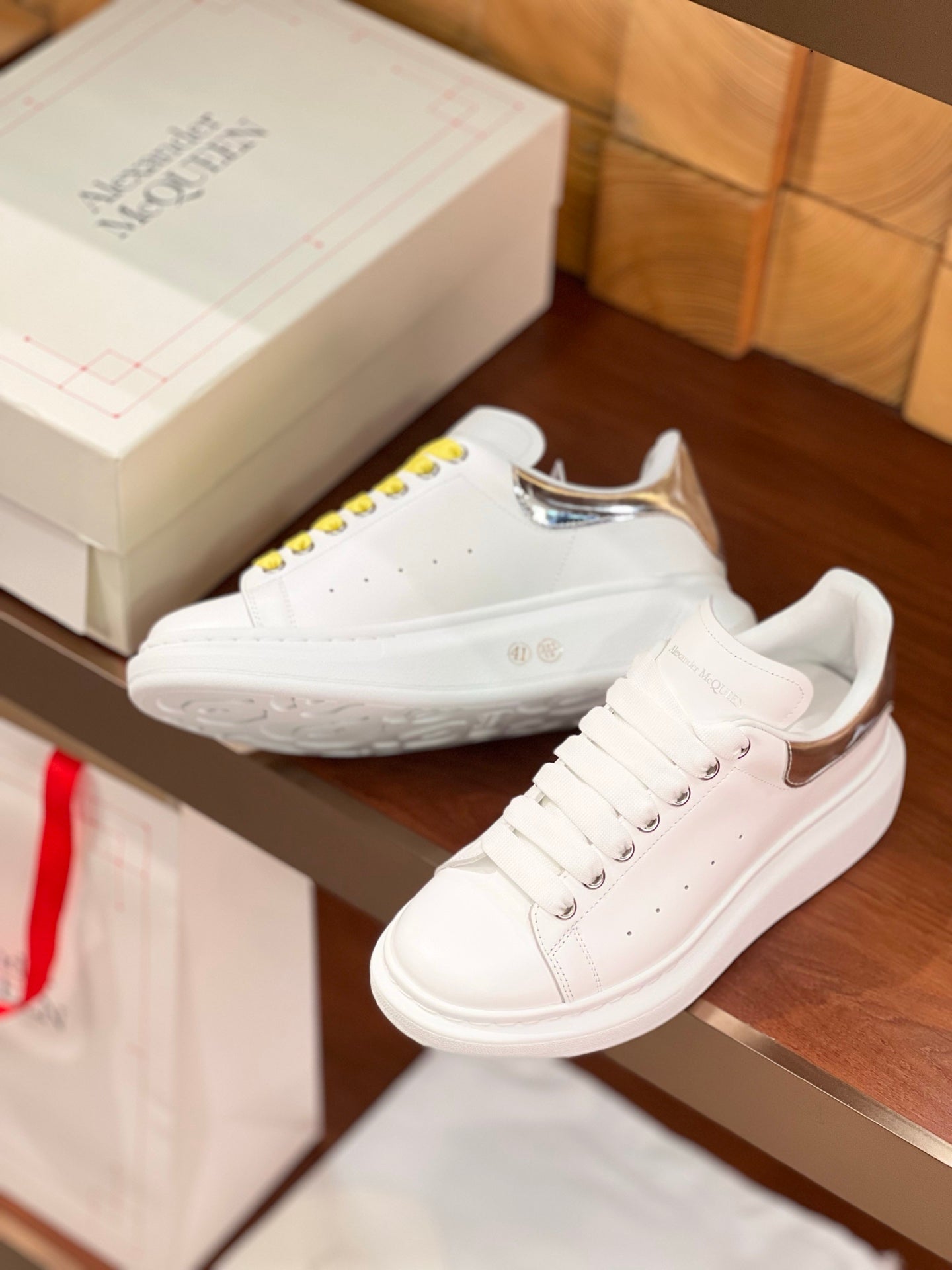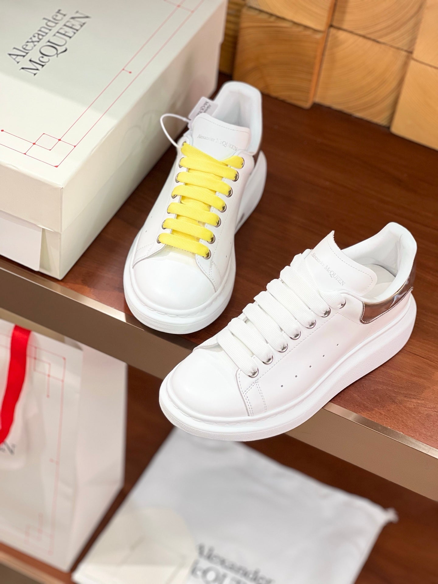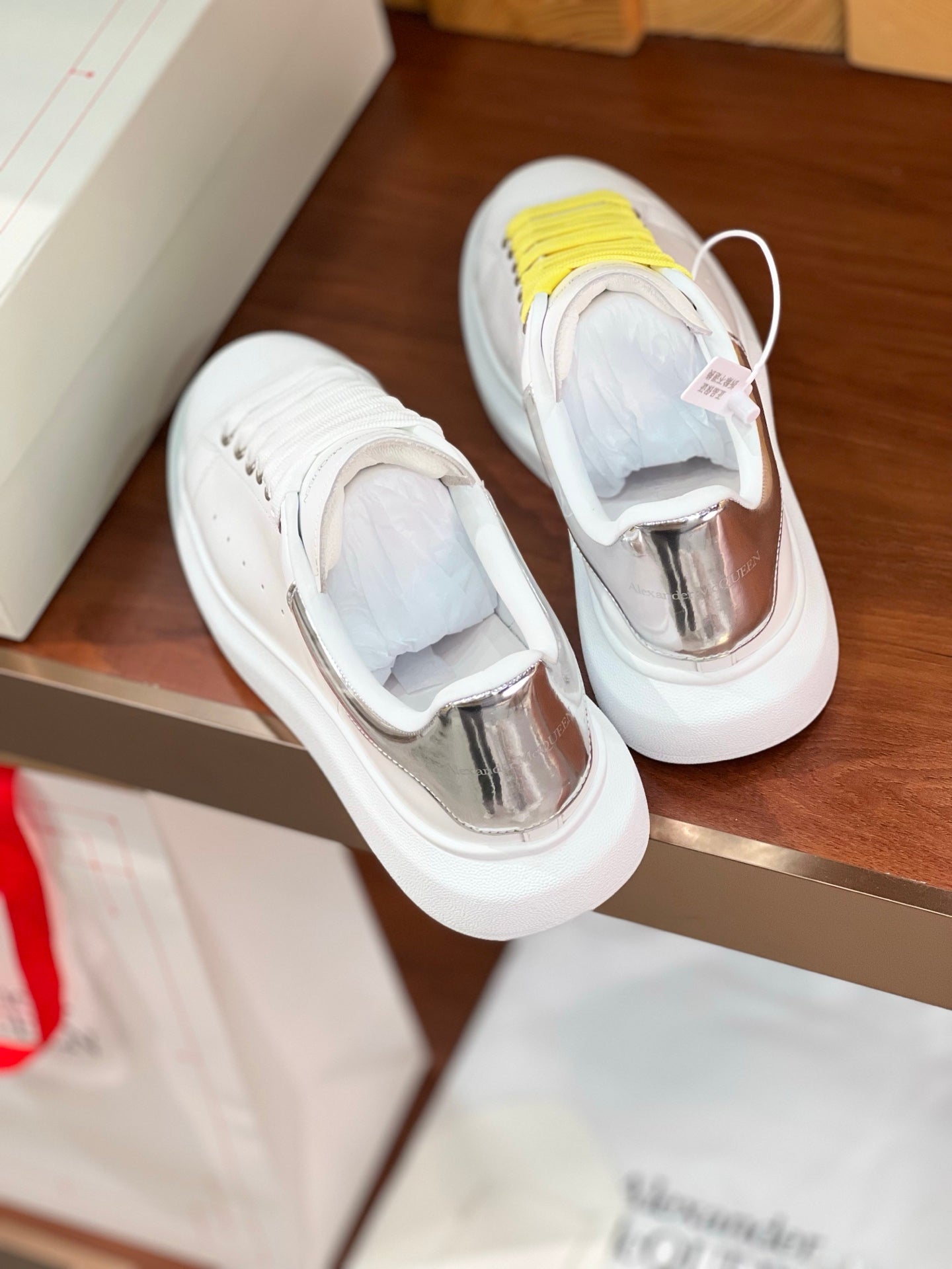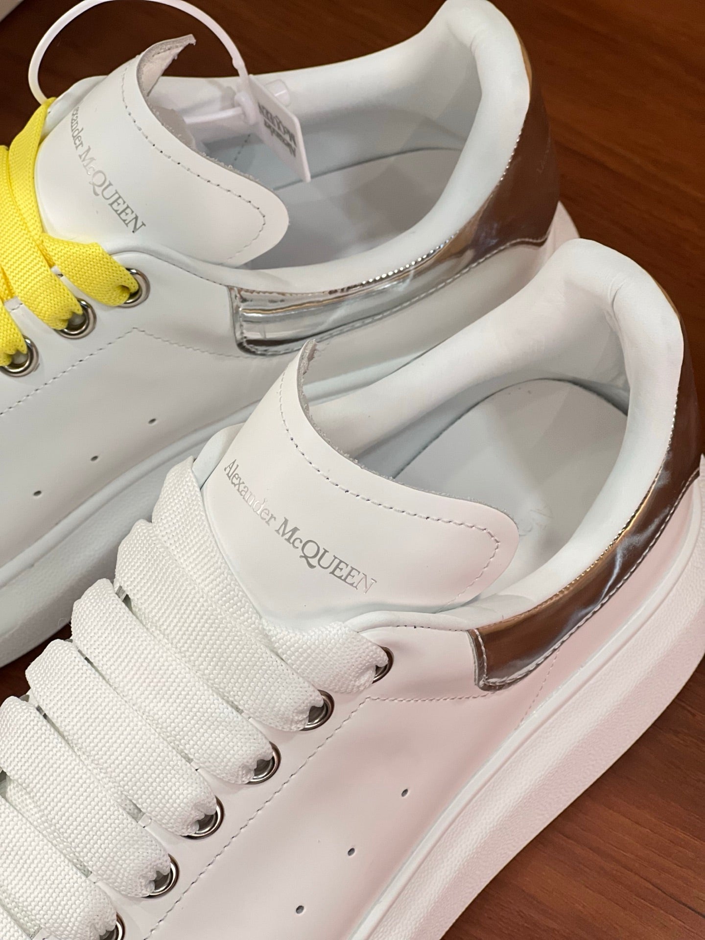 OVERSIZED SNEAKERS IN WHITE CALFSKIN SILVER HEEL TWO-TONE LACES
