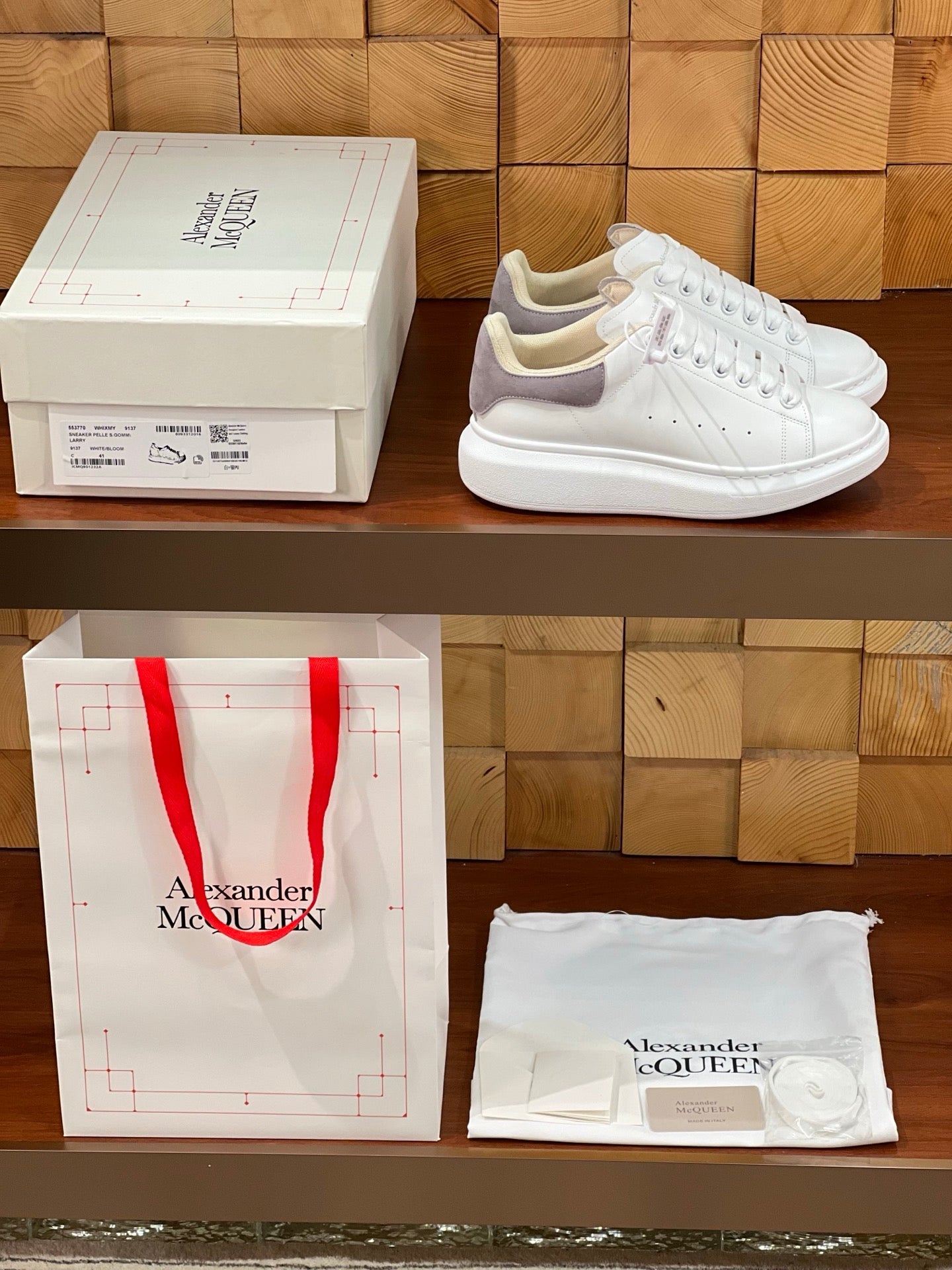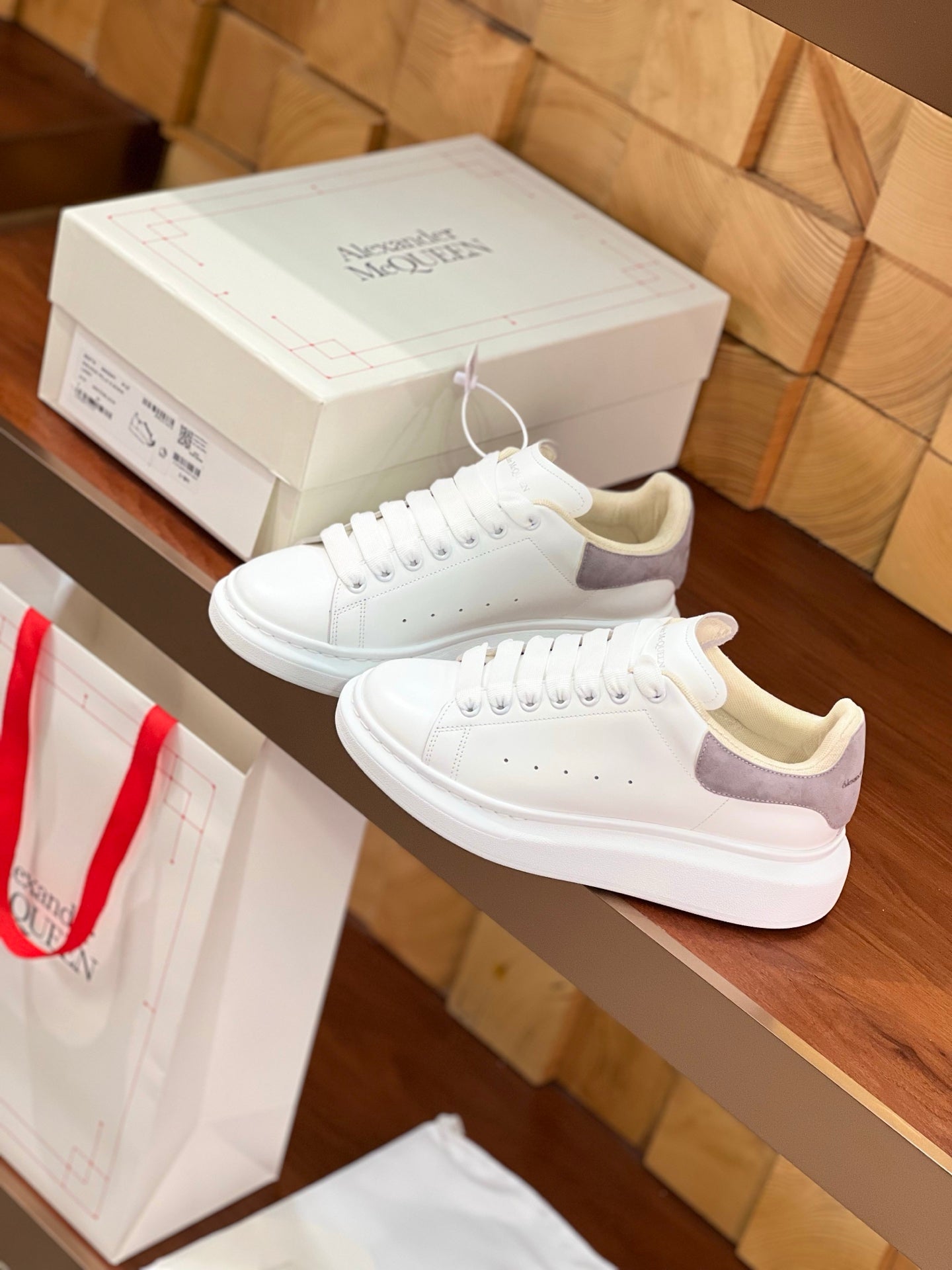 OVERSIZED SNEAKERS IN WHITE CALFSKIN WITH THISTLE PURPLE SUEDE HEEL TAB