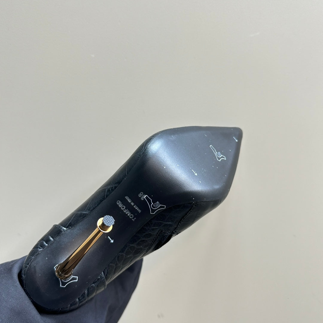 PADLOCK 10 CM ANKLE BOOTS IN BLACK CROCODILE-EMBOSSED CALFSKIN