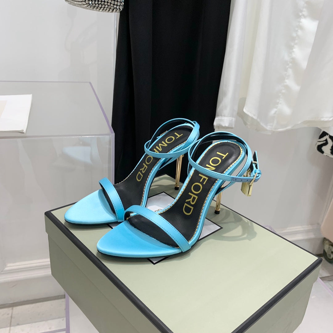 PADLOCK HIGH HEEL 10 CM SANDAL IN AQUA BLUE SHEEPSKIN