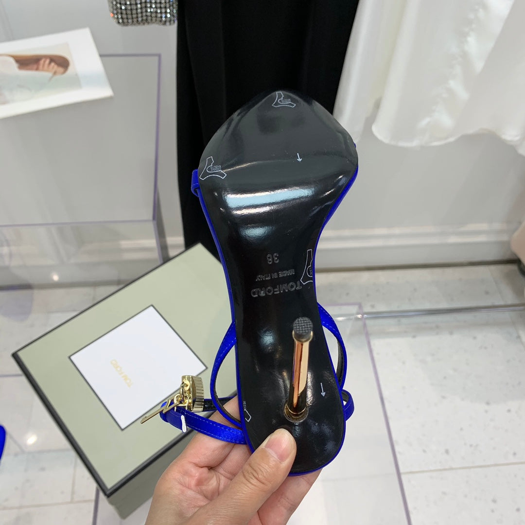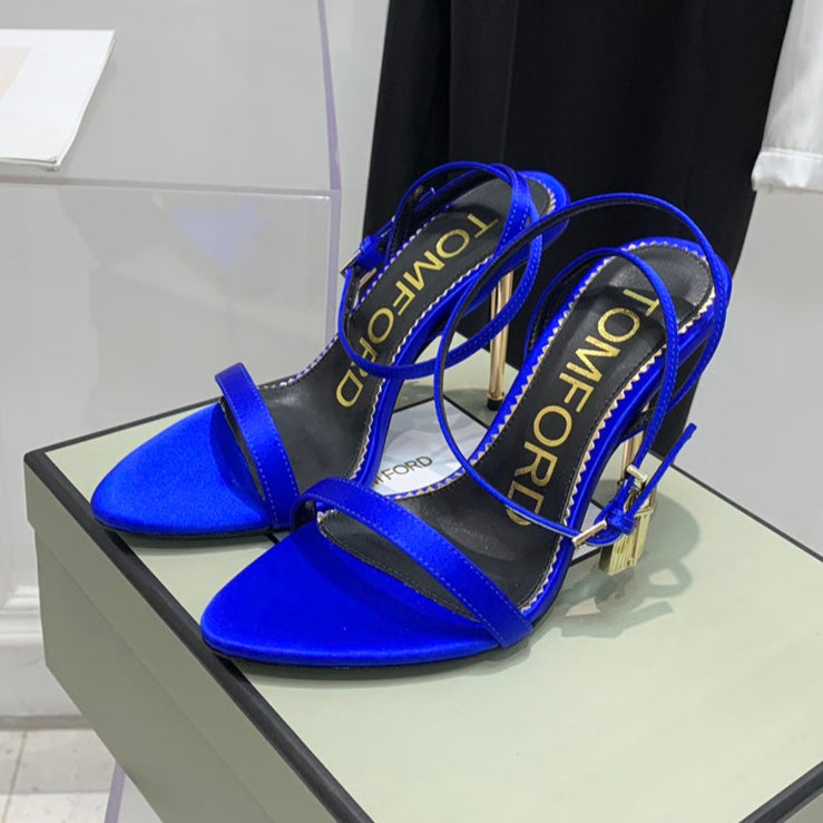 PADLOCK HIGH HEEL 10 CM SANDAL IN COBALT BLUE SHEEPSKIN