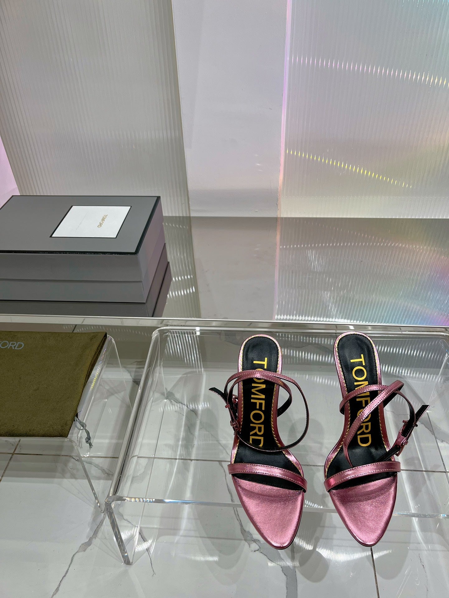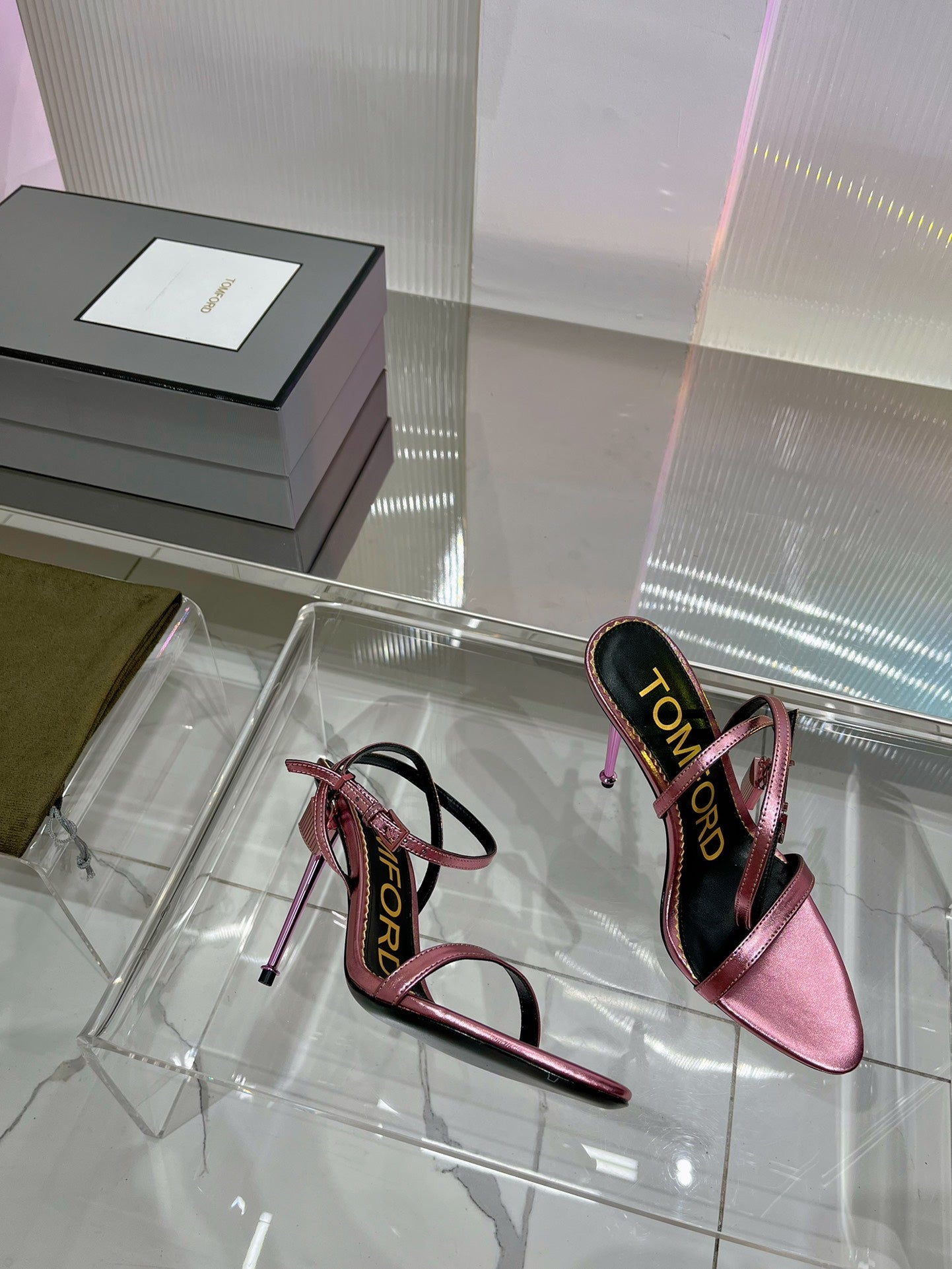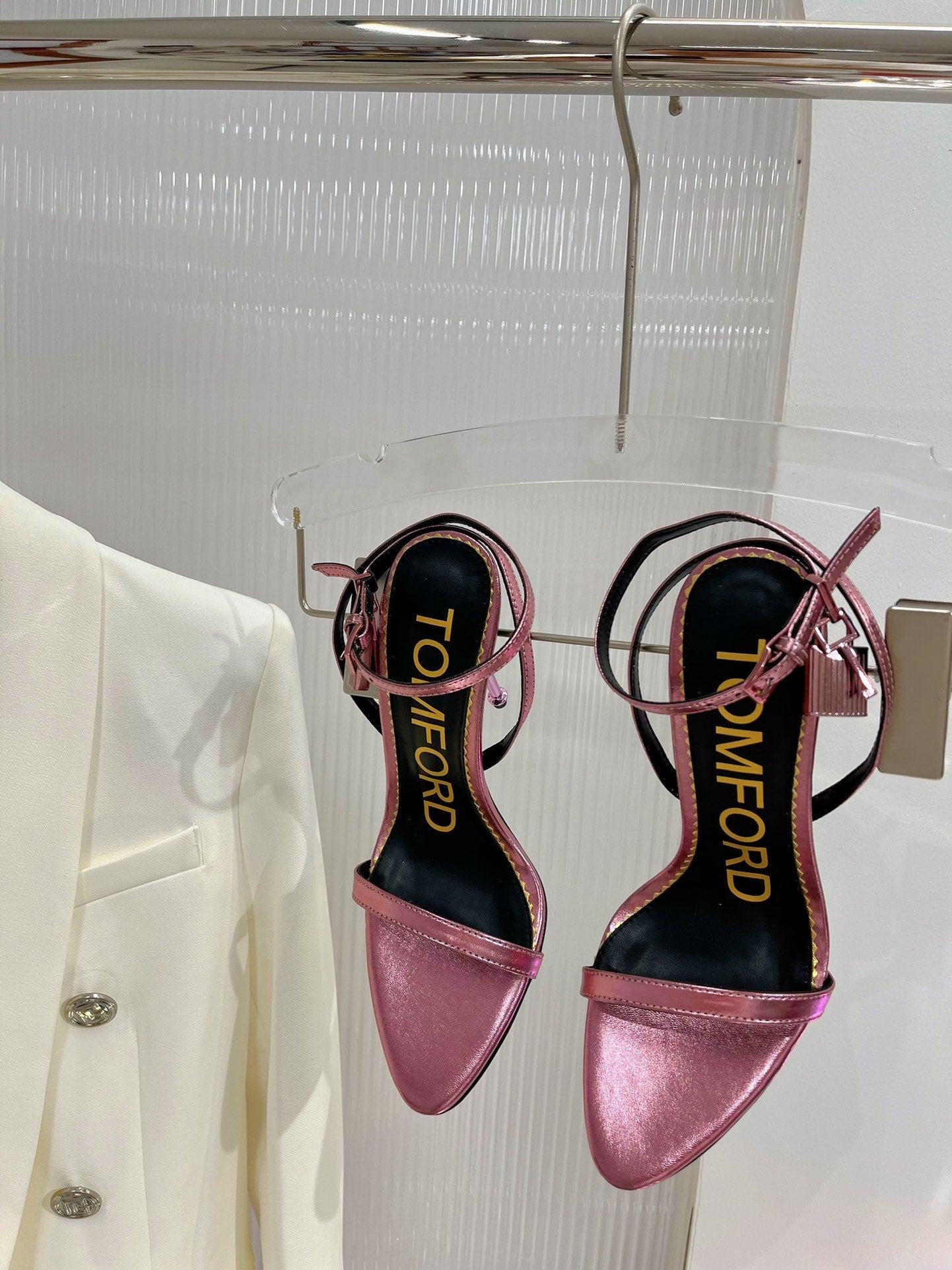 PADLOCK HIGH HEEL 10 CM SANDAL IN CREPE PINK SHEEPSKIN