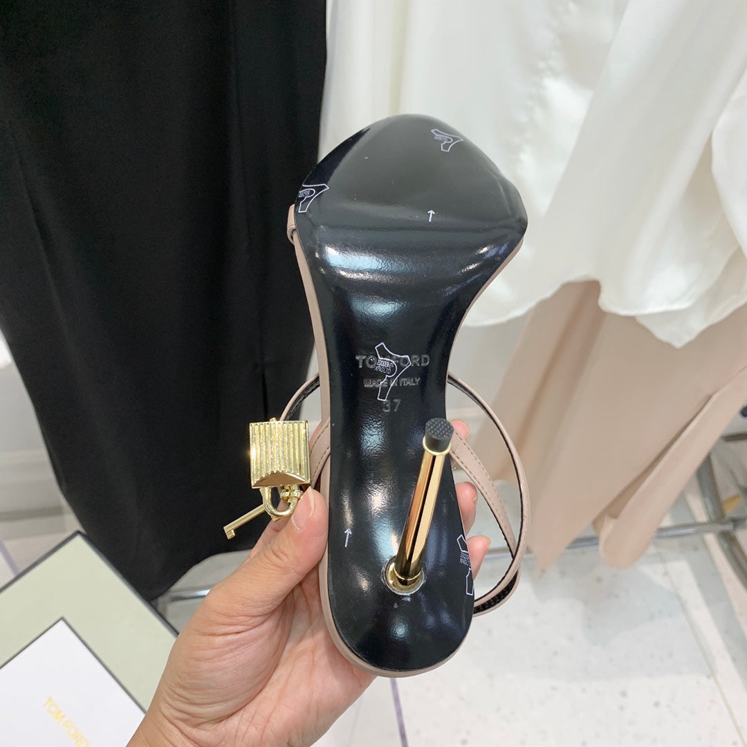 PADLOCK HIGH HEEL 10 CM SANDAL IN DUSTY PINK SHEEPSKIN