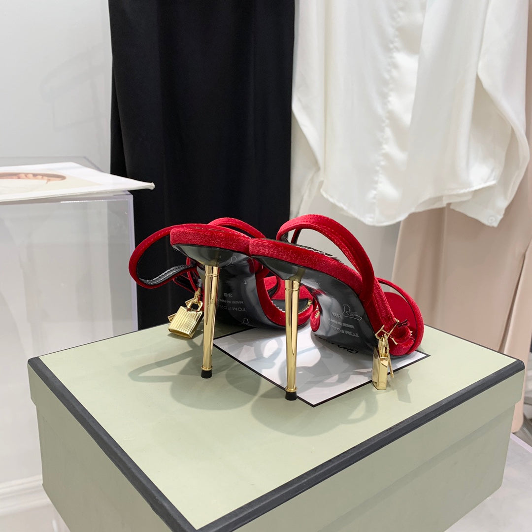 PADLOCK HIGH HEEL 10 CM SANDAL IN RUBY RED VELVET