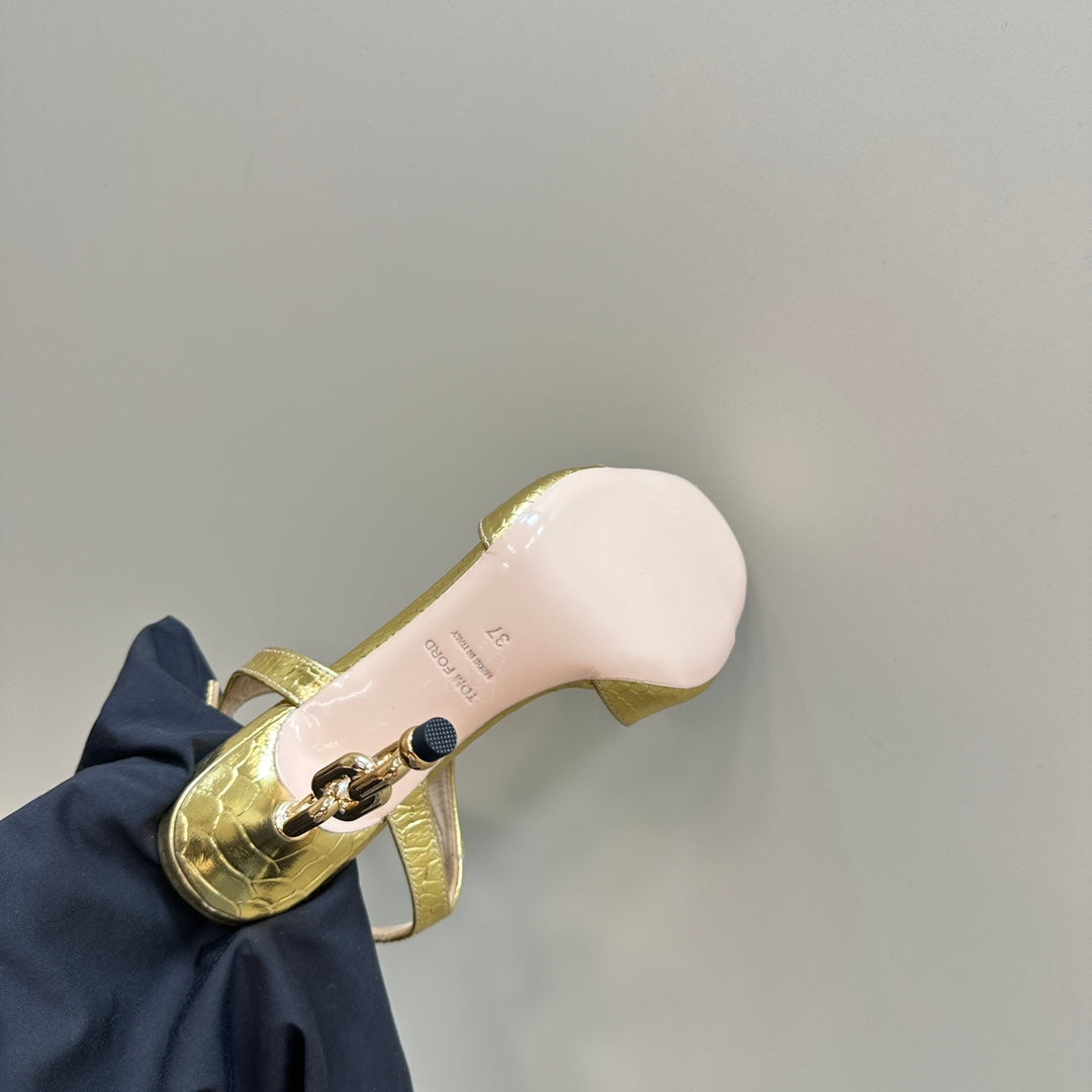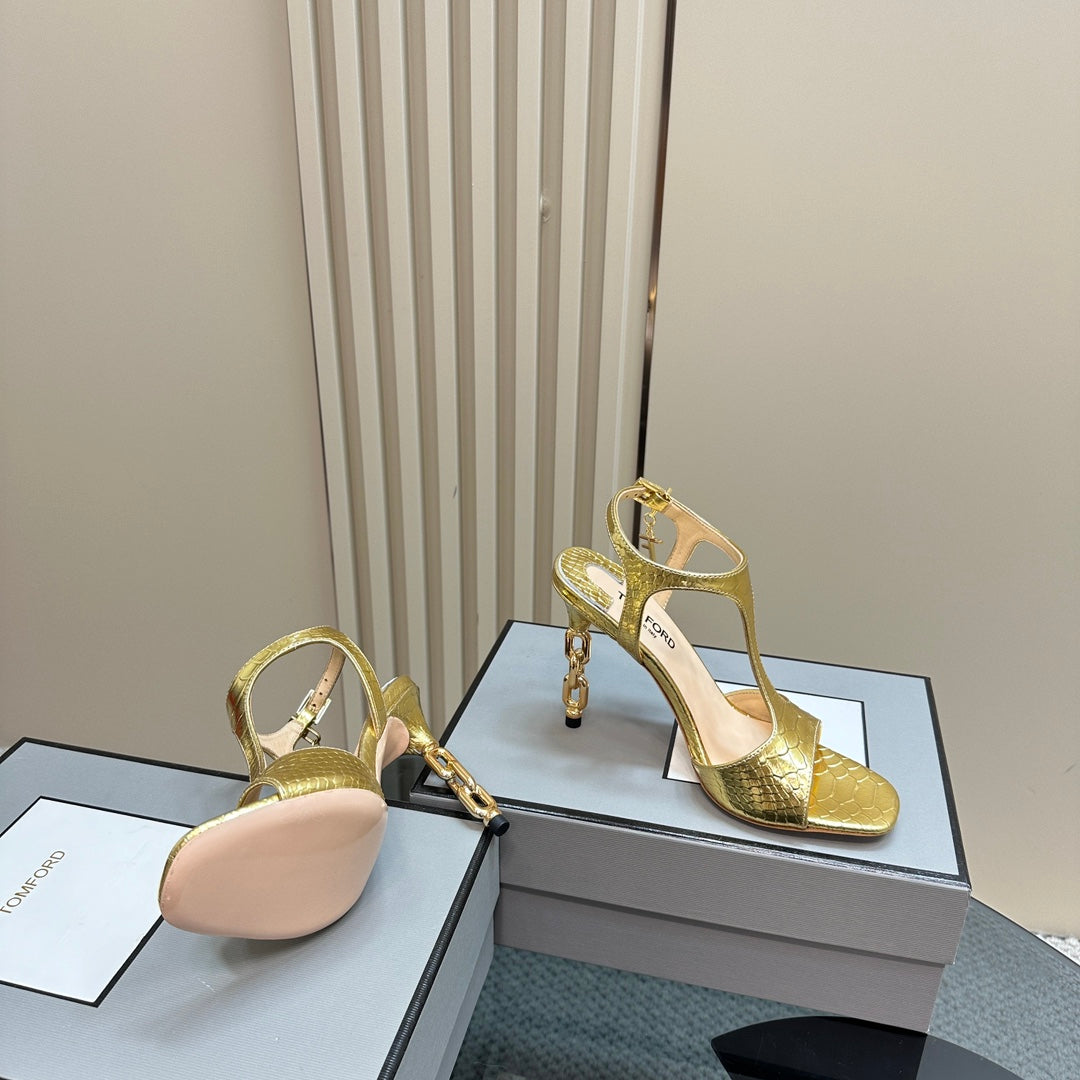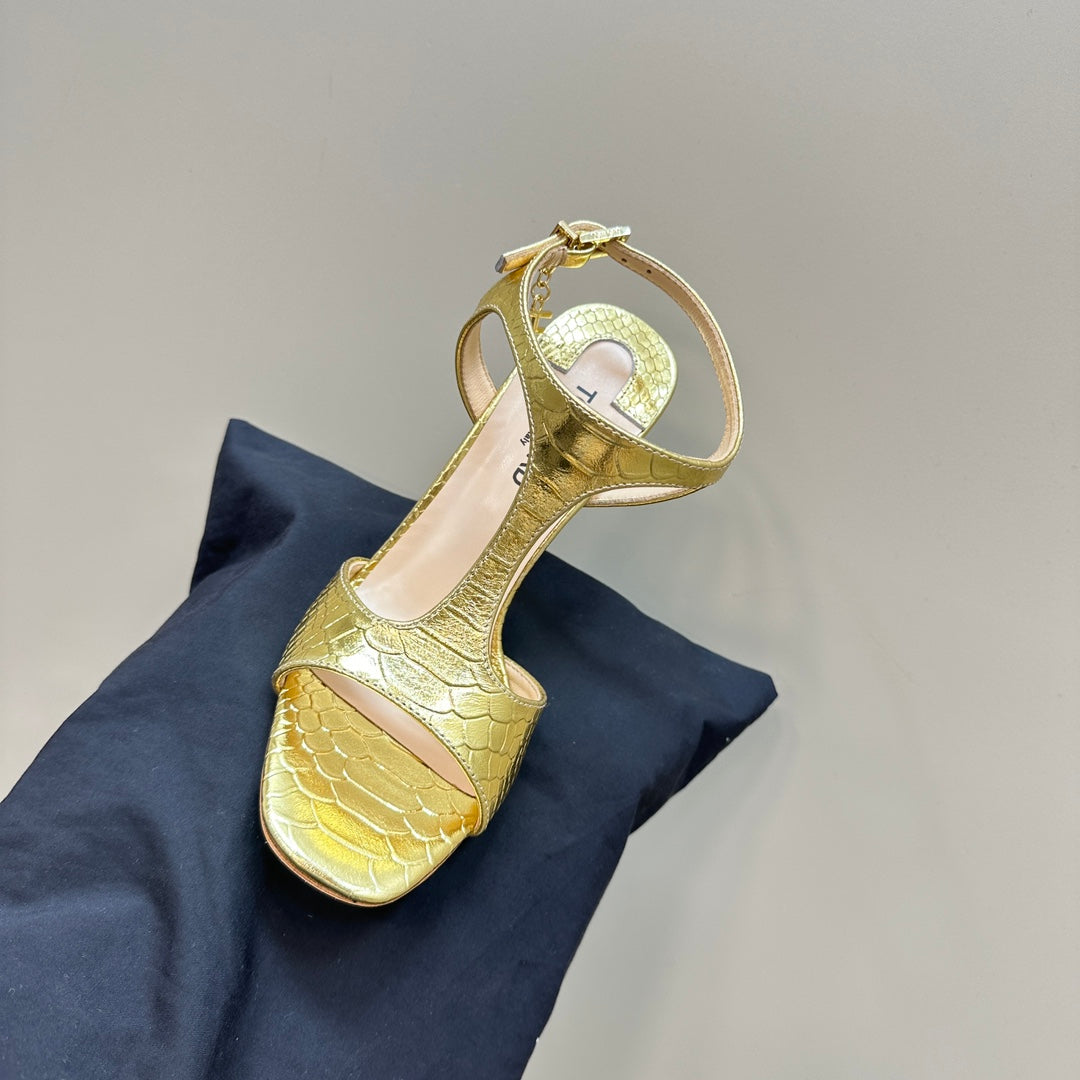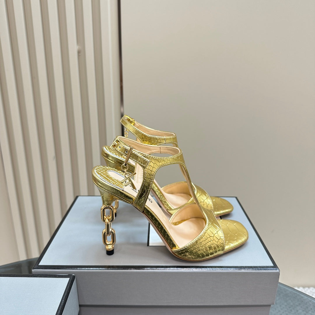 PADLOCK HIGH-HEELED SANDAL 10 CM IN LIGHT GOLD SNAKESKIN
