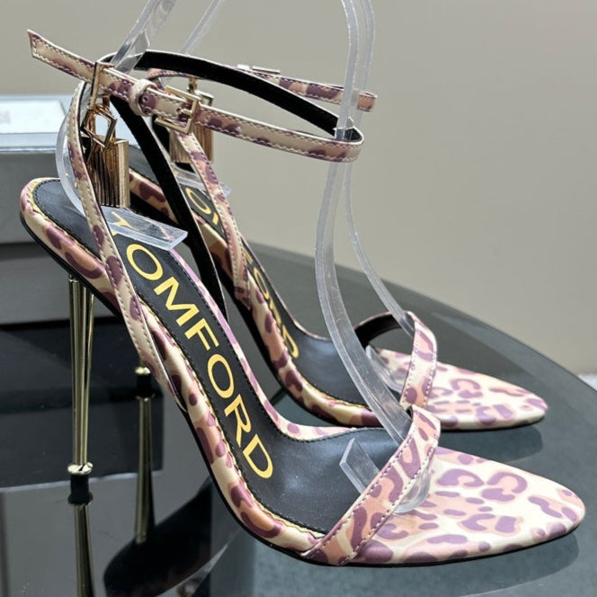 PADLOCK POINTY SANDAL 10 CM IN COLORFUL CALFSKIN