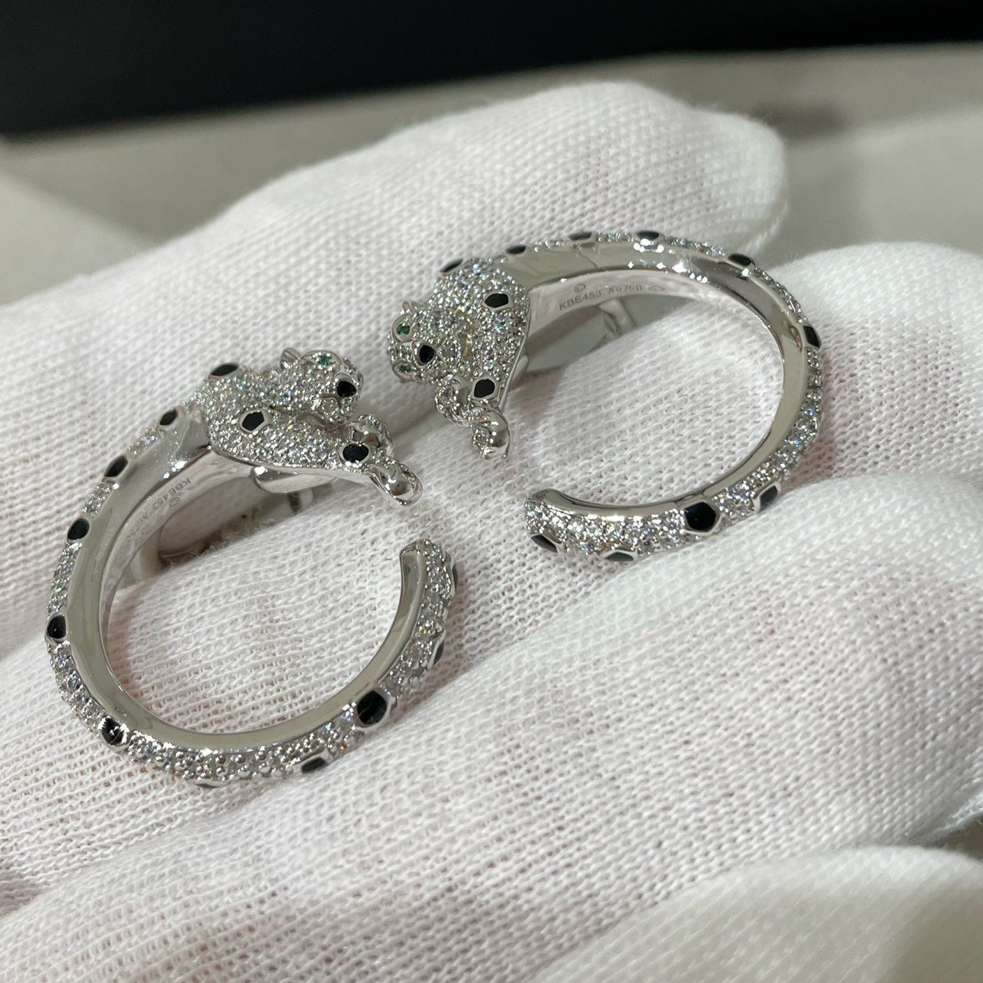 PANTHERE DIAMOND ONYX GREEN EMERAL SILVER EARRINGS