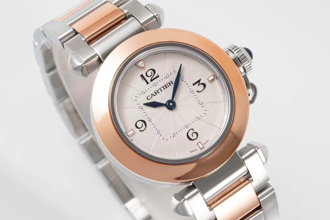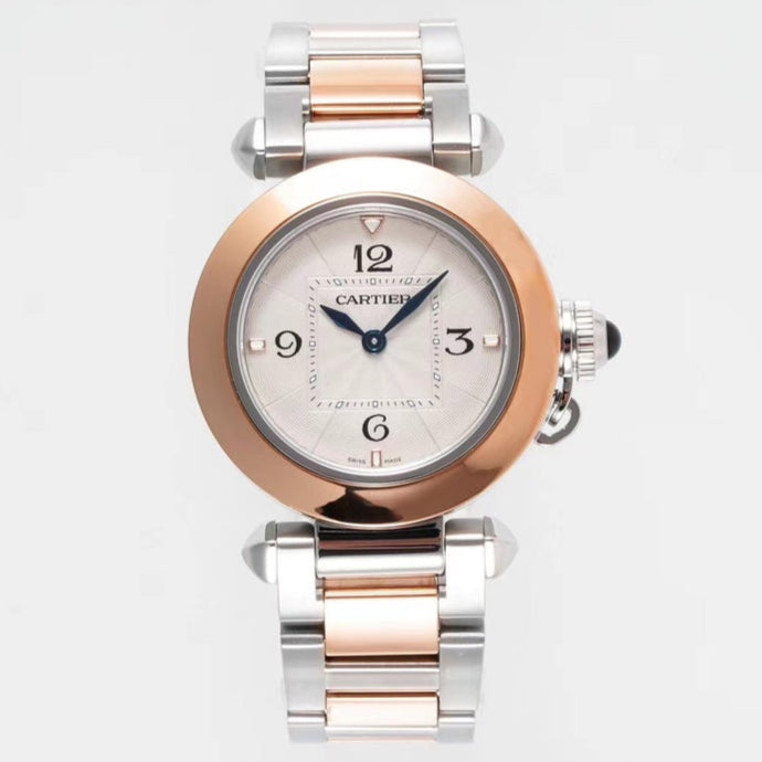 PASHA DE CARTIER WATCH ROSE GOLD AND SILVER CASE 30 MM
