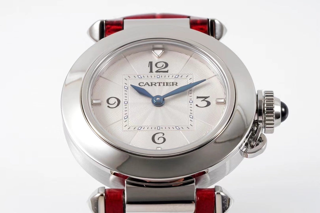 PASHA DE CARTIER WATCH SILVER CASE WITH CRIMSON RED LEATHER STRAP