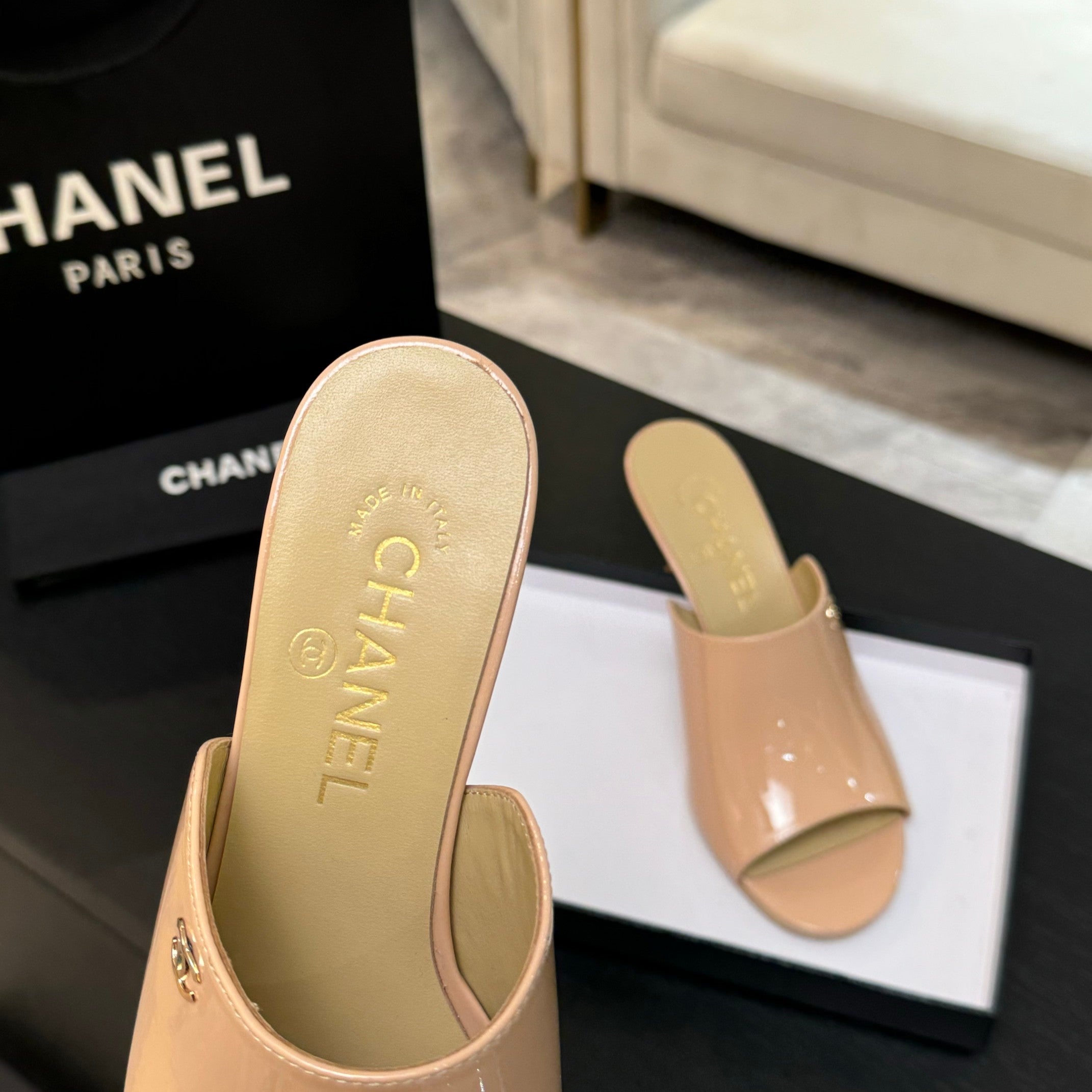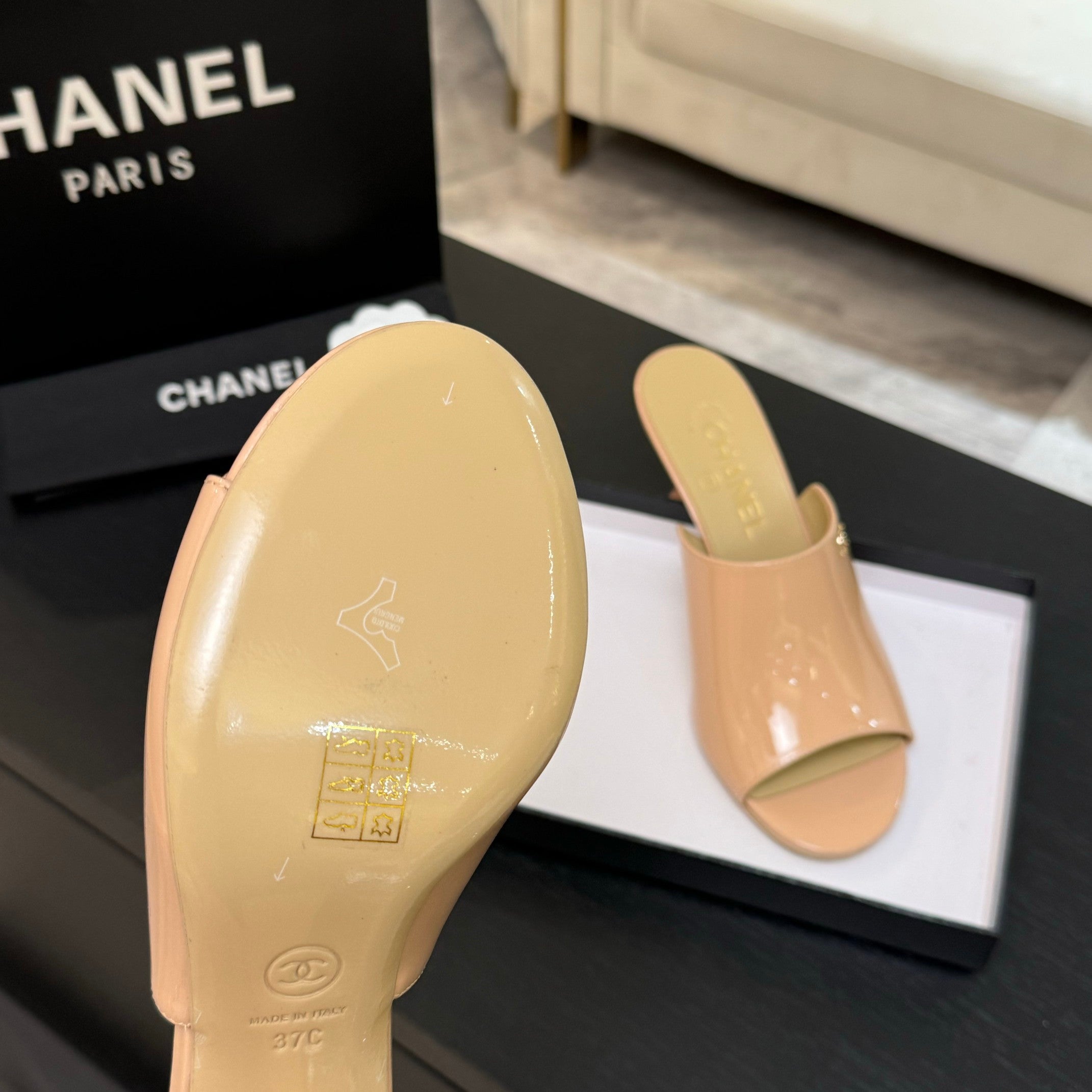 PEEP TOE MULE 85MM IN APRICOT ORANGE PATENT CALFSKIN