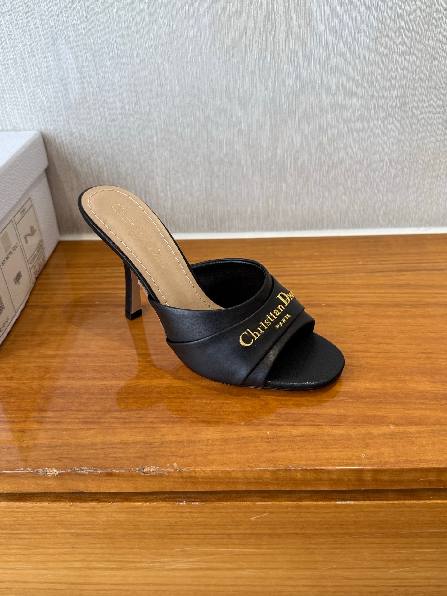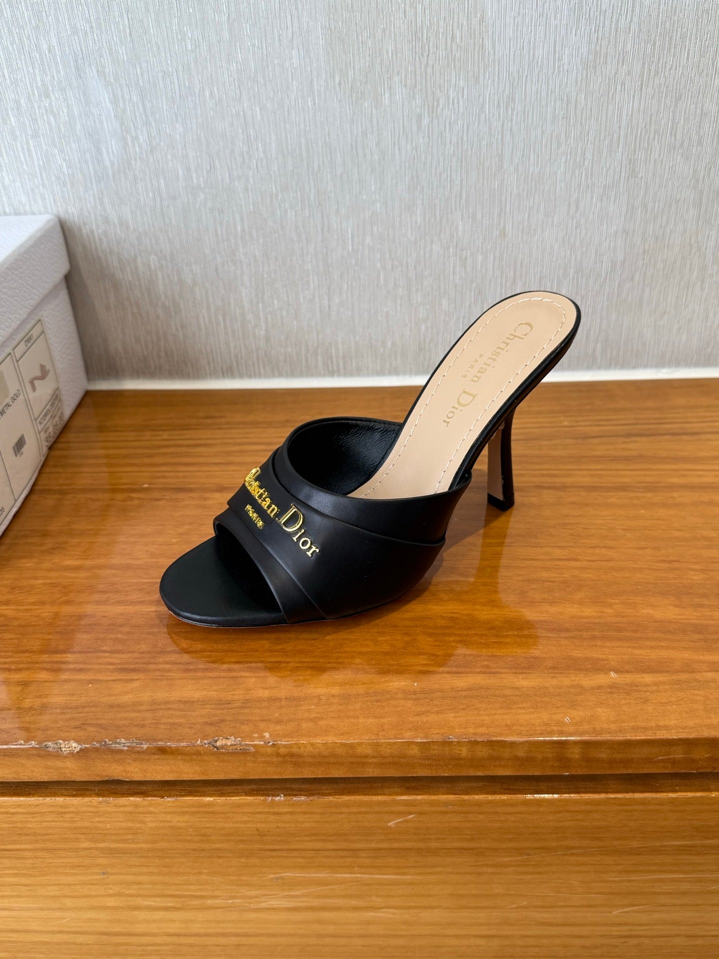 PEEP TOE SANDAL 25S HEELS 10CM IN BLACK CALFSKIN