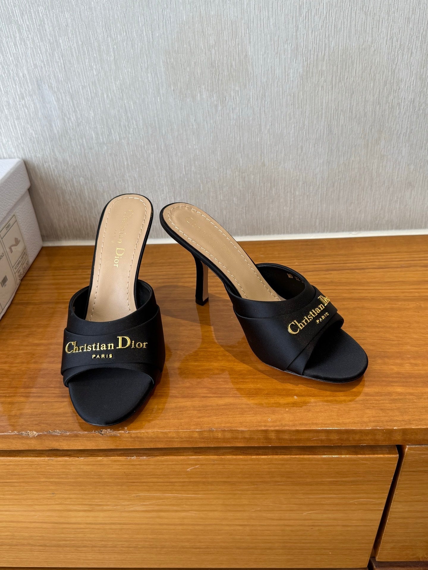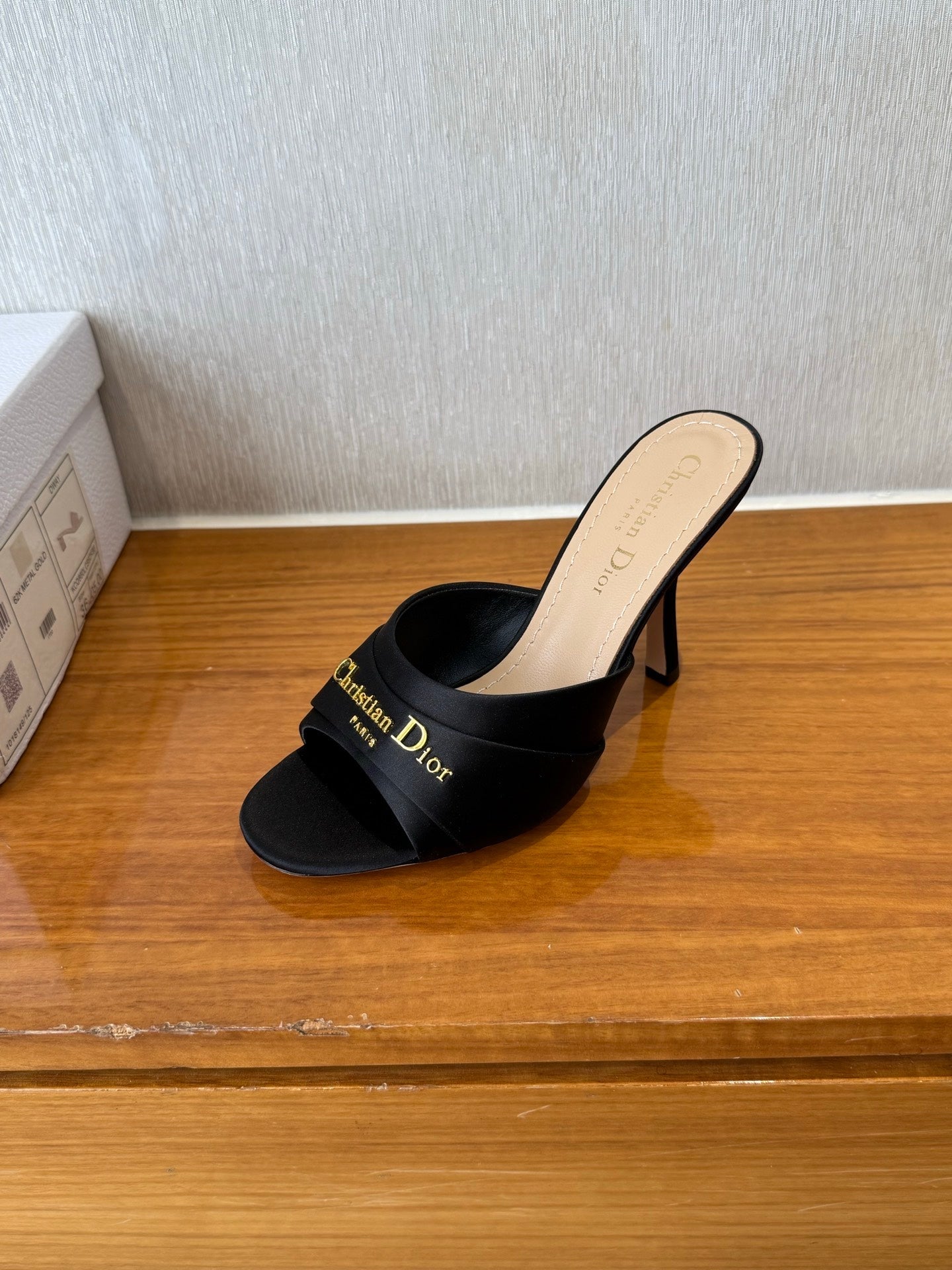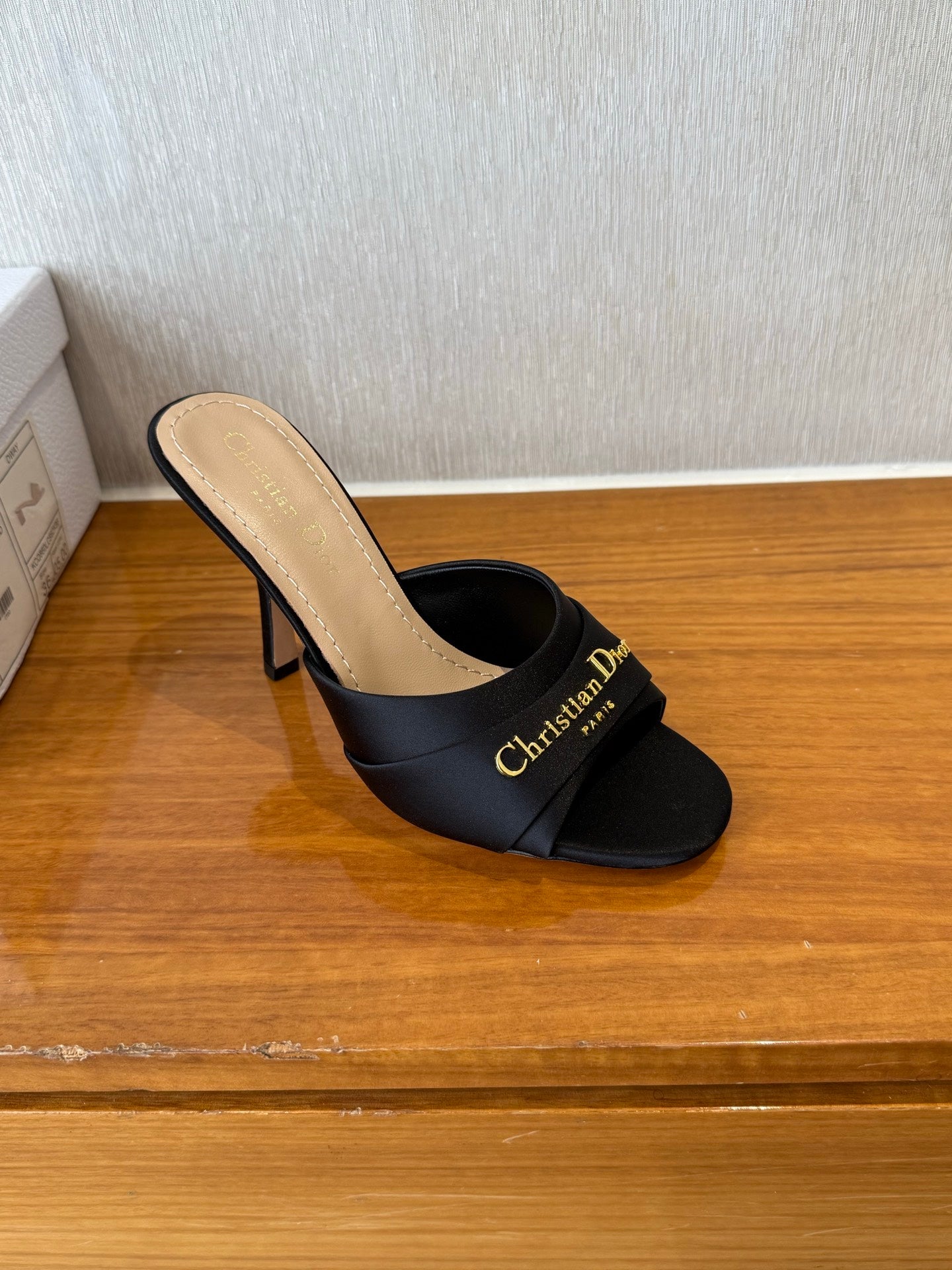 PEEP TOE SANDAL 25S HEELS 10CM IN BLACK SATIN