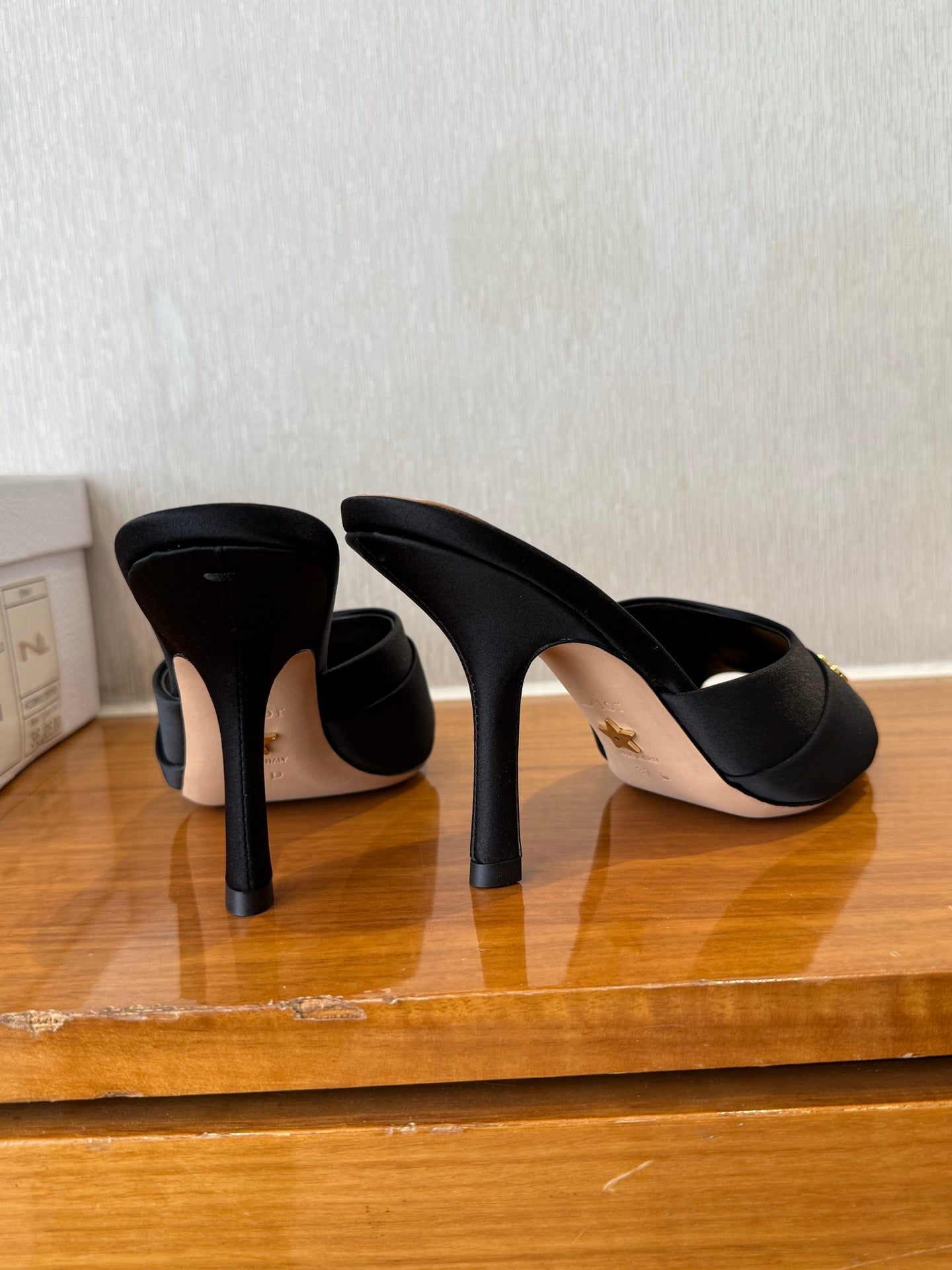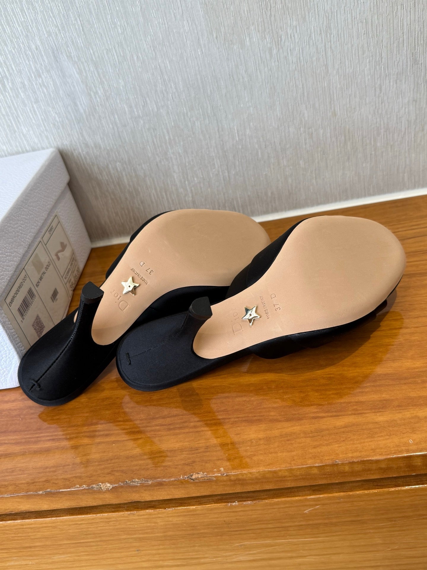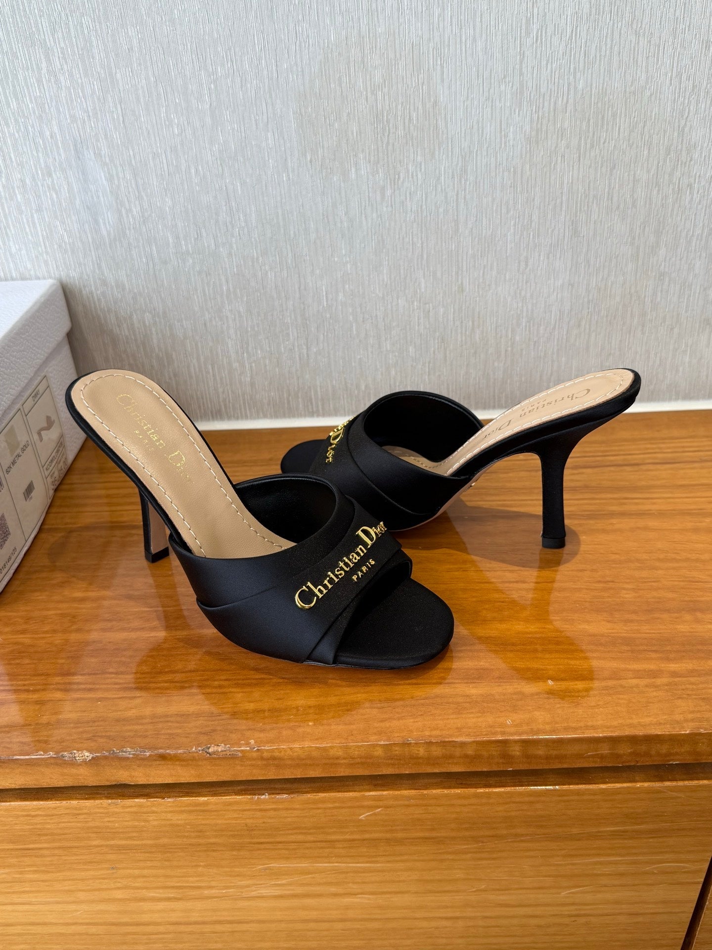 PEEP TOE SANDAL 25S HEELS 10CM IN BLACK SATIN