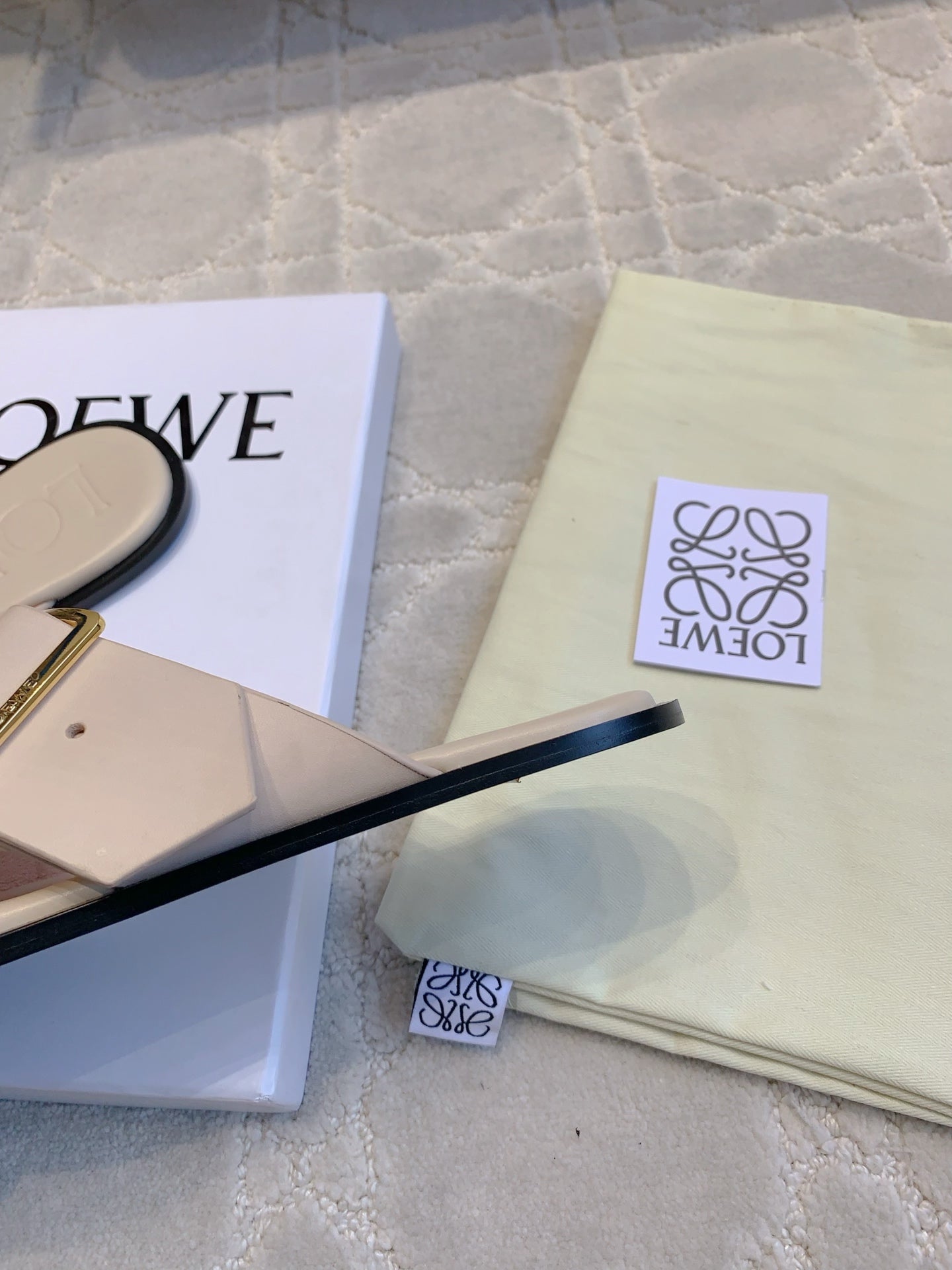 PETAL BELT FLAT SANDAL IN BEIGE CREAM CALFSKIN