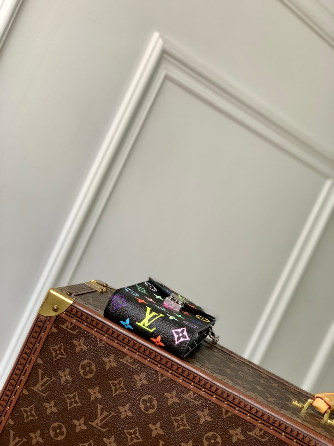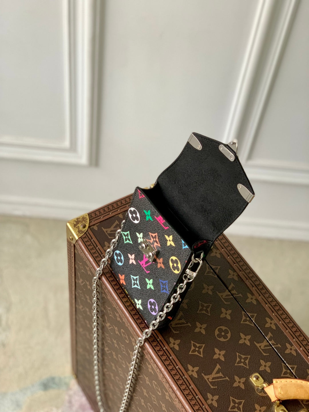 PHONE POUCH 17.5 IN BLACK MULTICOLORED MONOGRAM COATED CANVAS