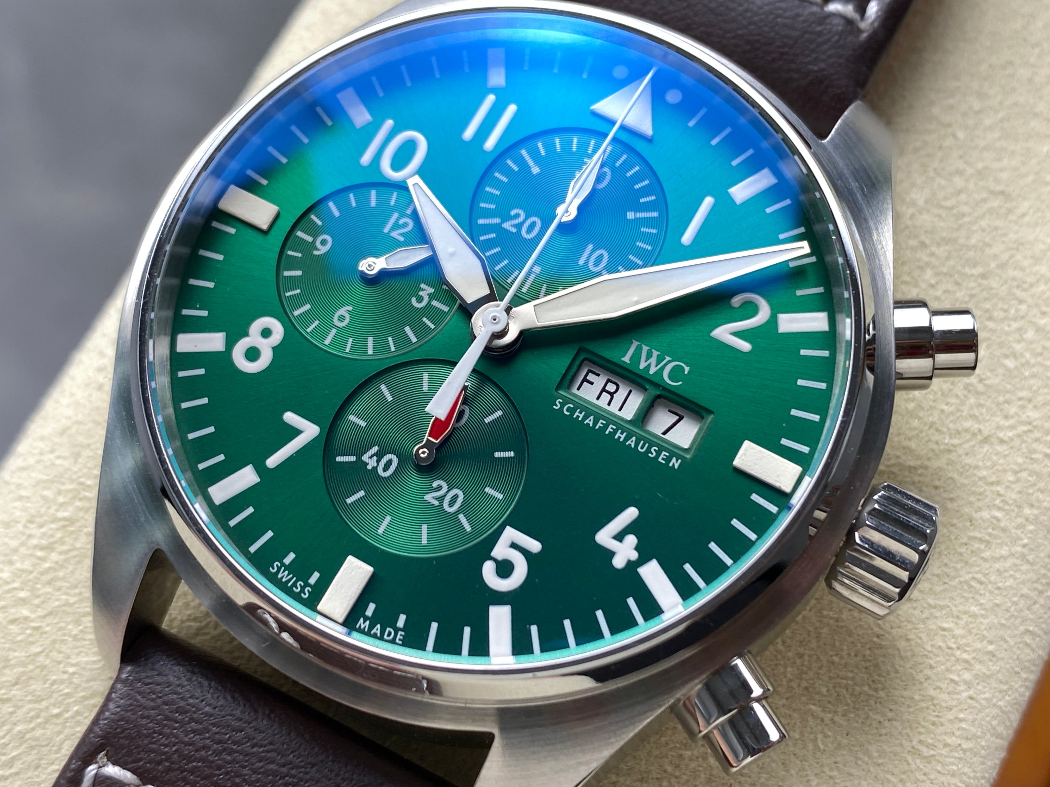 PILOT'S WATCH MARK XX STAINLESS STEEL CASE WITH BROWN LEATHER TRAP AND EMERALD GREEN DIAL