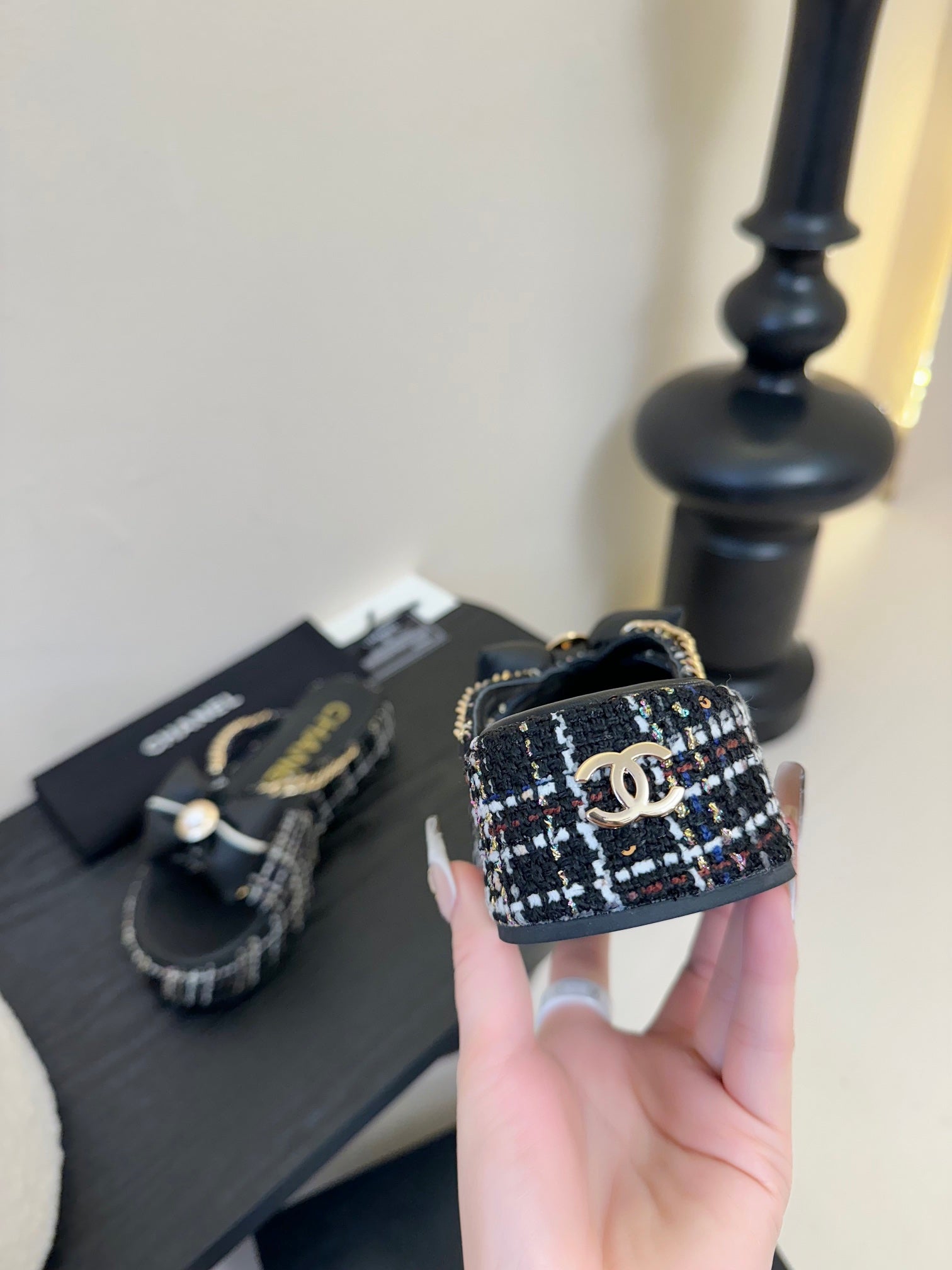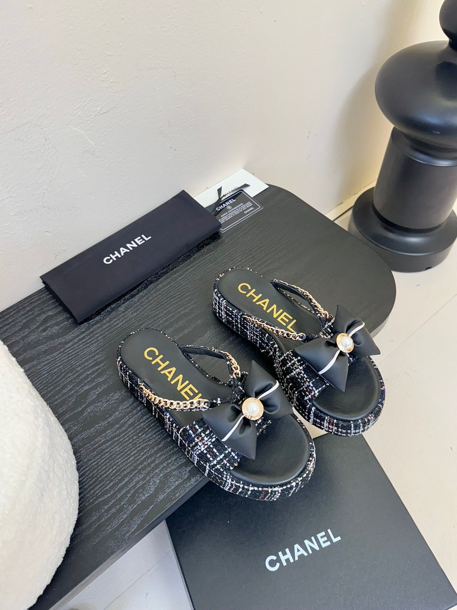 PLATFORM FLIP-FLOPS IN BLACK TWEED FABRIC